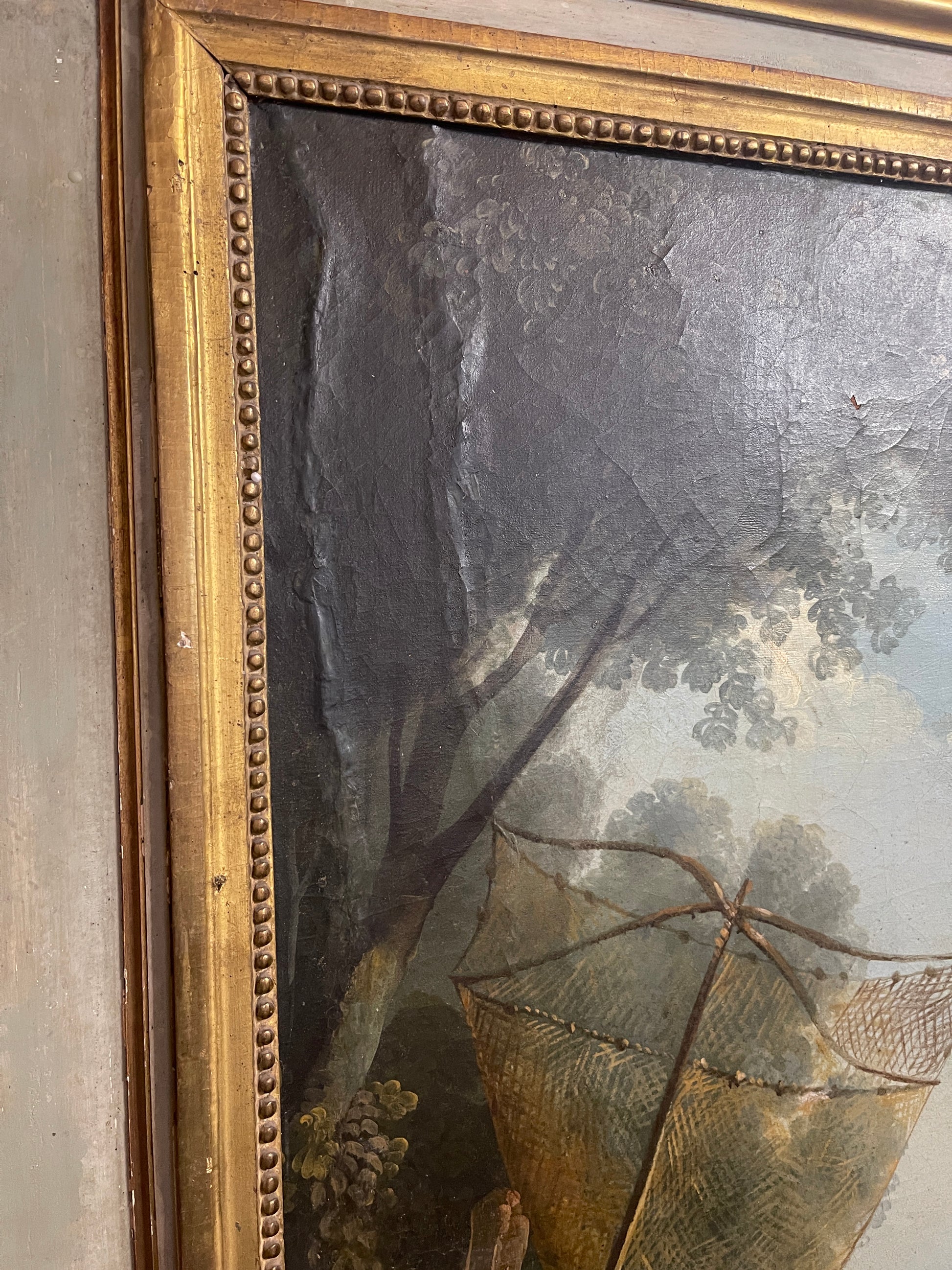 19th Century French Trumeau Mirror with Pastoral Oil Painting – Louis XVI Style Giltwood Frame