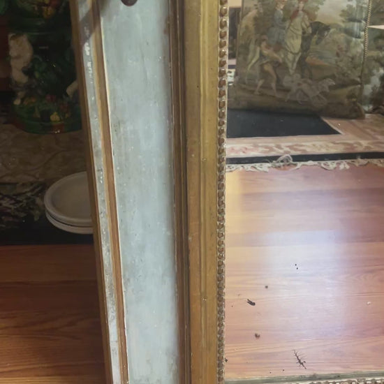 19th century French trumeau mirror, Louis XVI trumeau, antique giltwood mirror, French pastoral painting, rococo revival décor, giltwood wall mirror, antique French mirror with painting, French chateau décor, grandmillennial home décor, under the copper roof antiques