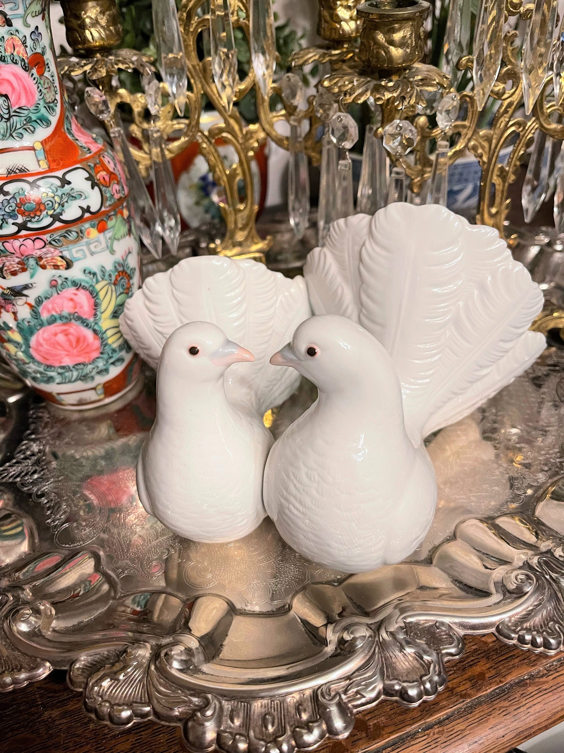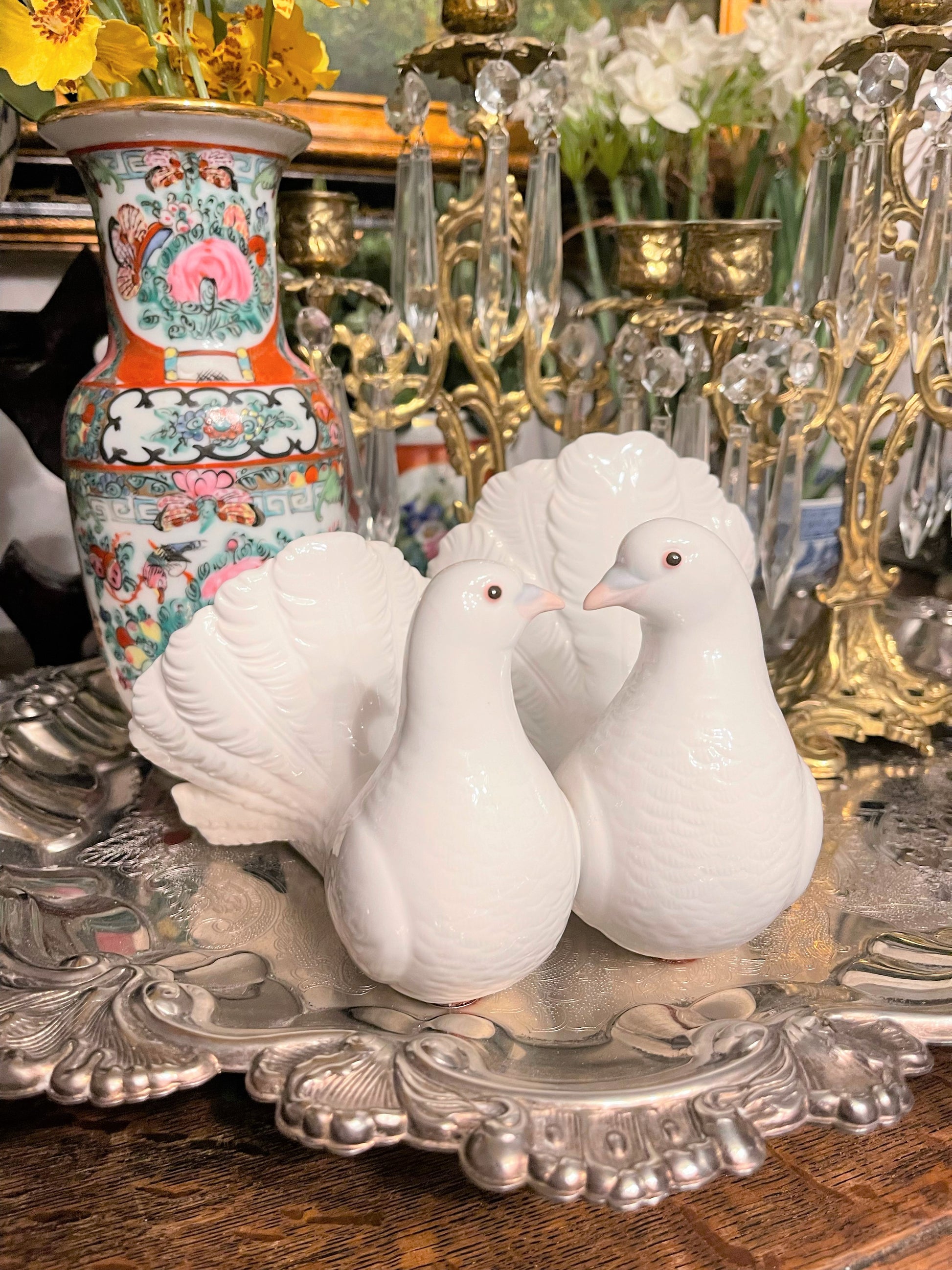 Lovely Lladro Coupling Doves. Could they be a sweeter pair? They're the perfect engagement, wedding or anniversary gift. Beautifully detailed and exquisitely crafted just as you would expect from Lladro... Truly an heirloom piece. Made in Spain. Marked as shown.
