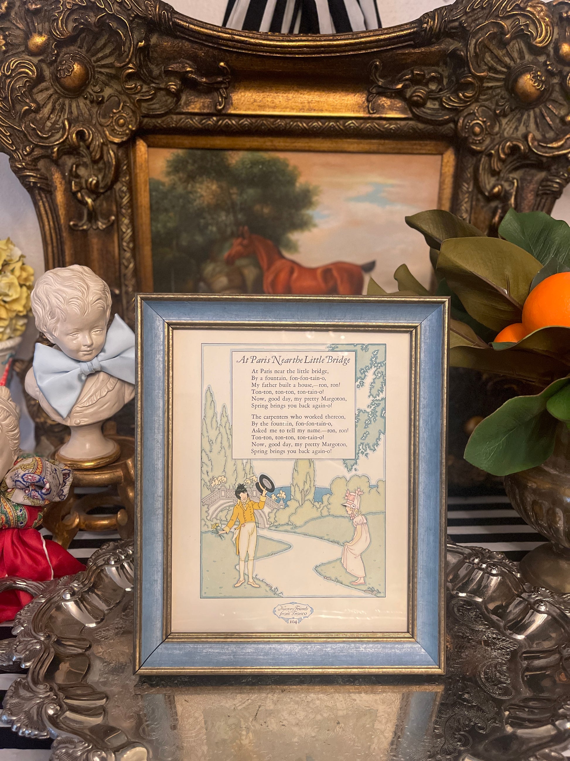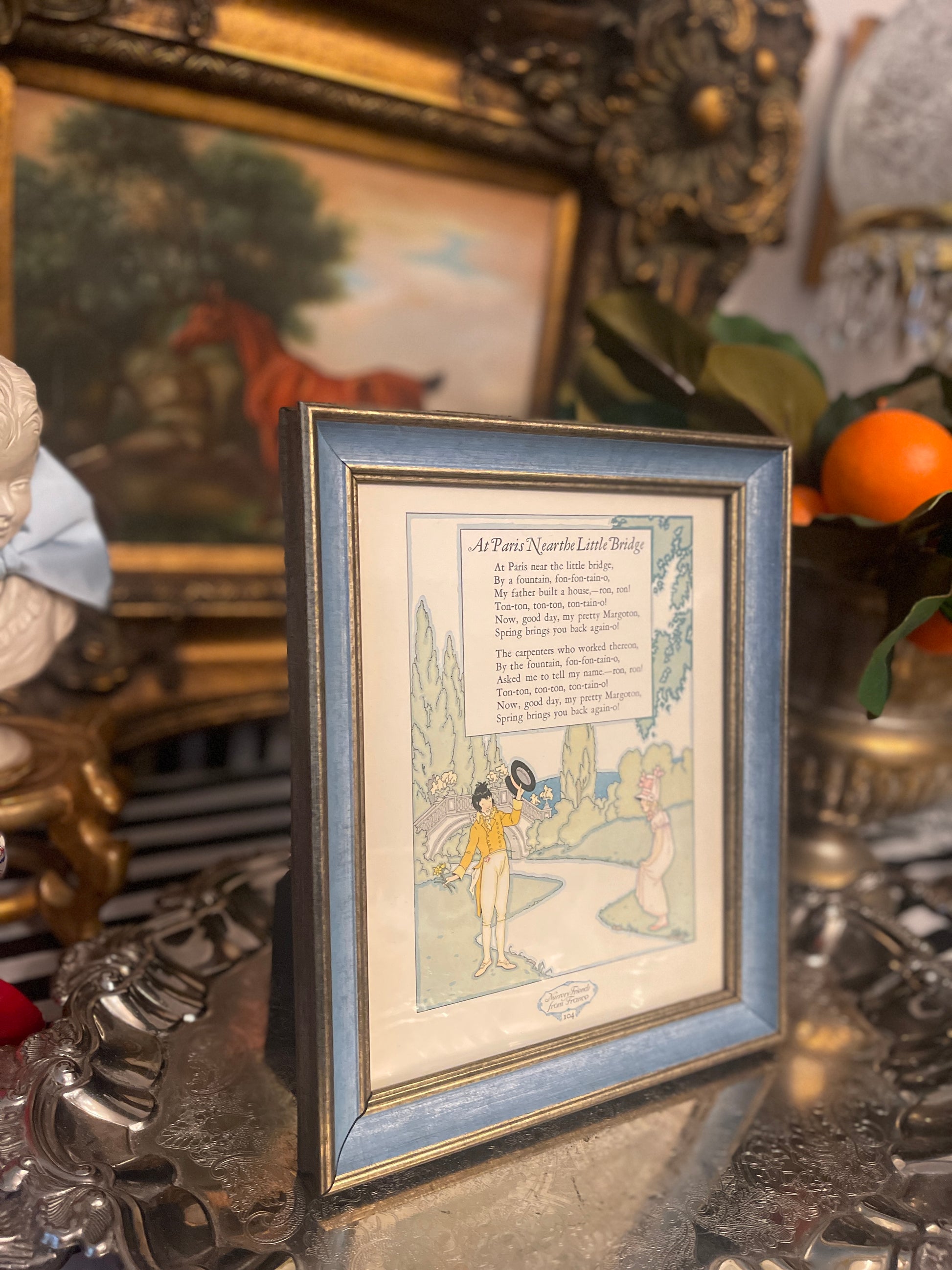 At Paris Near the Little Bridge, Nursery Rhymes from France, Framed Bookplate