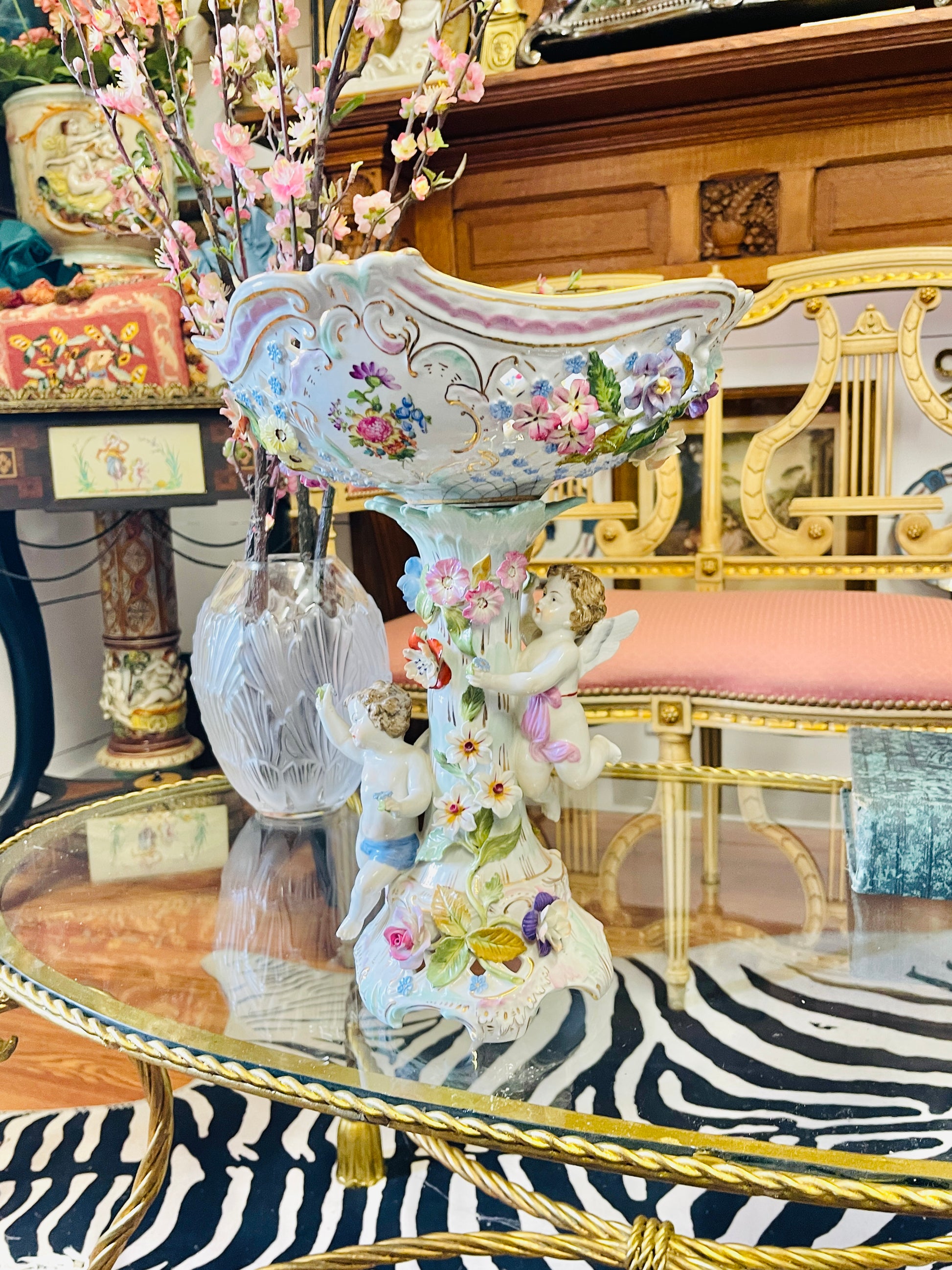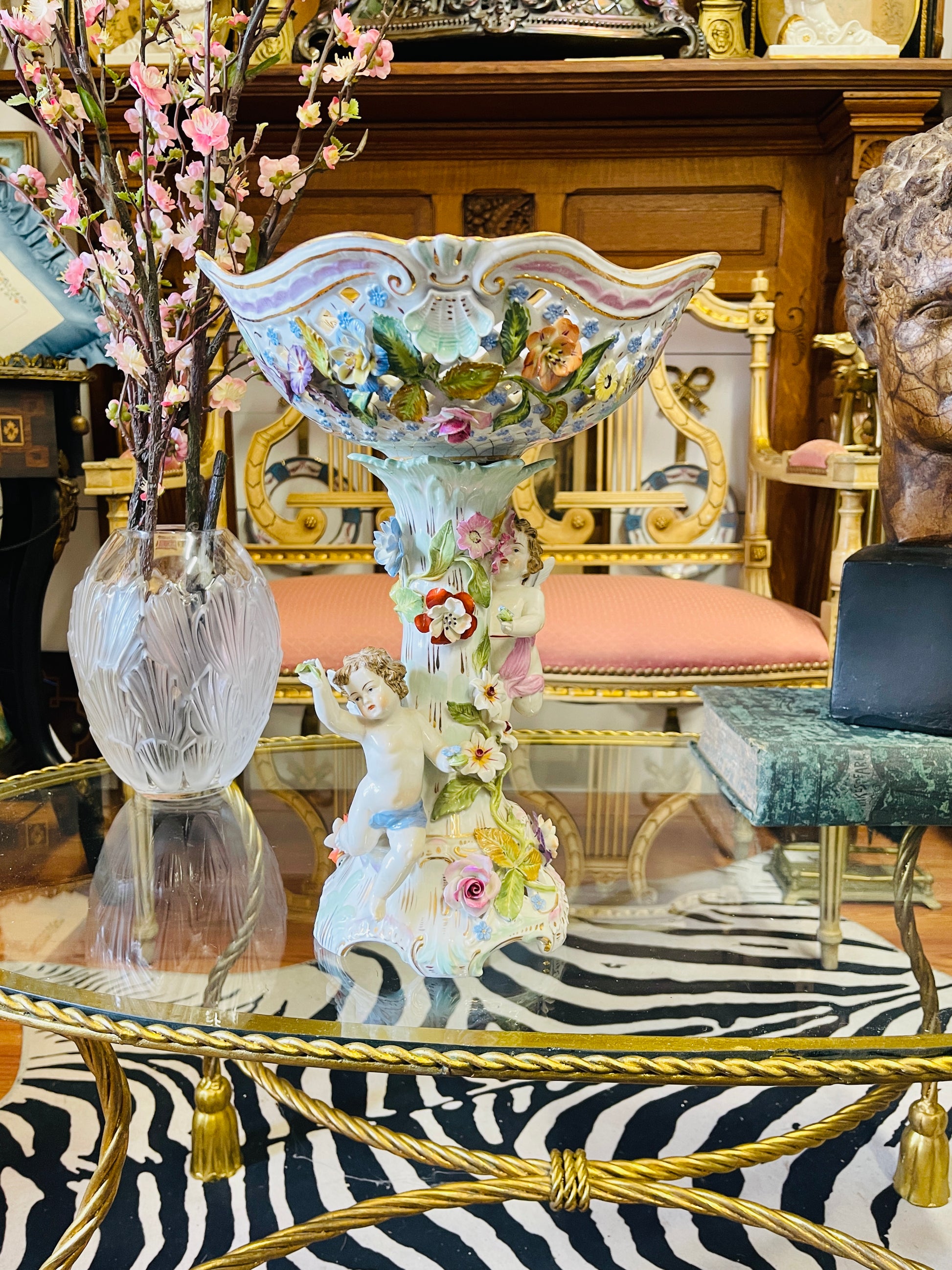 An extraordinary museum-quality statement piece for a grandmillennial interior, layered maximalist vignette, or heirloom-worthy centerpiece.It’s dramatic, romantic, and unapologetically opulent.