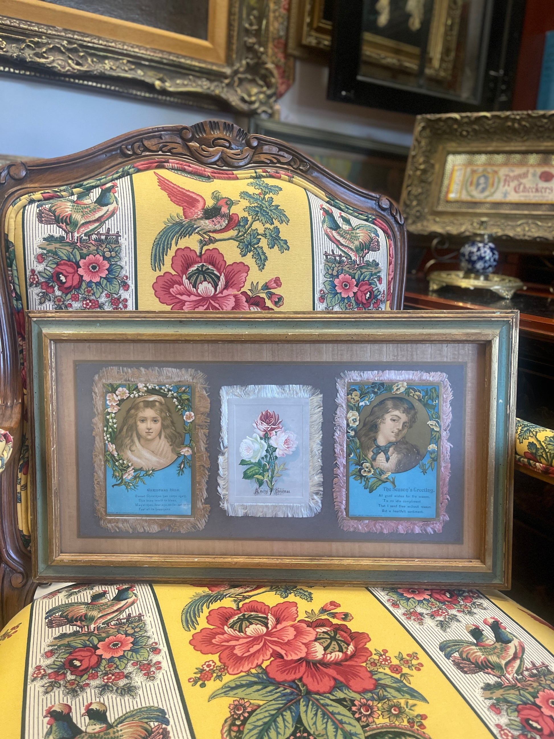 Antique Framed Trio of Victorian Christmas Postcards