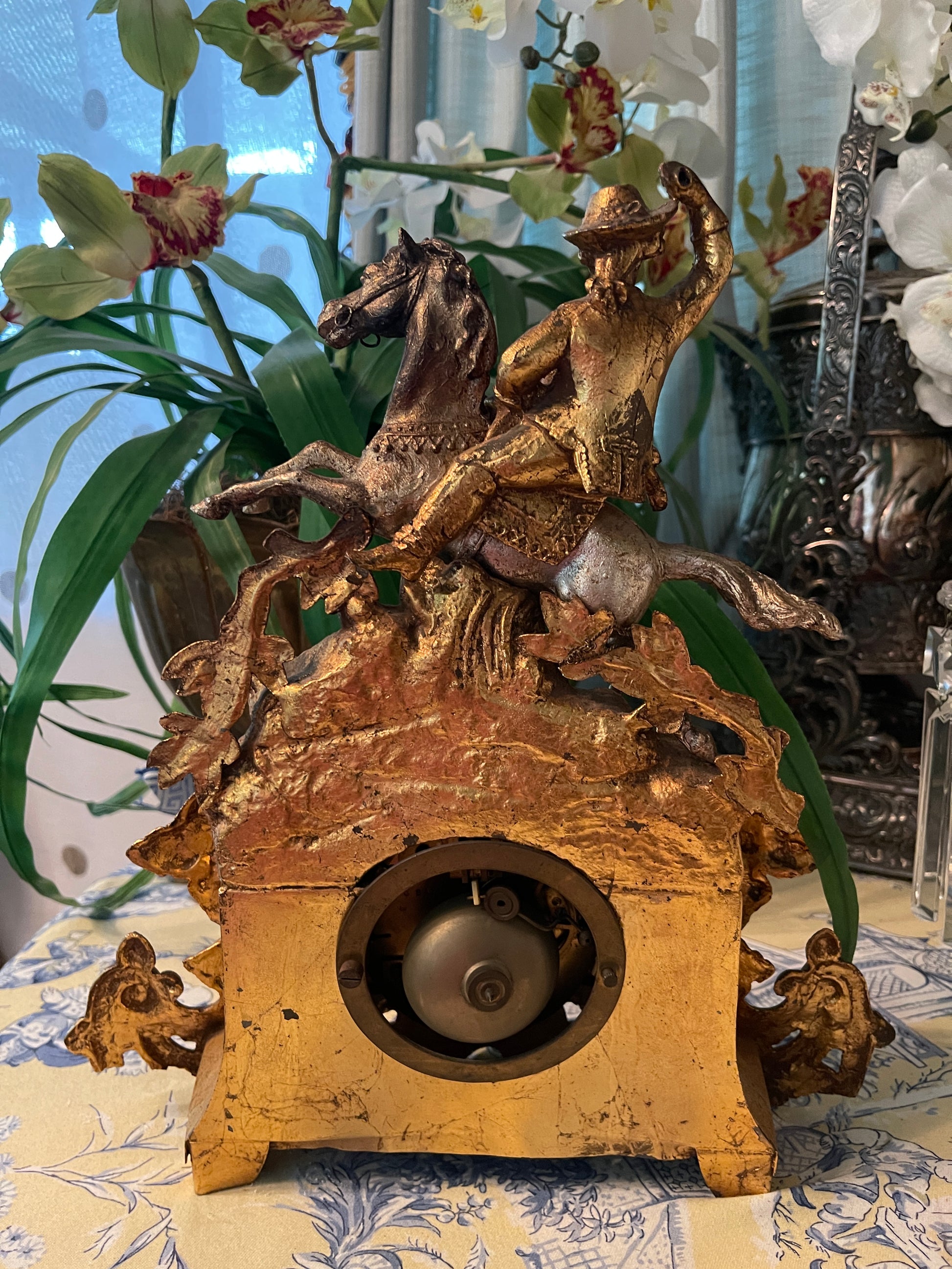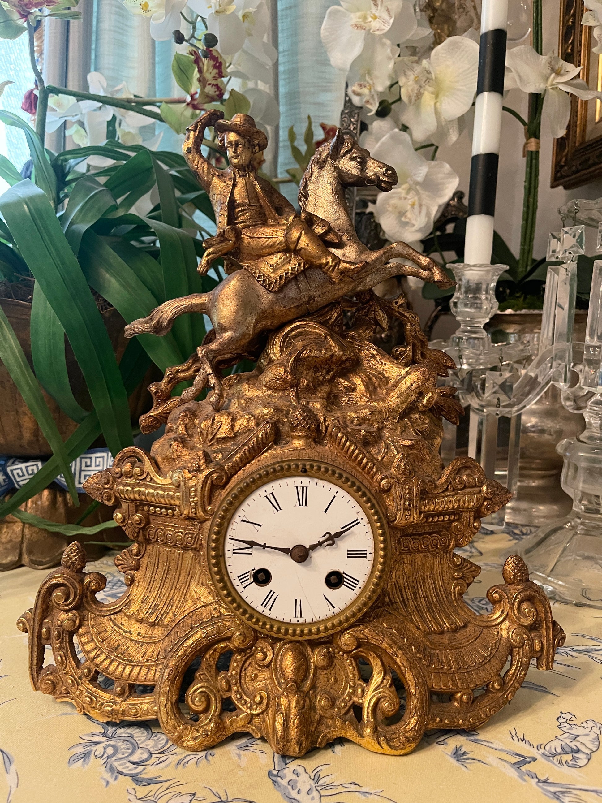 Antique French Gilt Bronze Equestrian Mantel Clock – 19th Century Cavalier on Horseback, SOLD AS A DECORATIVE ANTIQUE