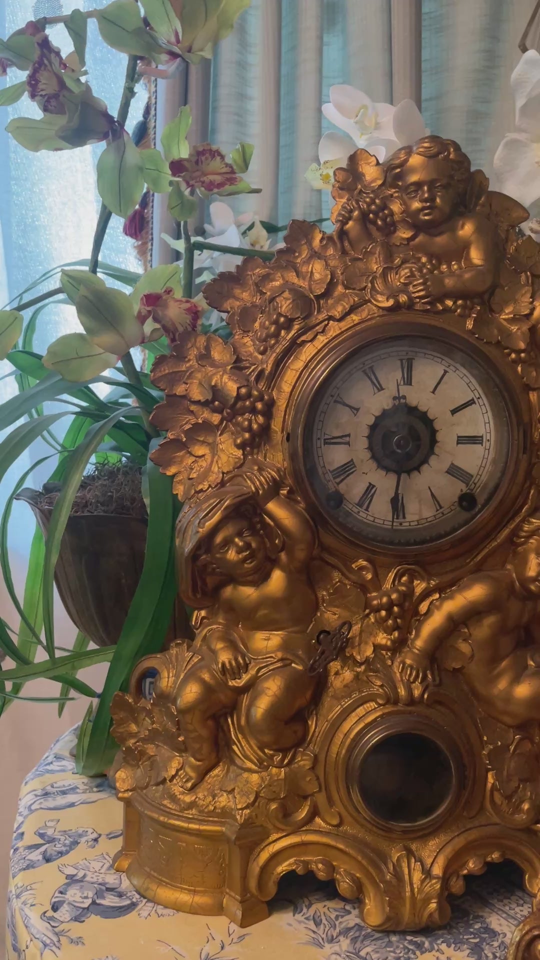 Wonderfully aged with a mellowed gilt finish that reflects centuries of admiration. Minor surface wear and age-appropriate patina throughout, with an intact dial and richly cast detailing. Some wear to the surface adds depth and character—true to the romantic soul of a piece that has seen history unfold.