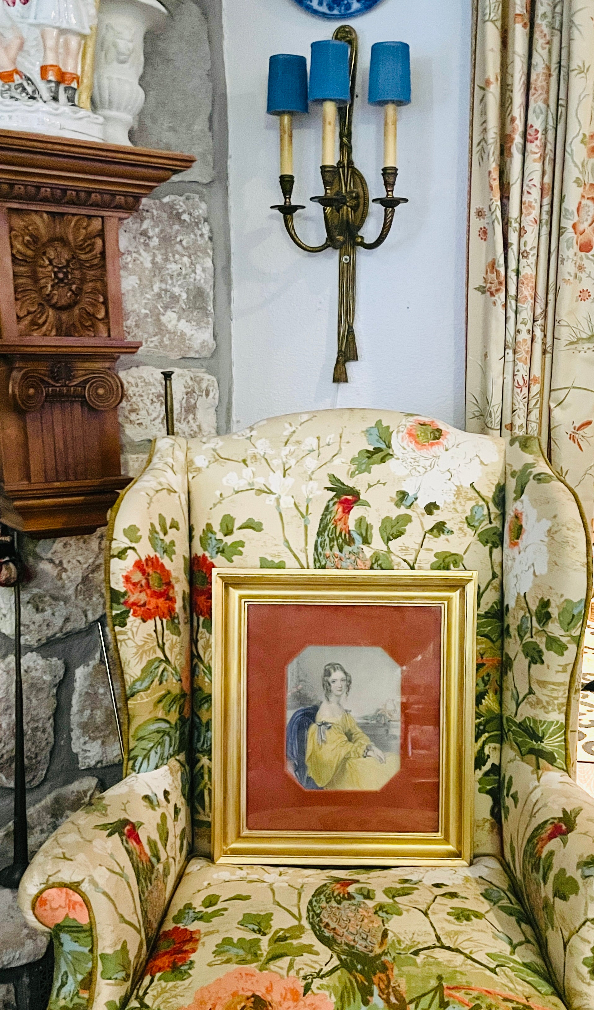Set in giltwood frame and rich Persimmon velvet mat, this portrait glows with history and patina. It’s a striking choice for a gallery wall, dressing room, or sitting room — a conversation piece that pairs beautifully with chinoiserie, French antiques, and grandmillennial décor.