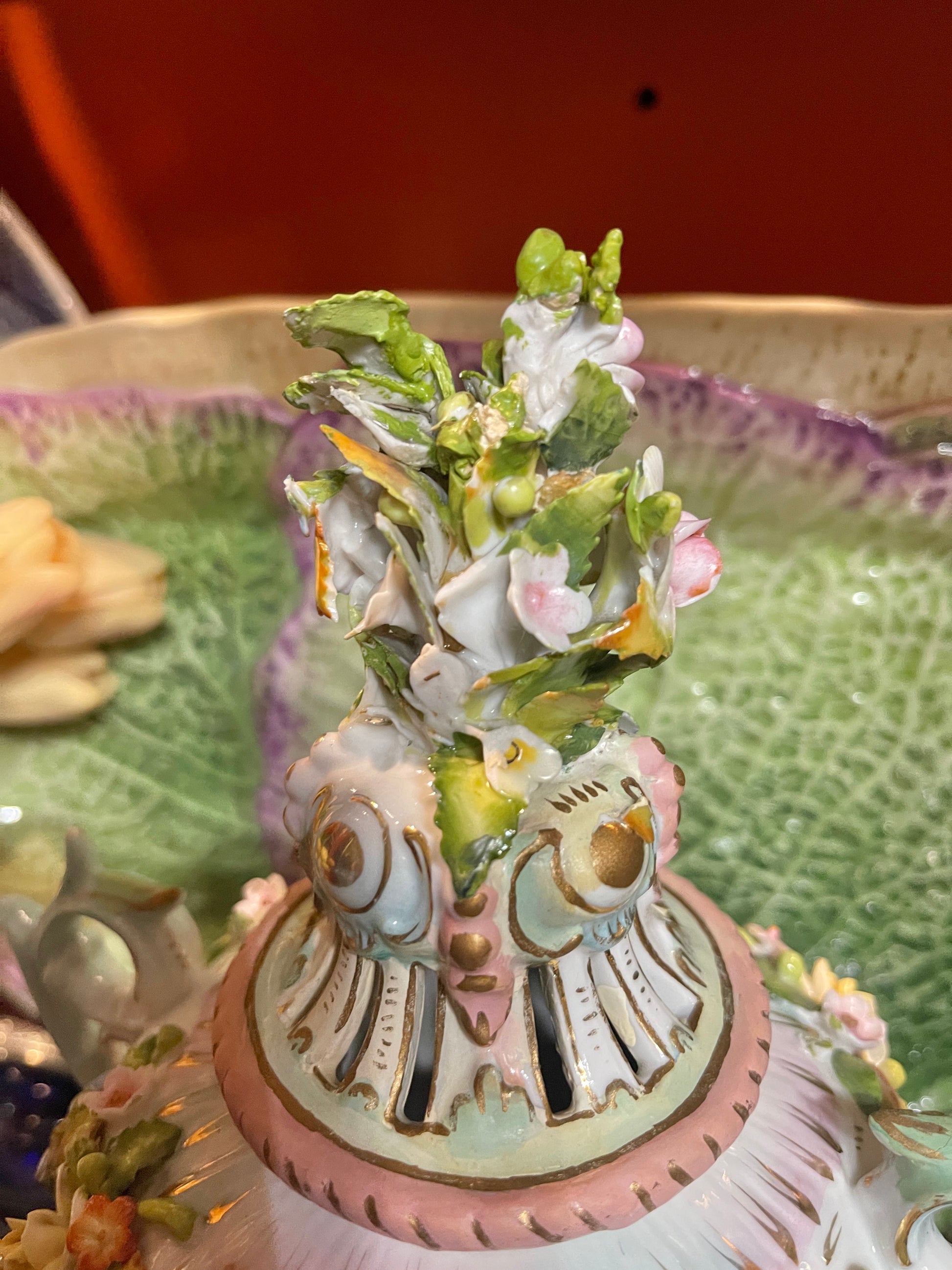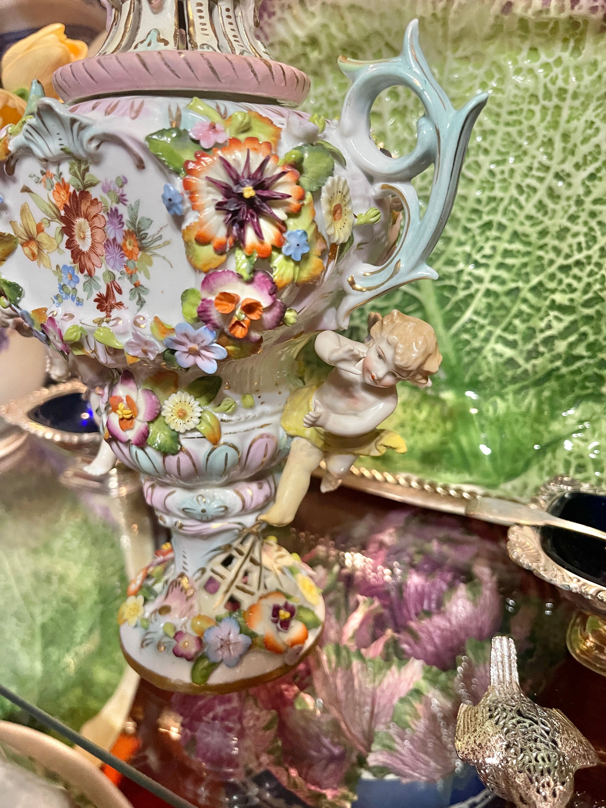 This is Meissen at its most enchanting — delicate, dramatic, and impossibly detailed. Every flower is sculpted by hand. Every brushstroke is intentional. And the cherubs? They give it that unmistakable touch of whimsy that makes Meissen feel less like an object… and more like a small piece of European fantasy made real.