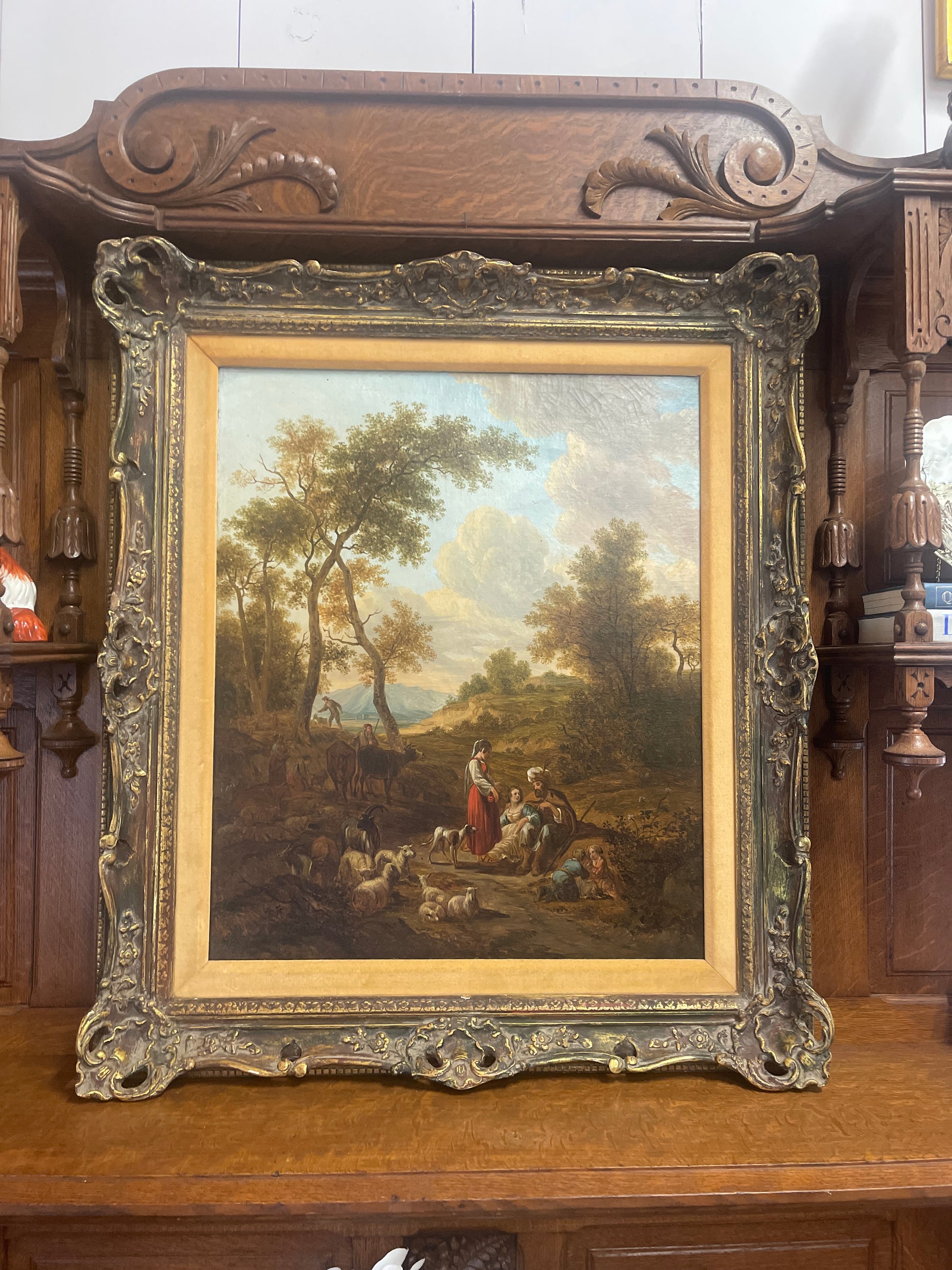 Antique Oil Painting Reproduction of Italianate landscape with Jacob, Leah and Rachel, by Nicolaes Berchem