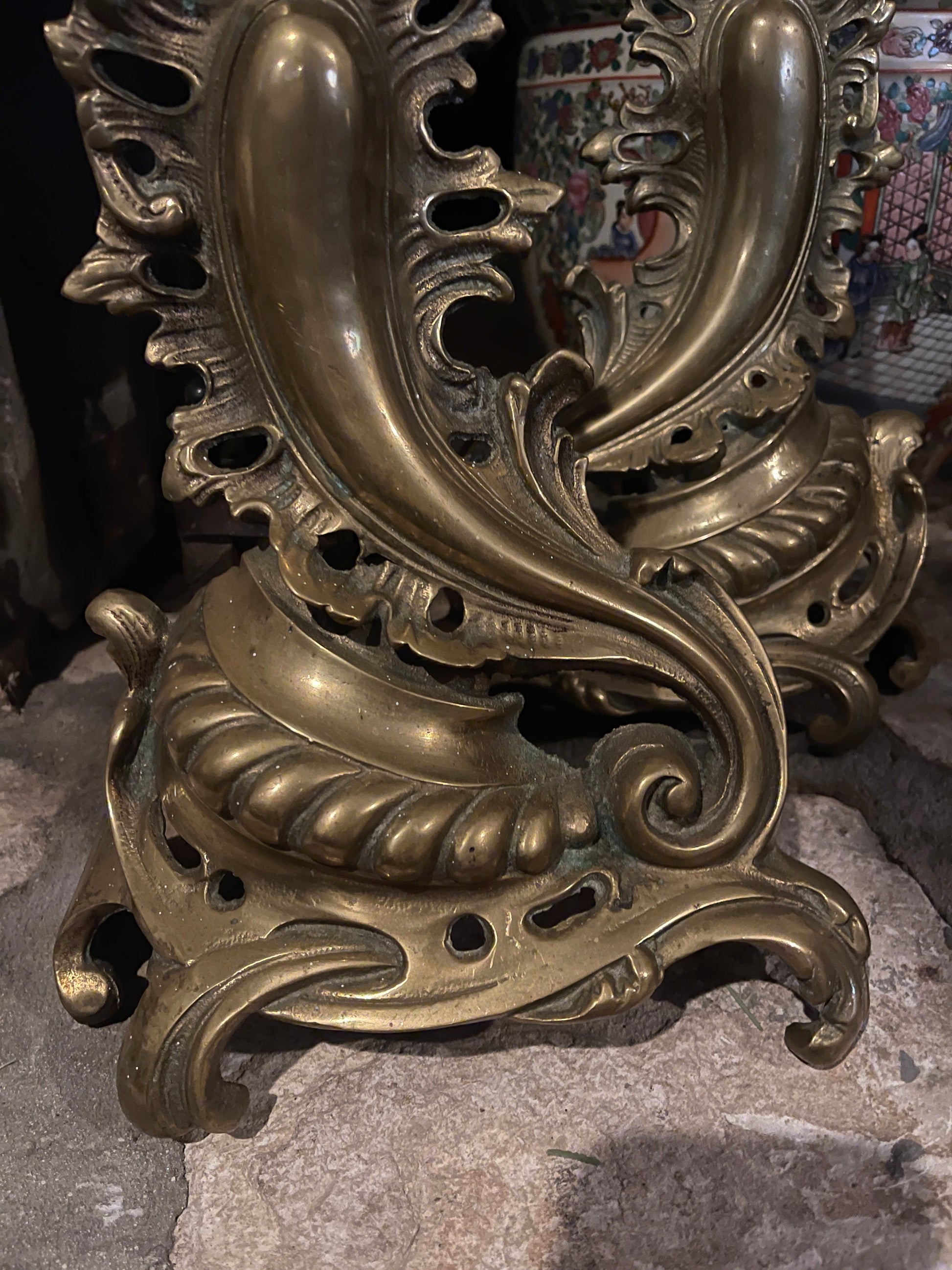 Antique Sheffield, New York Gilt Brass Andirons | Rococo Revival Fireplace Andirons | Sourced in Memphis| Heirloom Estate Decor