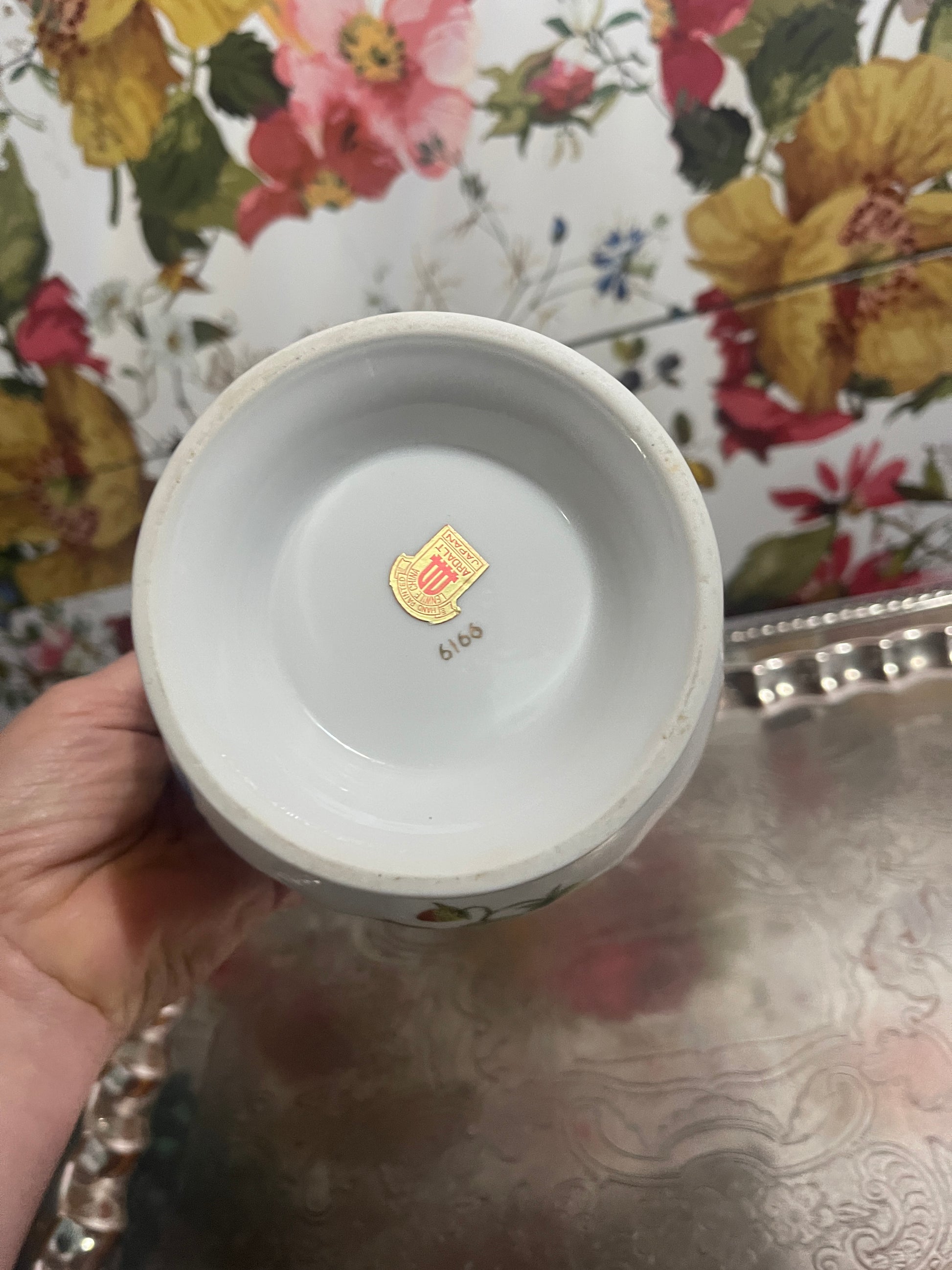 Vintage Ardalt Lenwile Royal Crown Cache Pot with Butterflies, blooms, and strawberries. Reminiscent of Herend…Original gold seal attached. So garden chic!