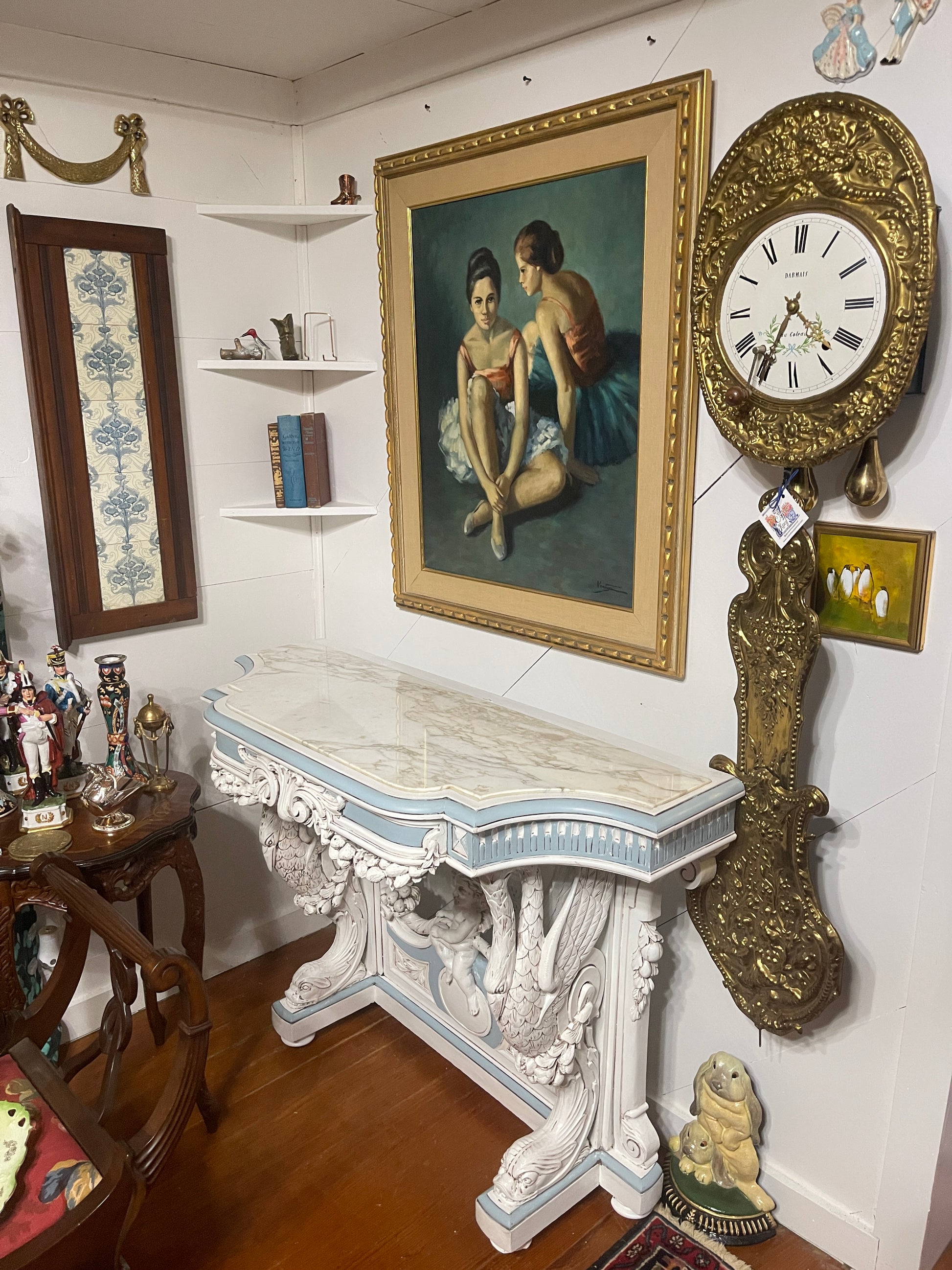 It was acquired at the lovely Austin estate of a design enthusiast who graduated from Parsons School of Design in New York and the Université of Jean Moulin in Lyon, France. He later had a successful career at the University of Texas as the assistant to the Dean of The College of Fine Arts and was curator of the Historical Textiles and Apparel Collection. It was full of European treasures brought back from his time abroad. It was a maximalist’s dream. He was also a well known performer around Austin revered for his singing, dancing, acting, and musically as a gifted pianist.