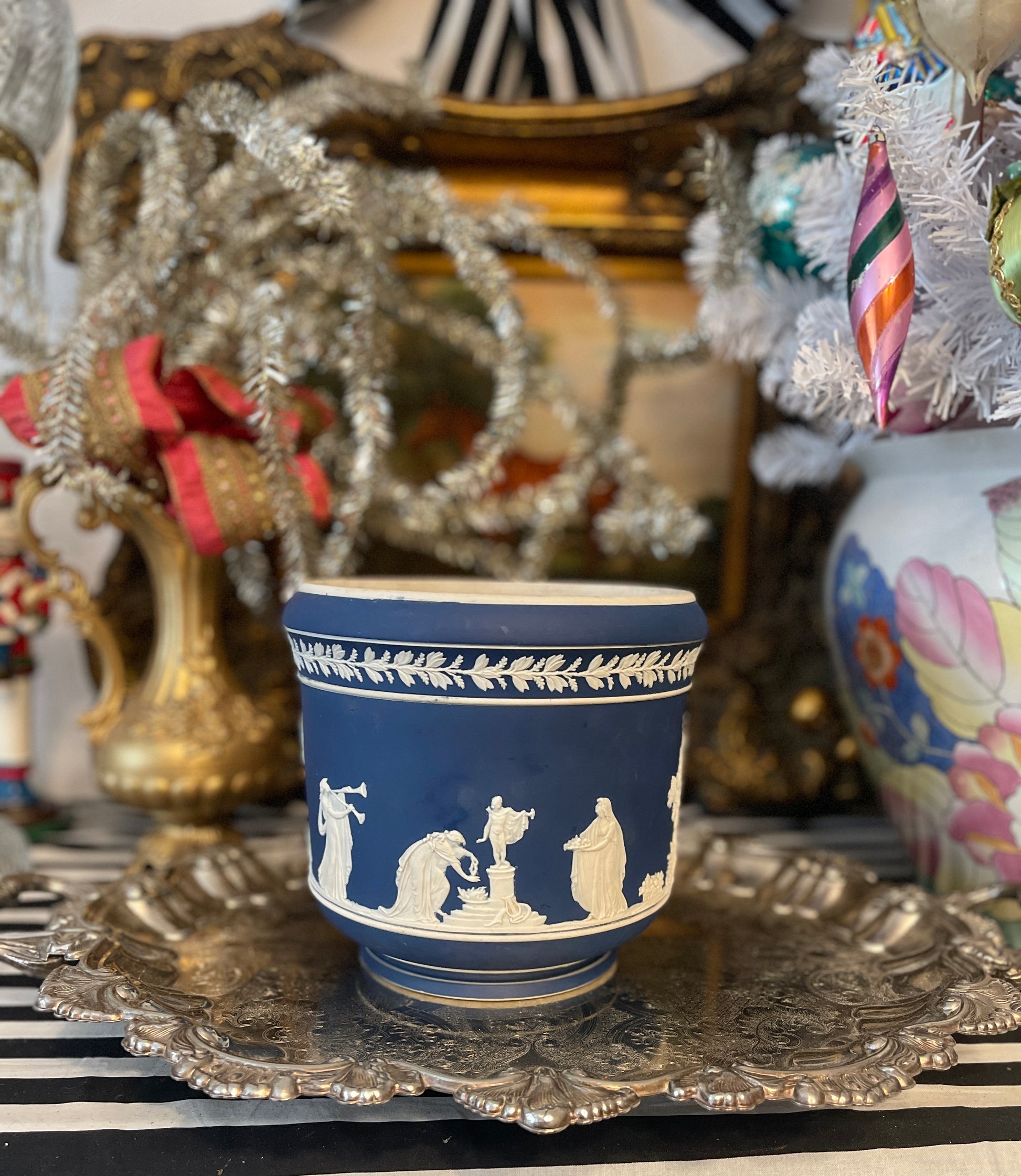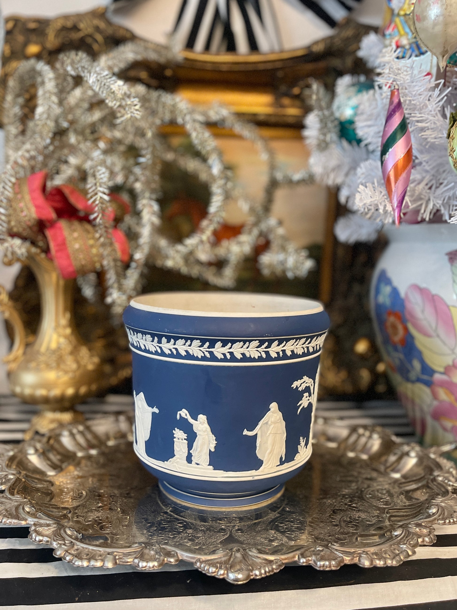 Blue and White Jasperware Cachepot by Adams, Made in England