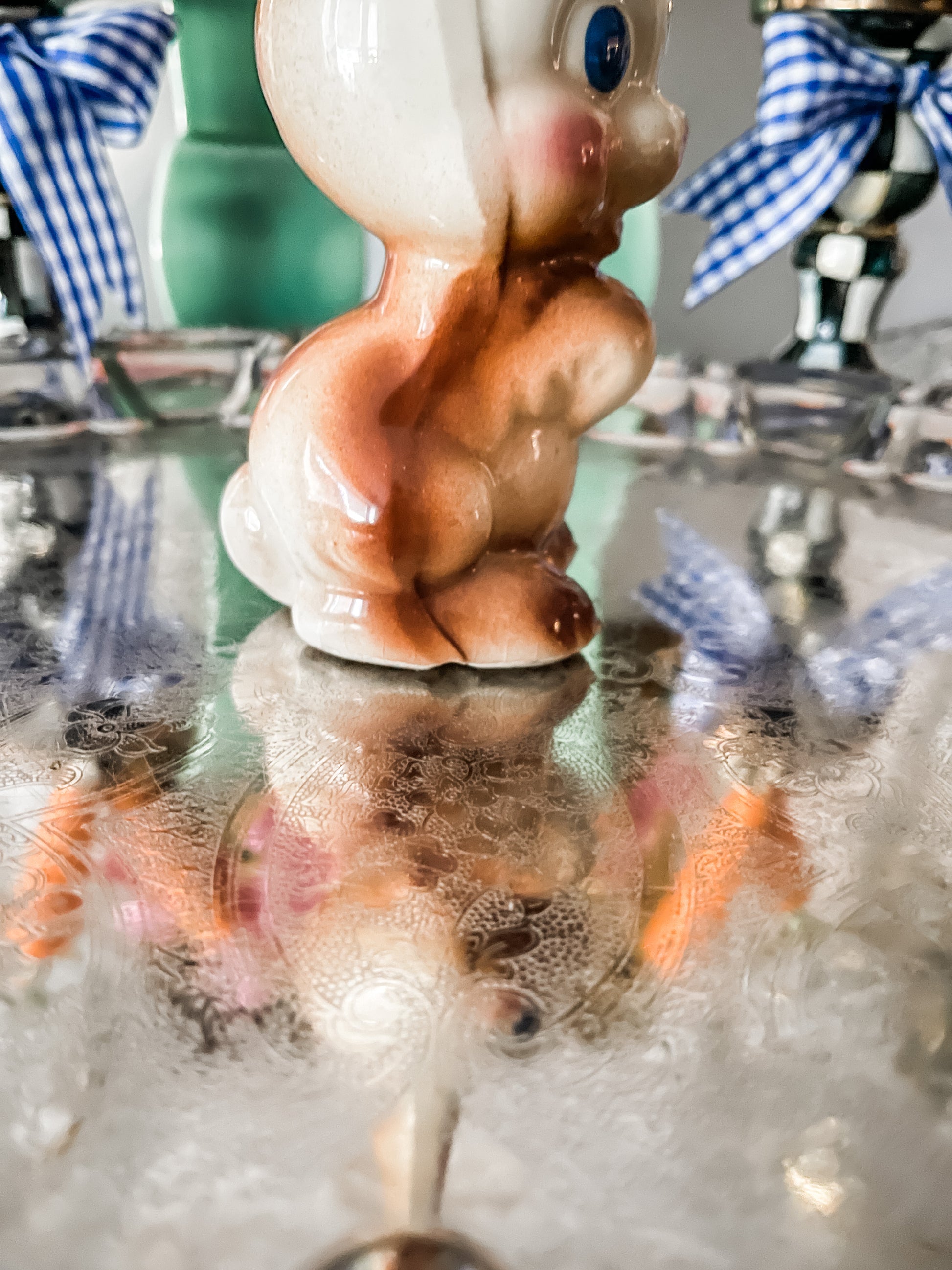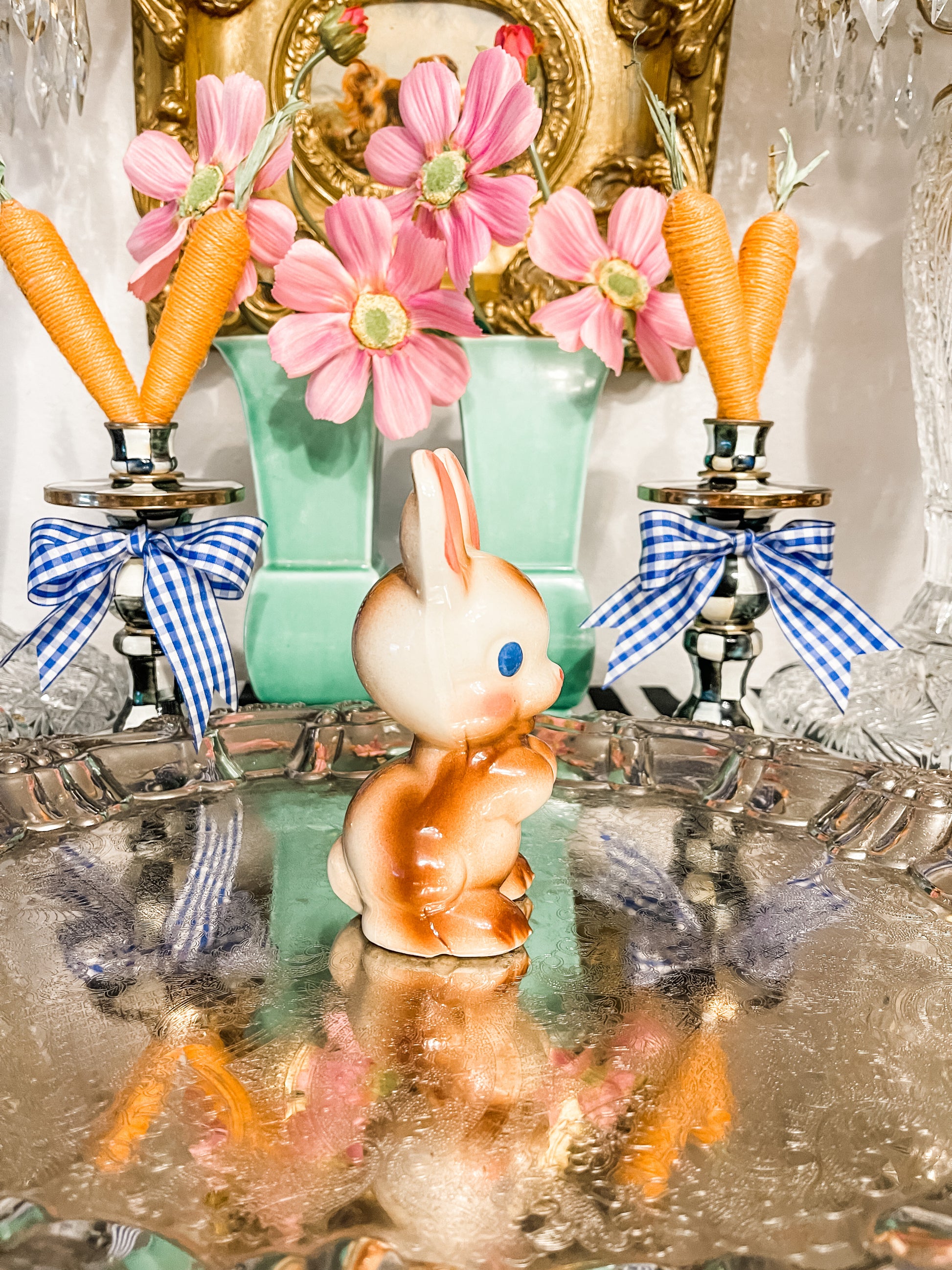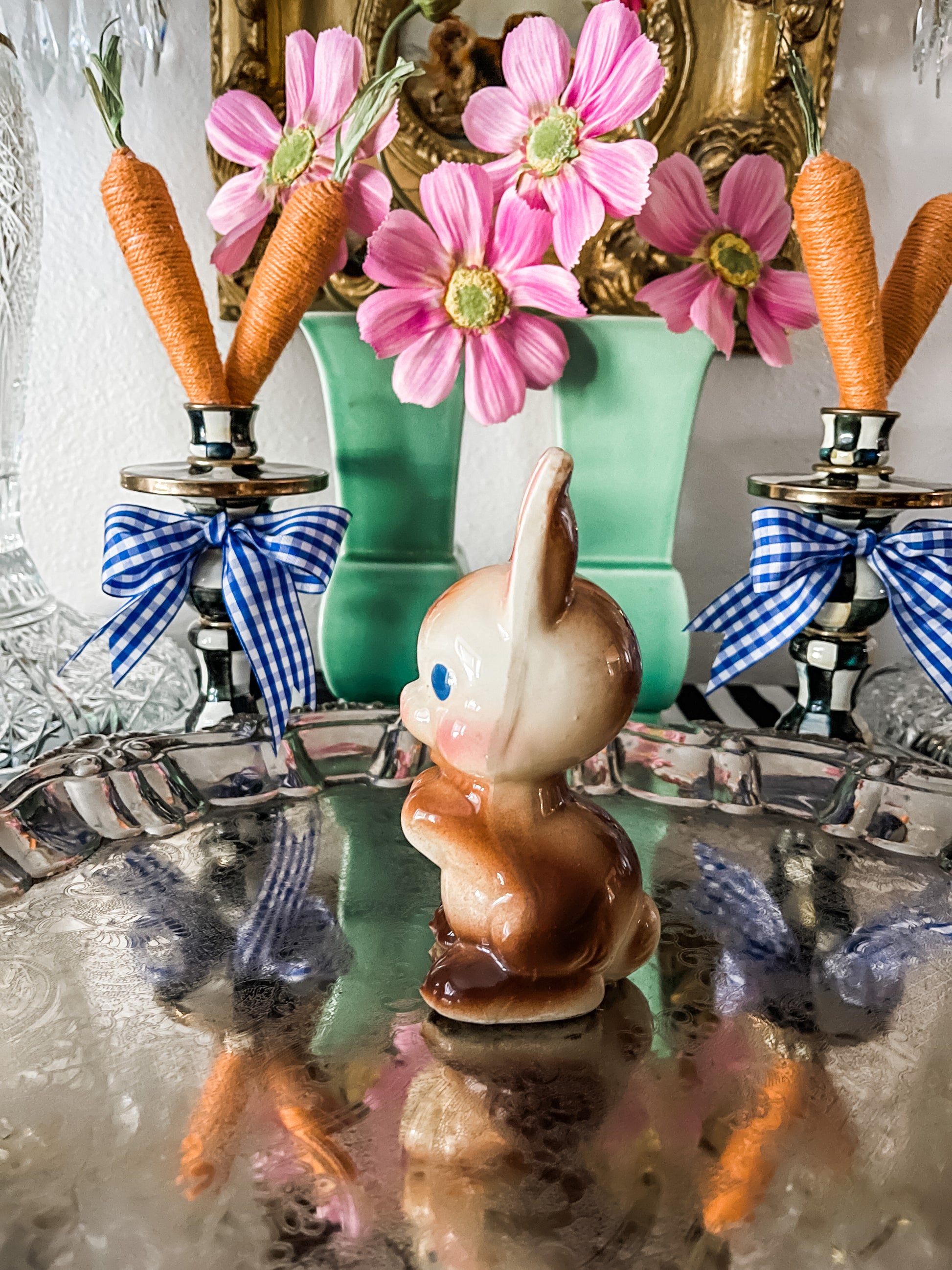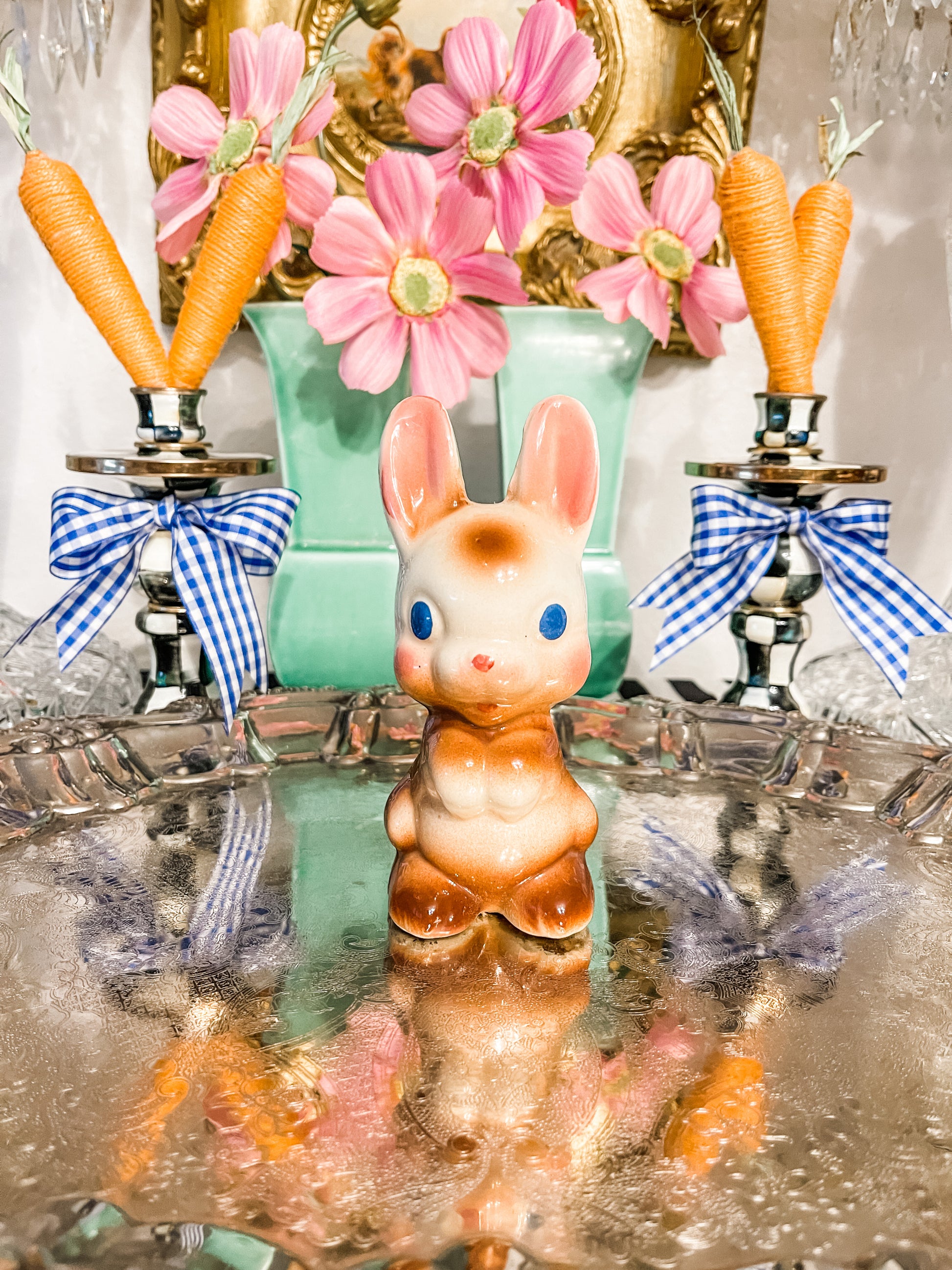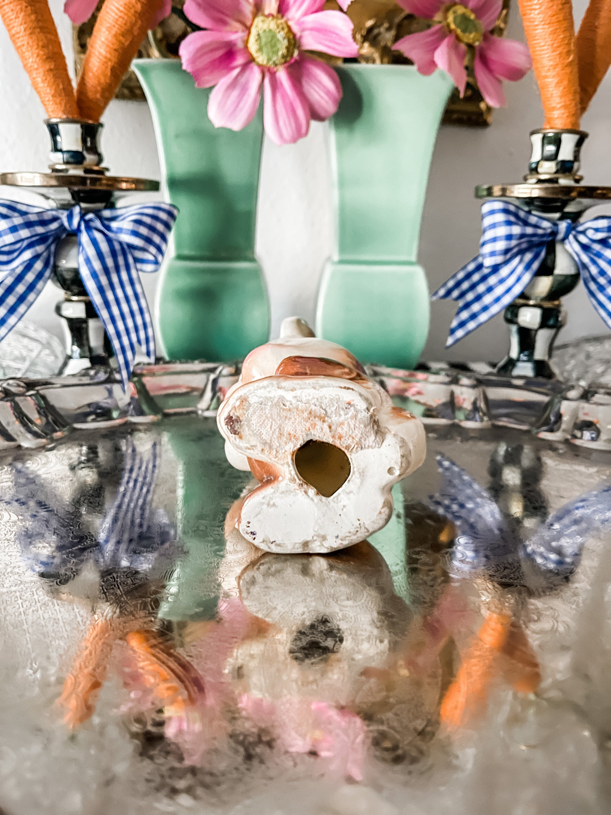 Could this little guy be any cuter?! I don’t see how. The big blue eyes and sweet features, make this vintage mid century piece perfect for a nursery, as shelf decor or holiday decor.