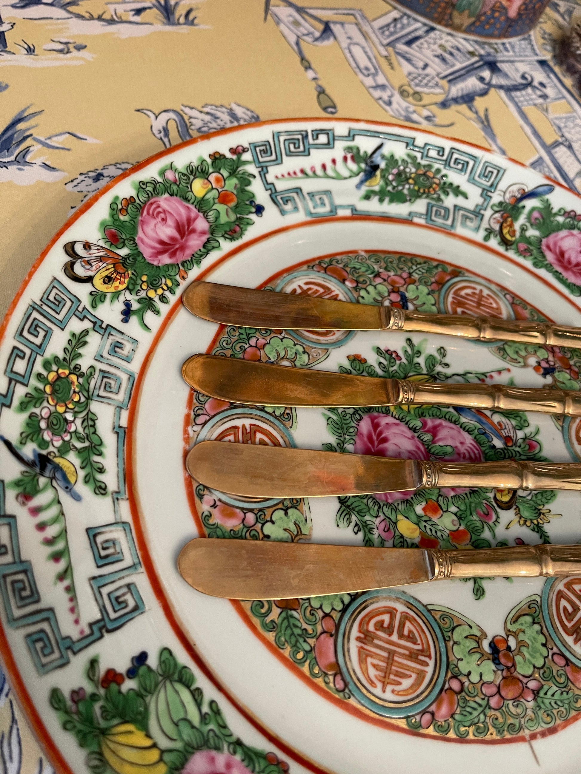 Set of 4 Vintage Chinoiserie Bronze Faux Bamboo Spreaders. Marked, Nickel Bronze.