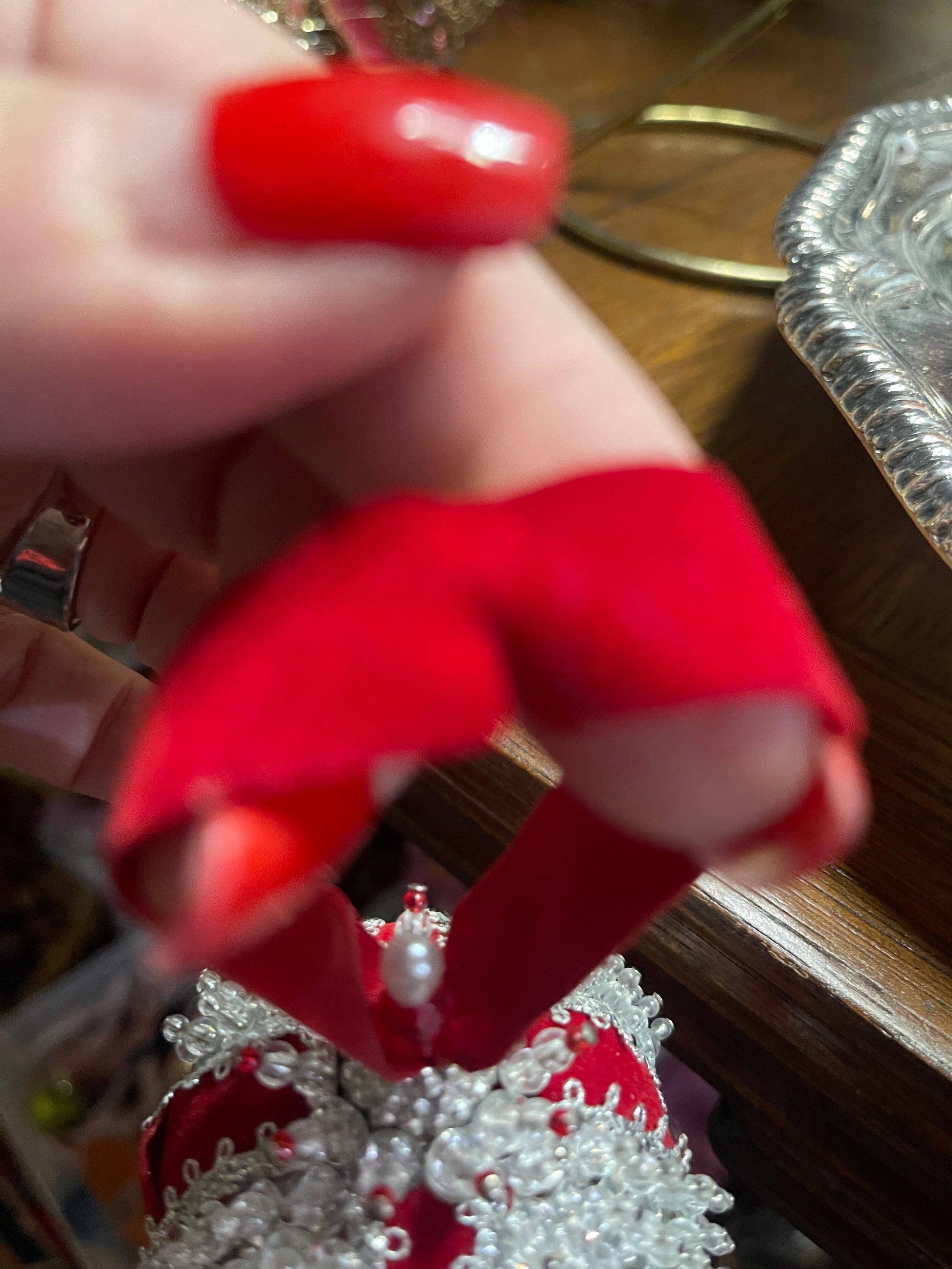 Step into a storybook Christmas with these exquisite vintage push pin ornaments, all sourced from the same posh estate nestled deep in the rolling hills of the Texas Hill Country. These handmade treasures shimmer with old-fashioned glamour…Each tells its own tale of holiday parties past: grand Southern gatherings beneath crystal chandeliers, silver trays of petit fours, and Bing Crosby crooning softly in the background.
