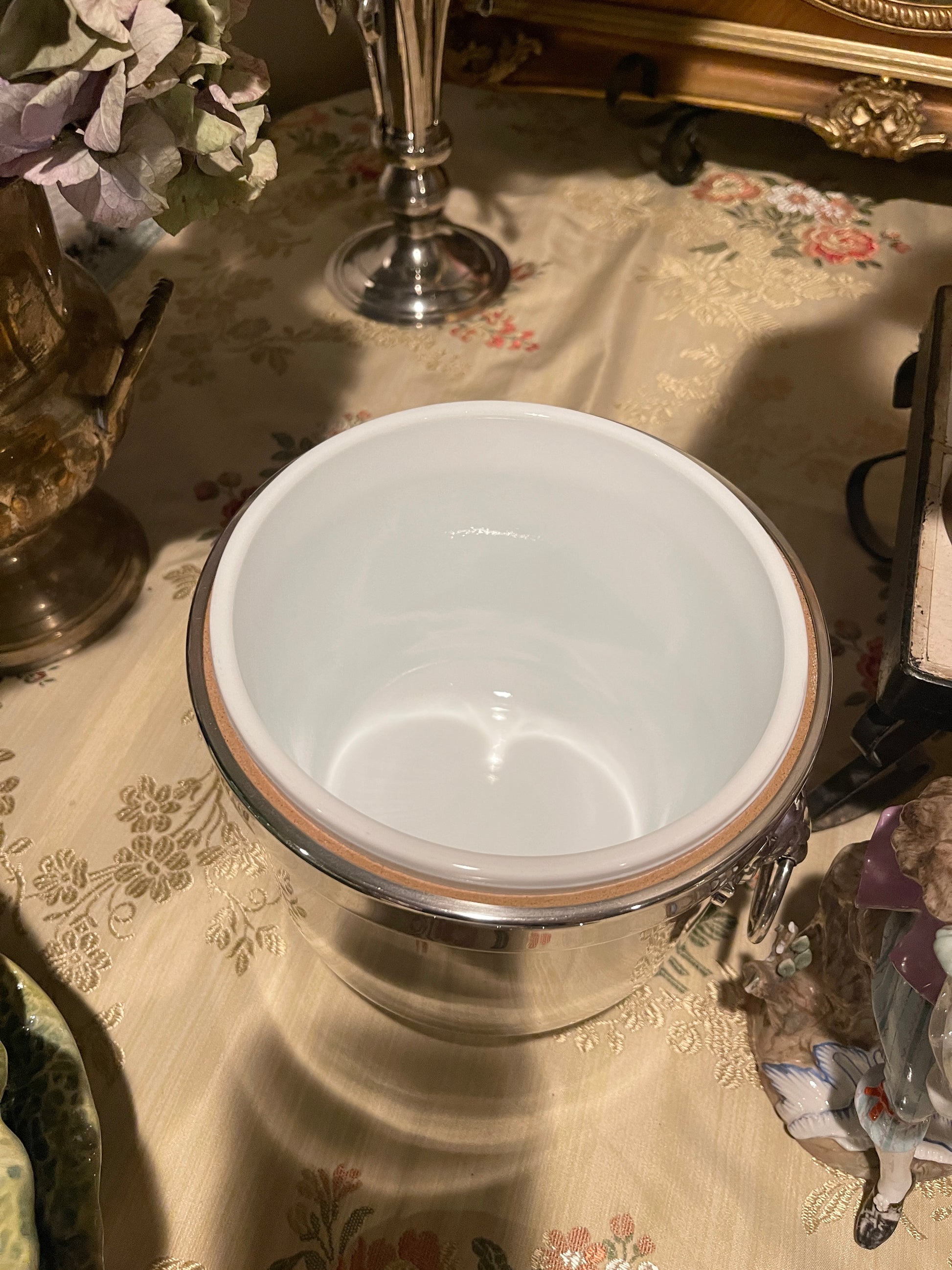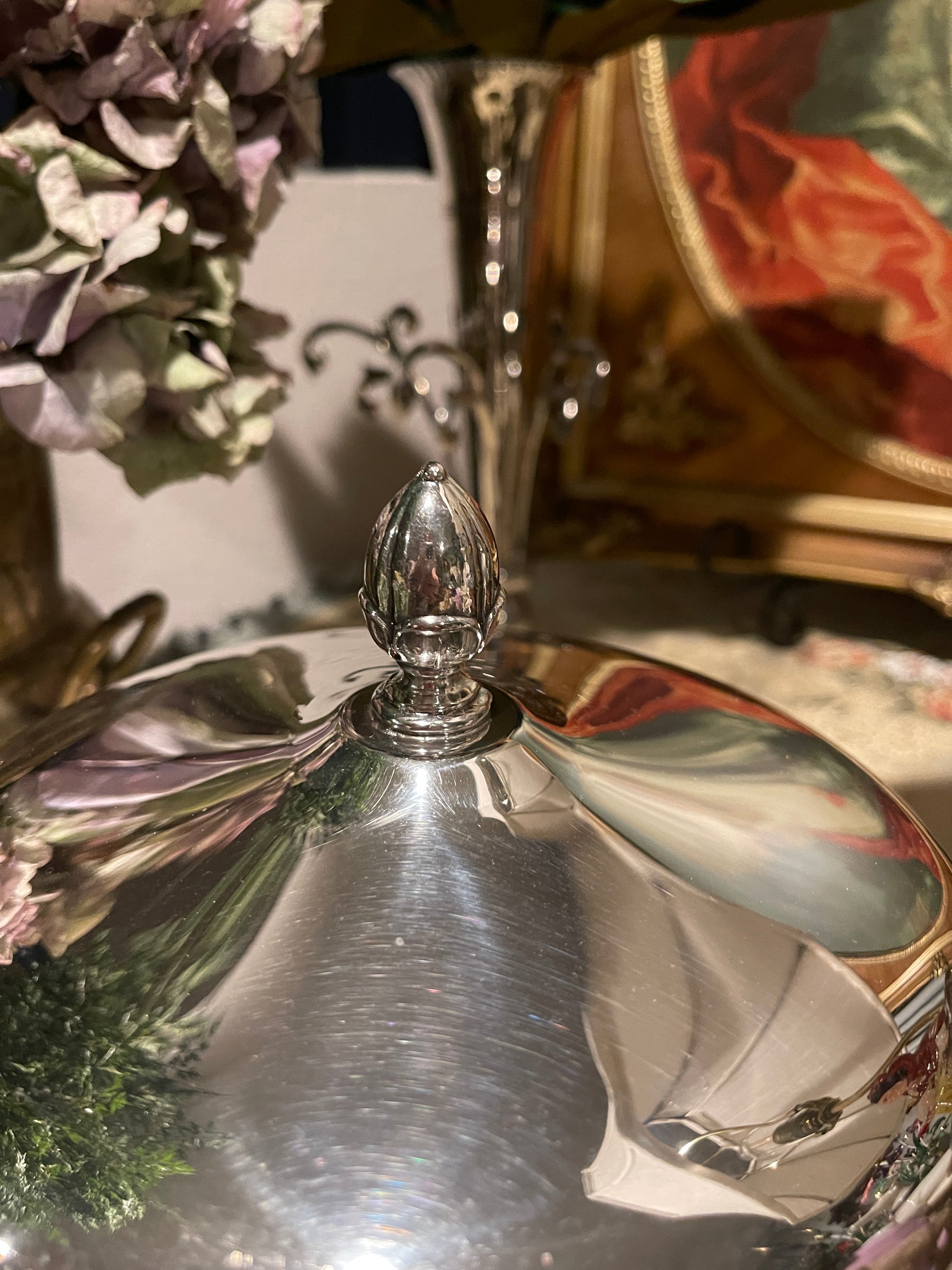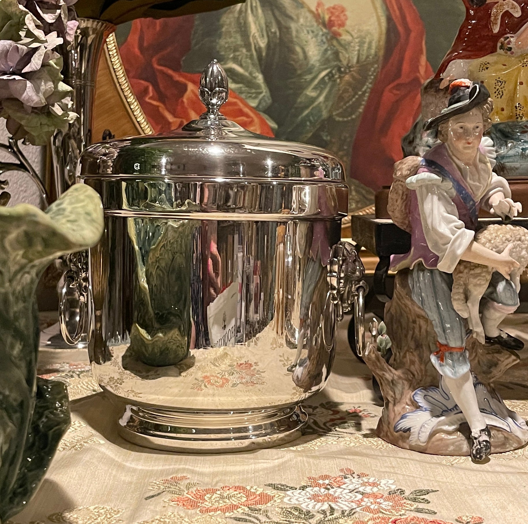 I was super excited to find this 1950s silver plate ice bucket by F.B. Rogers. It was love at first sight when I saw those lion heads with the rings in their mouths and then surprise! When I lifted the lid, there was the original liner… that almost never happens. I sourced this piece from a glorious Memphis estate… the same as the Victorian detailed biscuit box.
