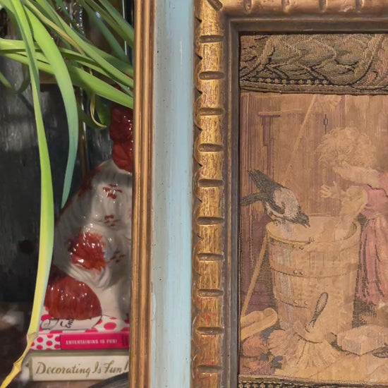 Framed French Tapestry Wall Art — Charming Children’s Scene in Gilt & Painted Frame