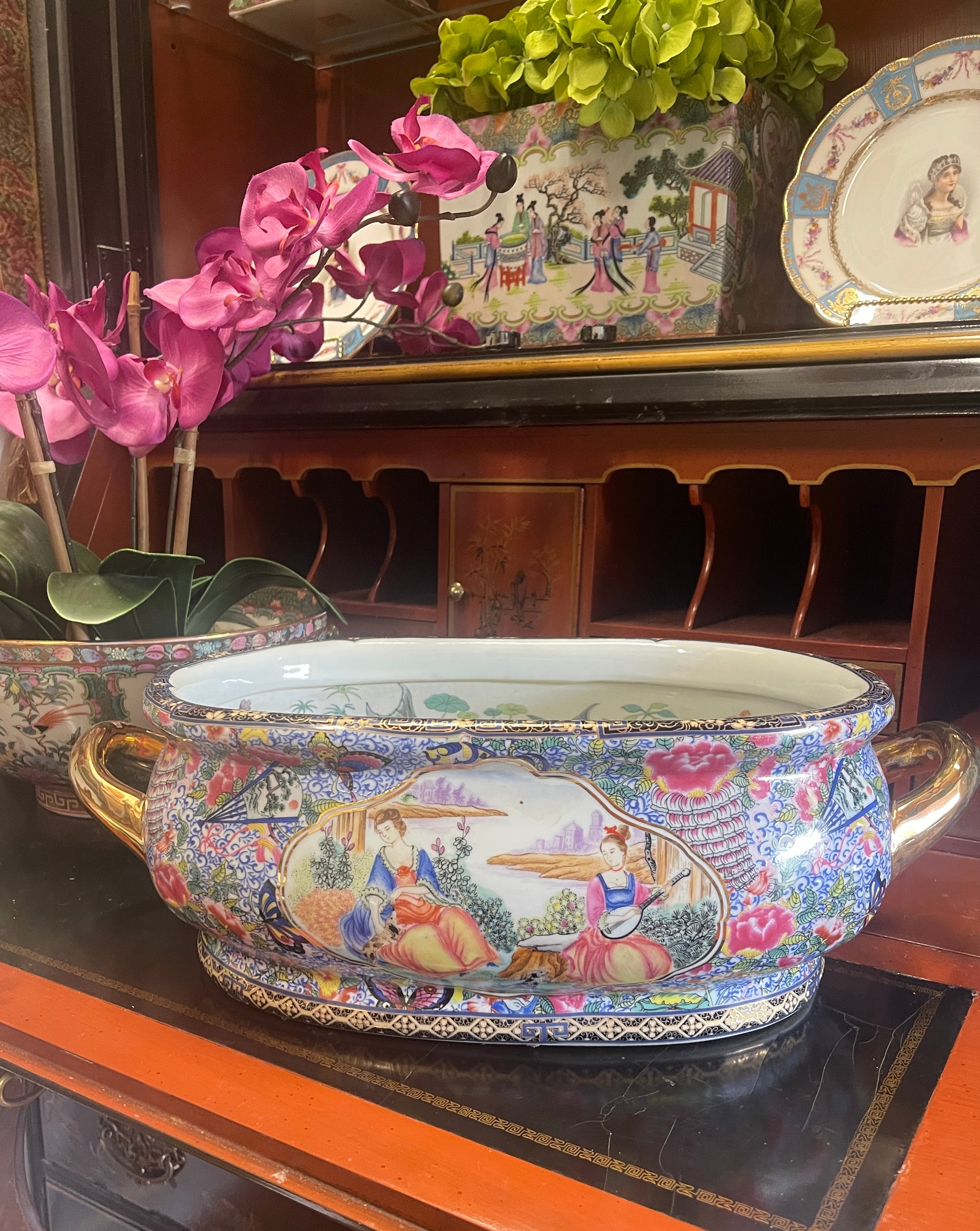 Vintage French Courting Scene Footbath, Vibrant Chinoiserie Detail