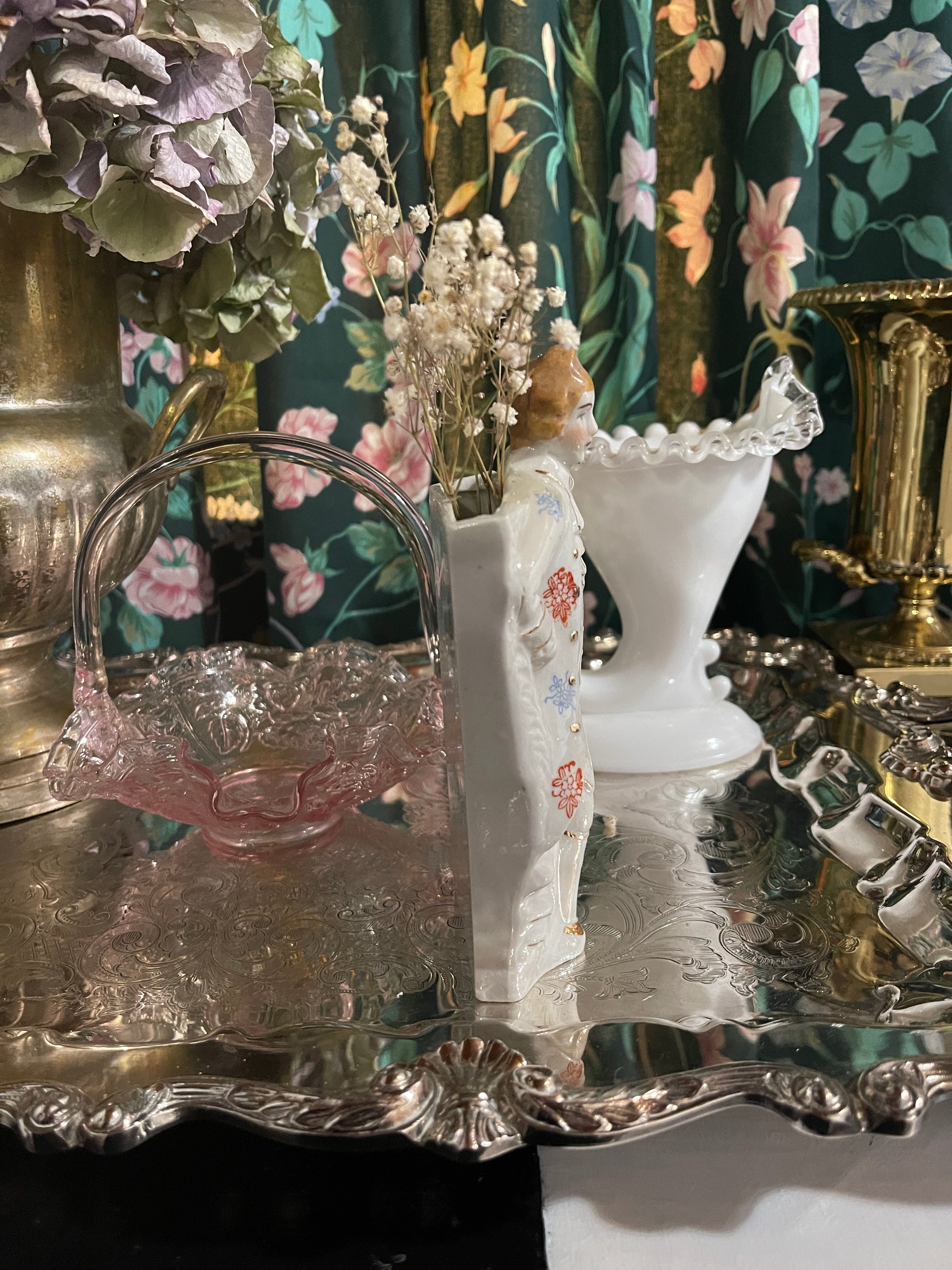 French Fellow Victorian Porcelain Wall Pocket Vase, Made in Japan