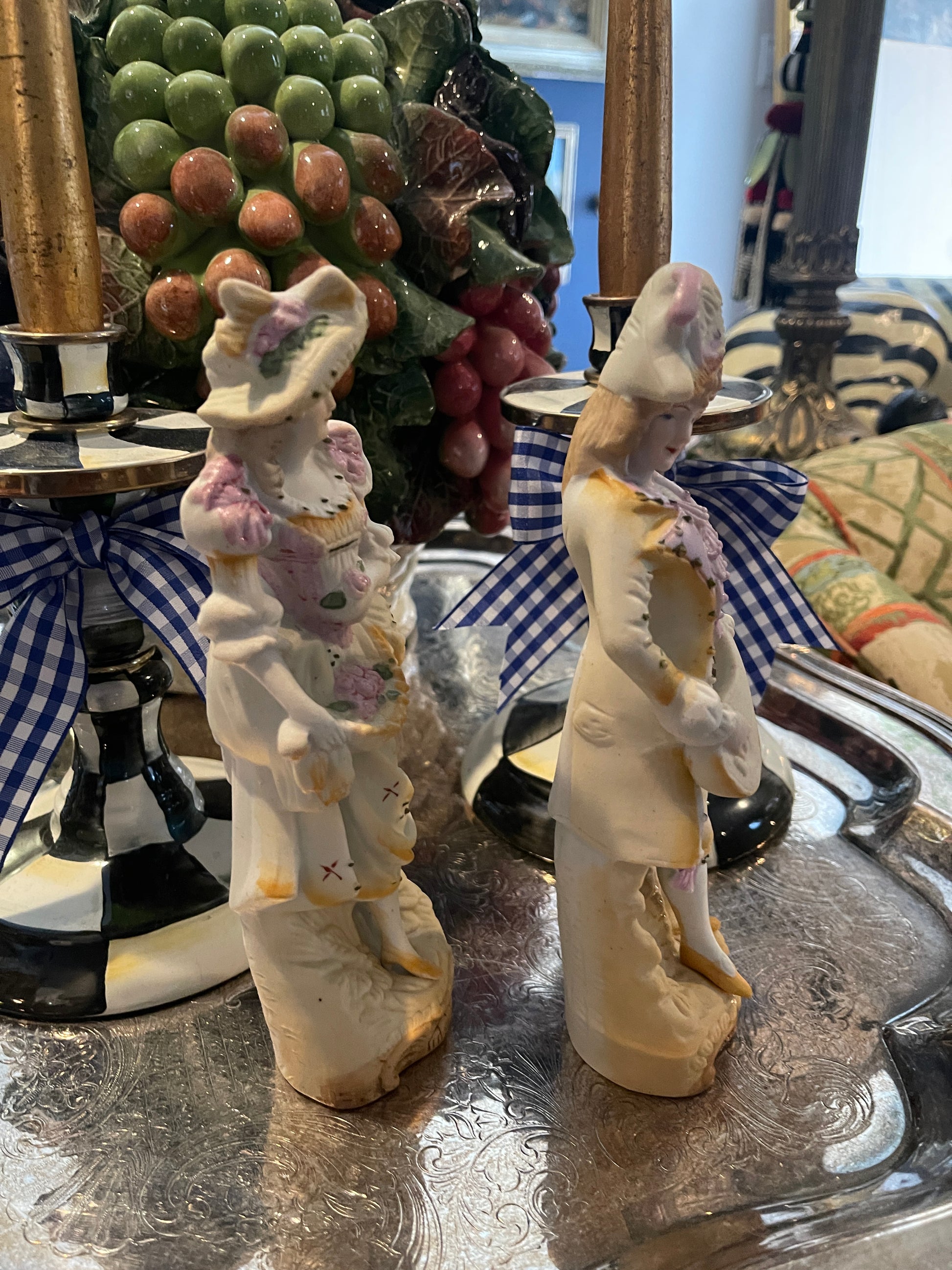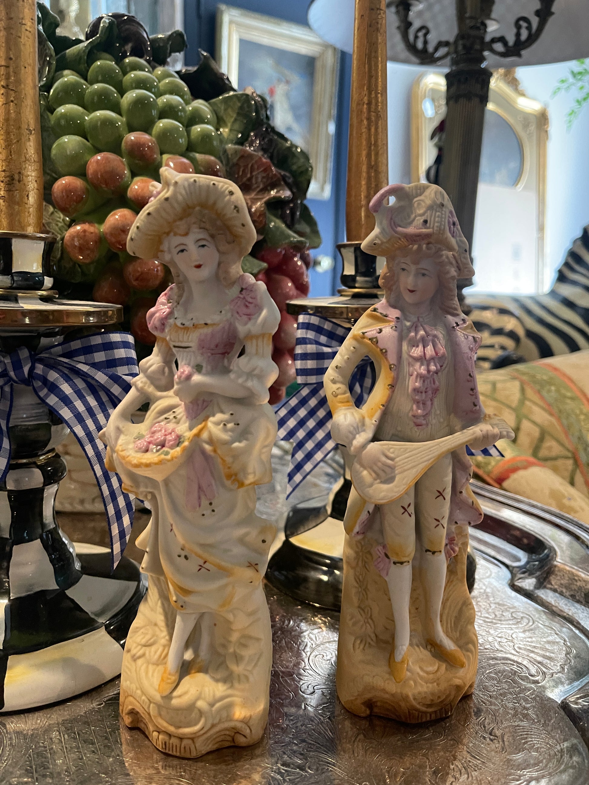 Vintage French figural pair beautifully dressed in pink and gold. Made in Japan.