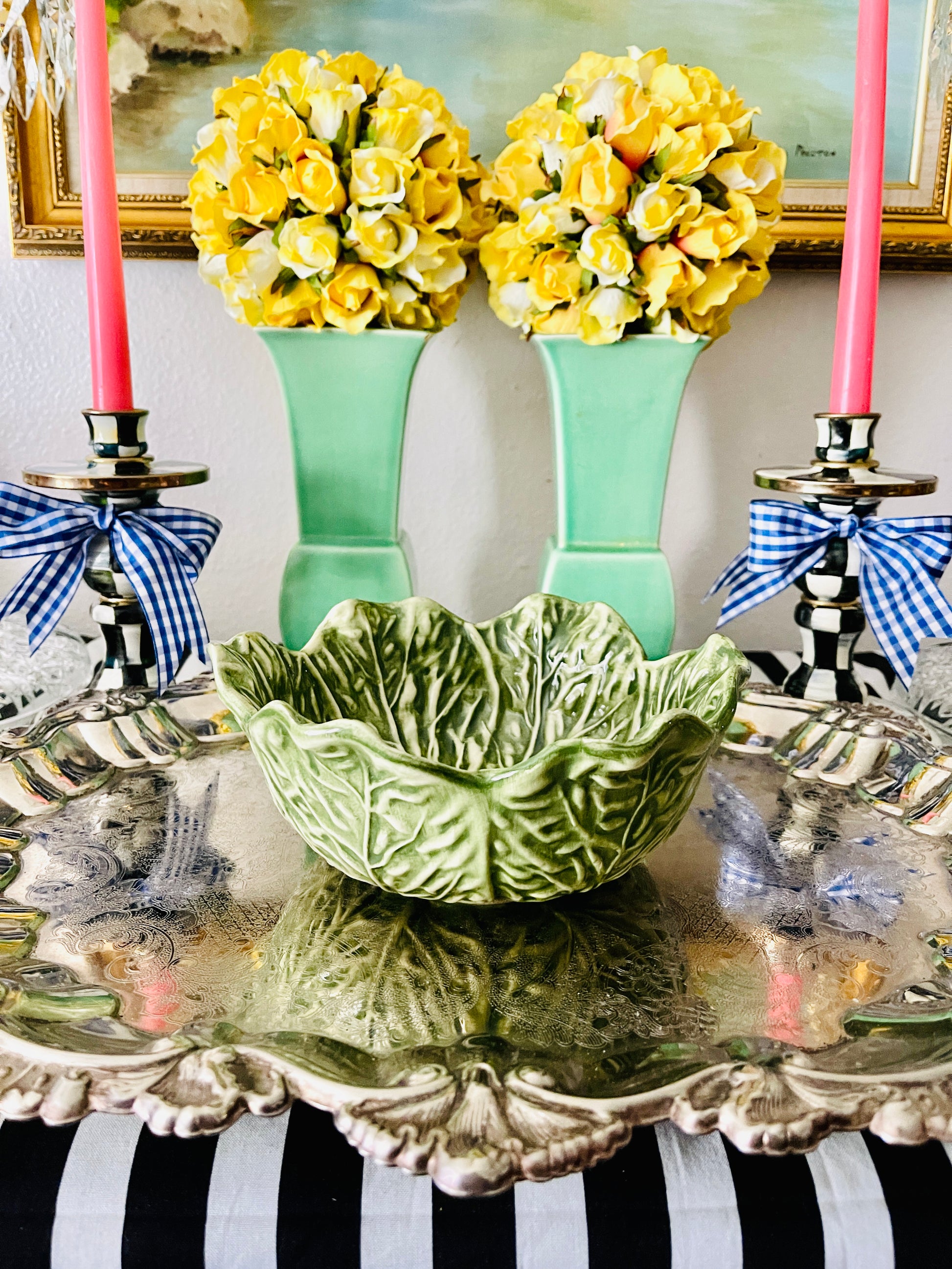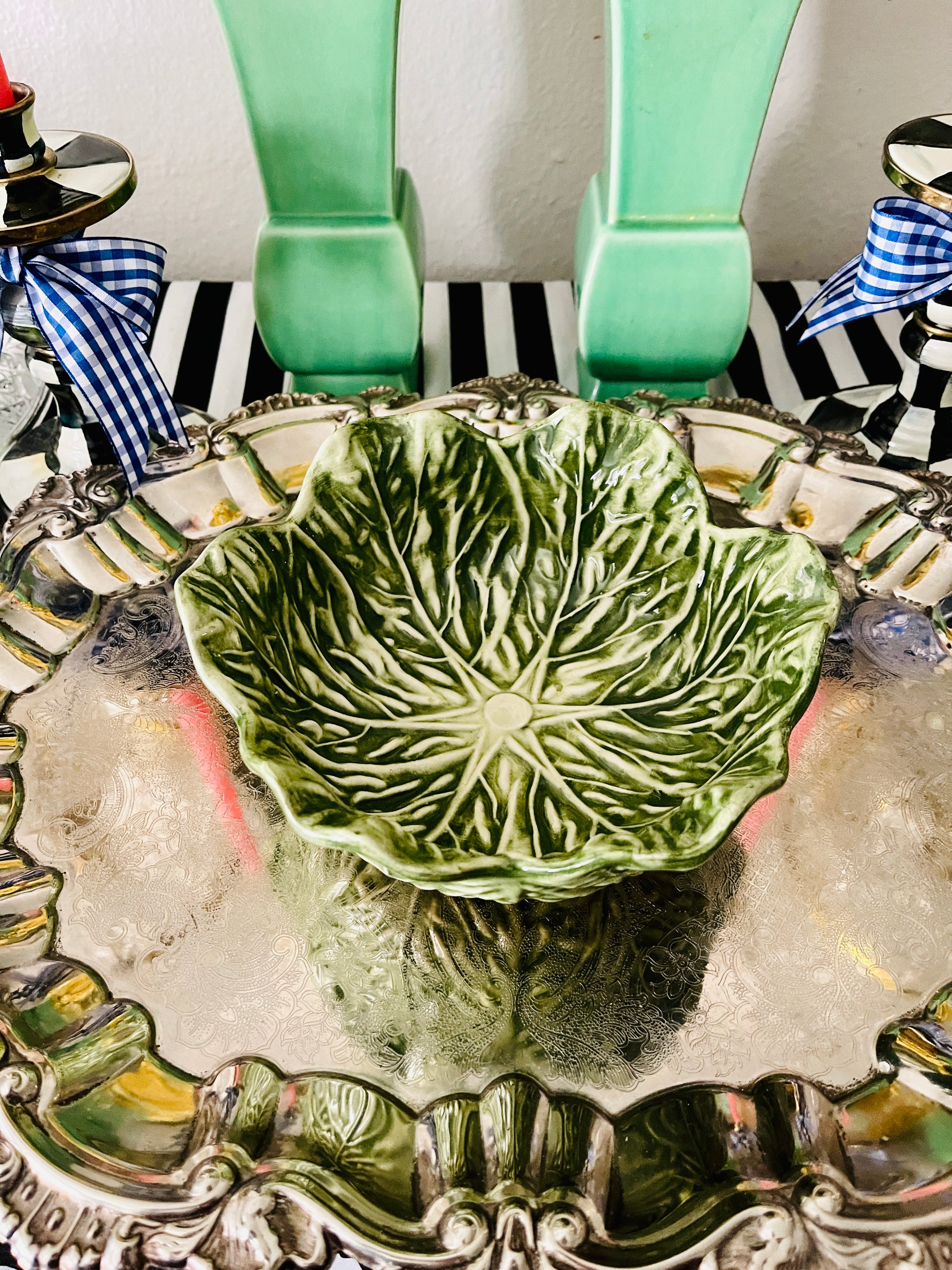 Green Cabbage Ware Serving Bowl- it’s marked, Made in Portugal.