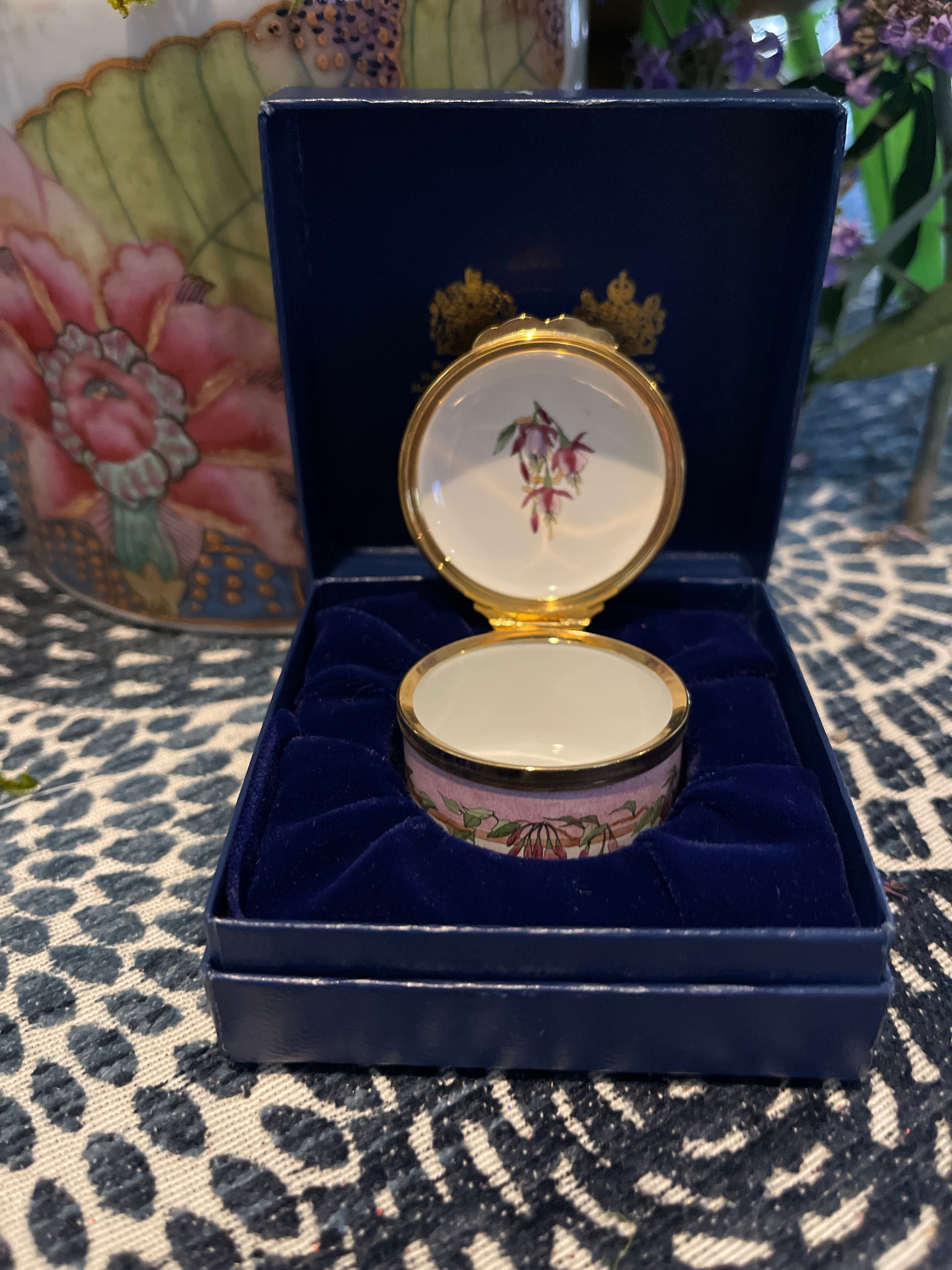 All of the Halcyon Days themed enamel boxes I have listed are from the same estate.
