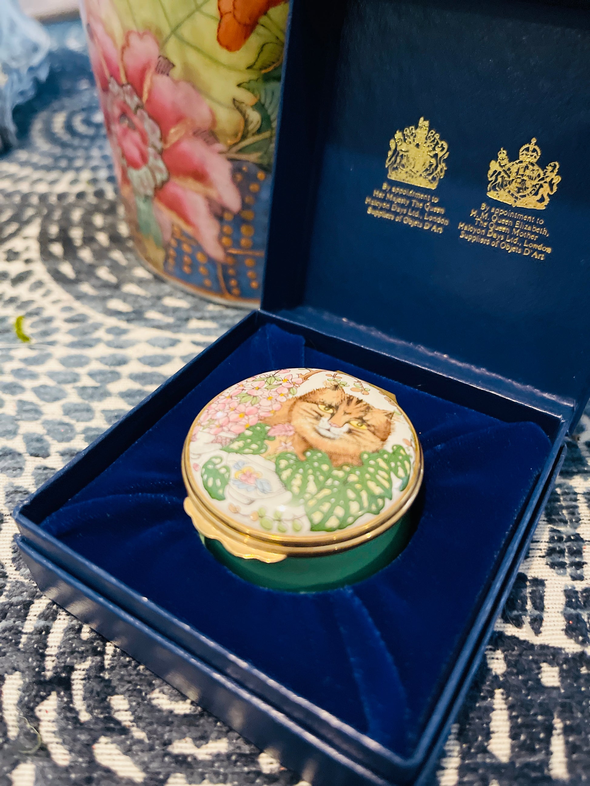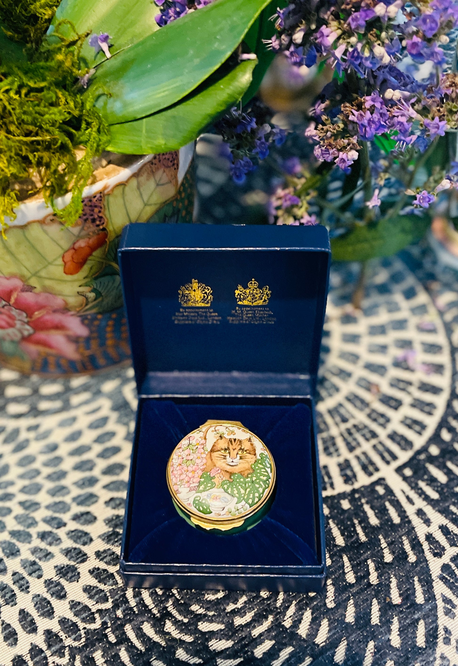 Halcyon Days Enameled Cat Box, Made in England, Original Box