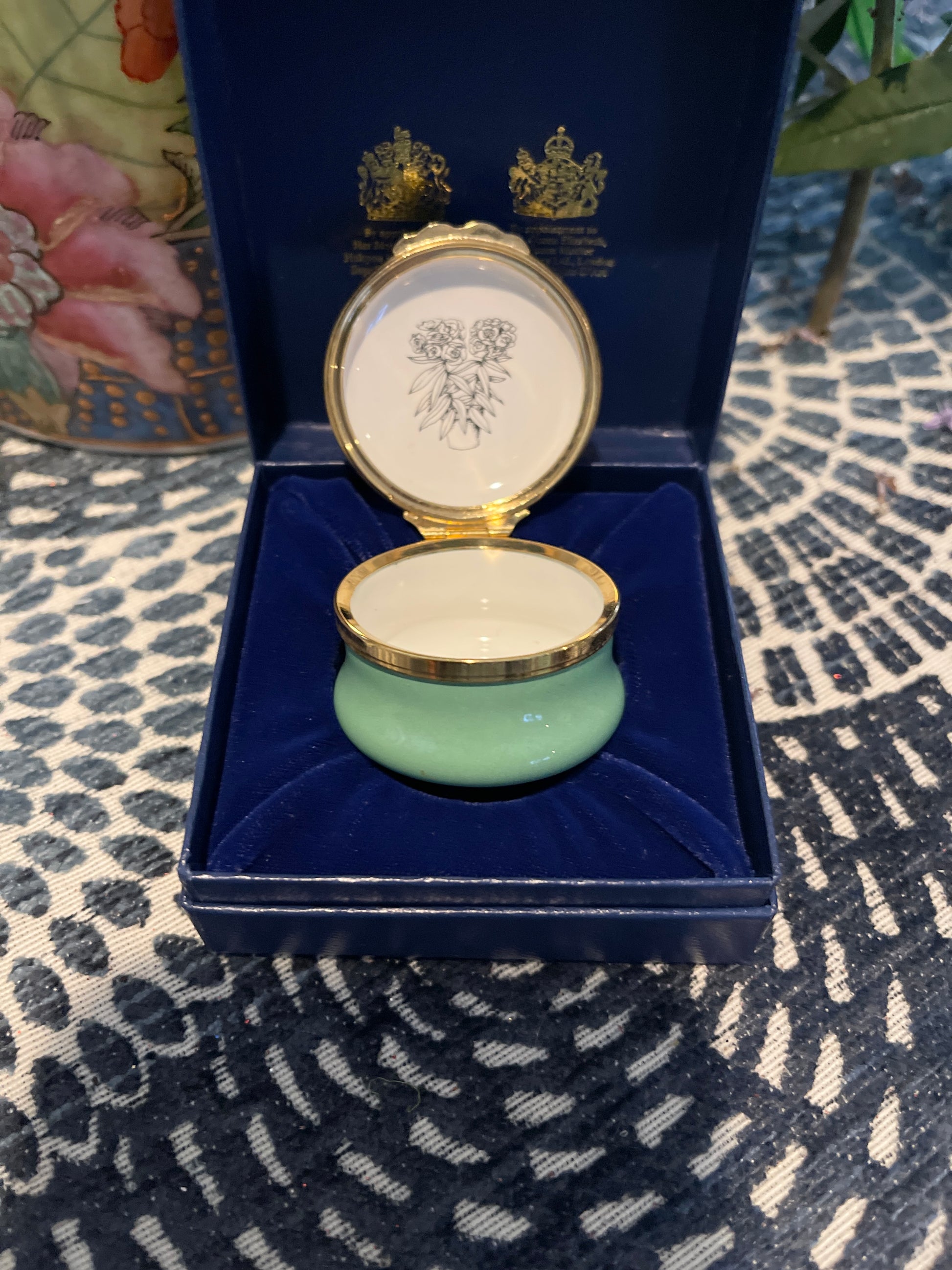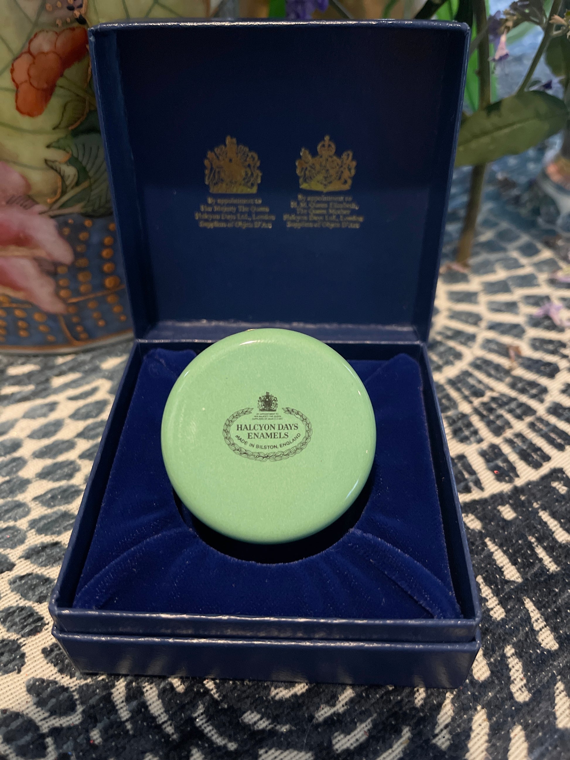 All of the Halcyon Days themed enamel boxes I have listed are from the same estate.