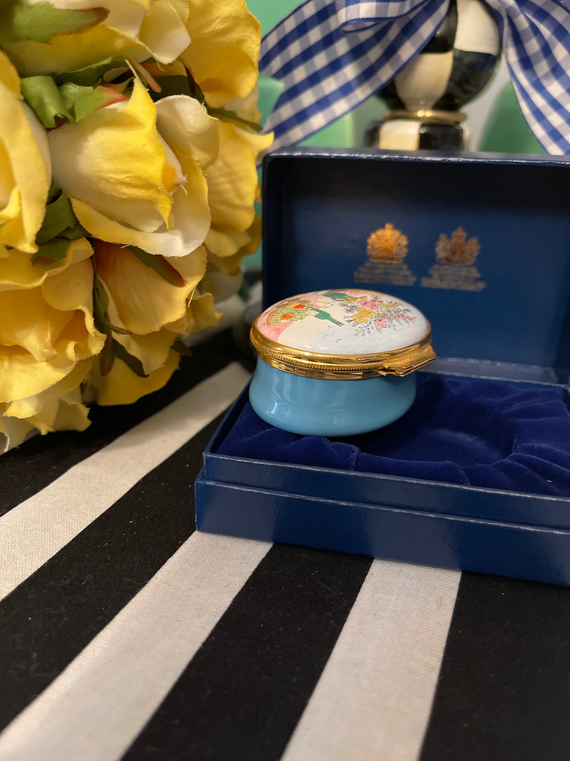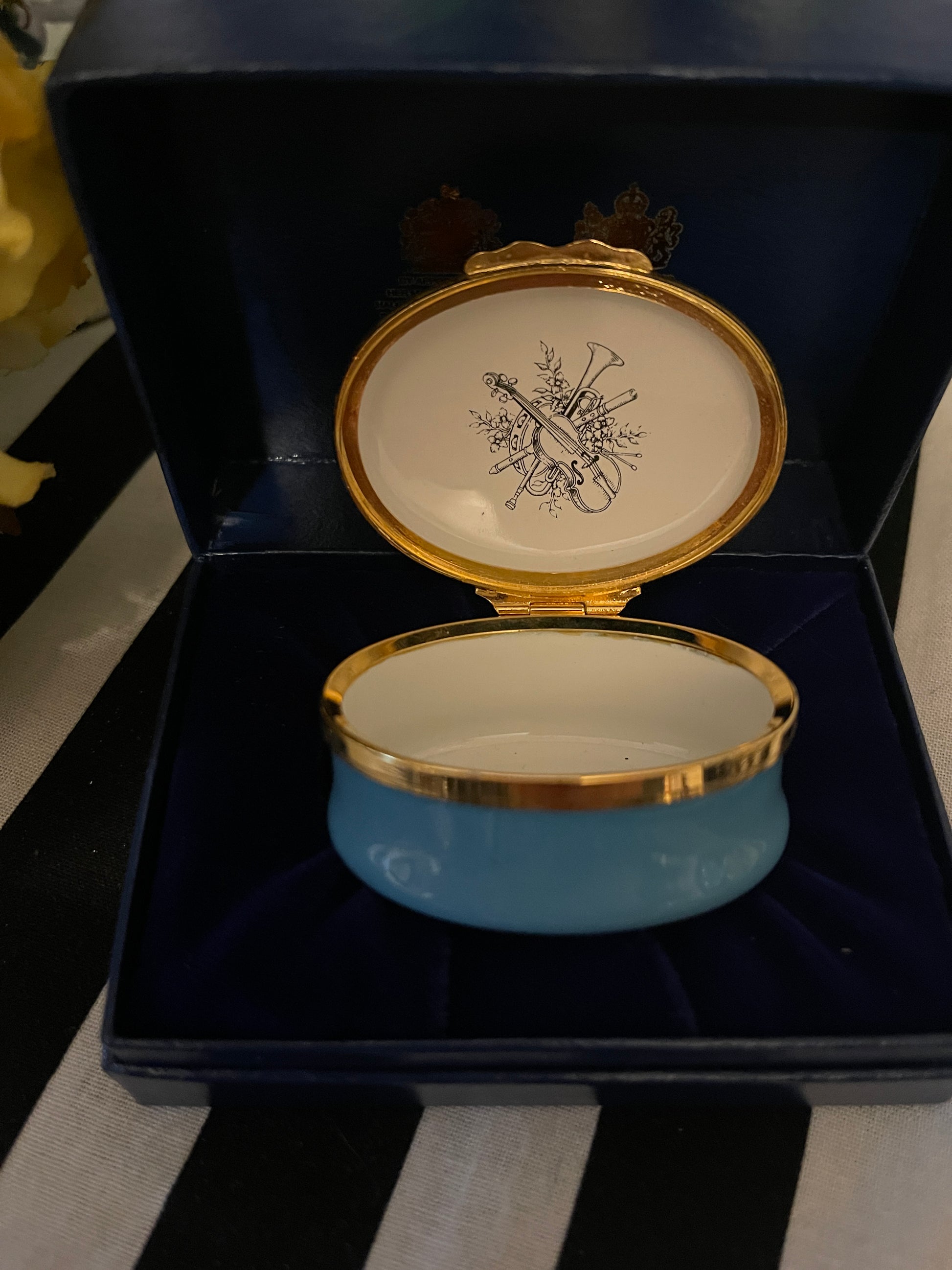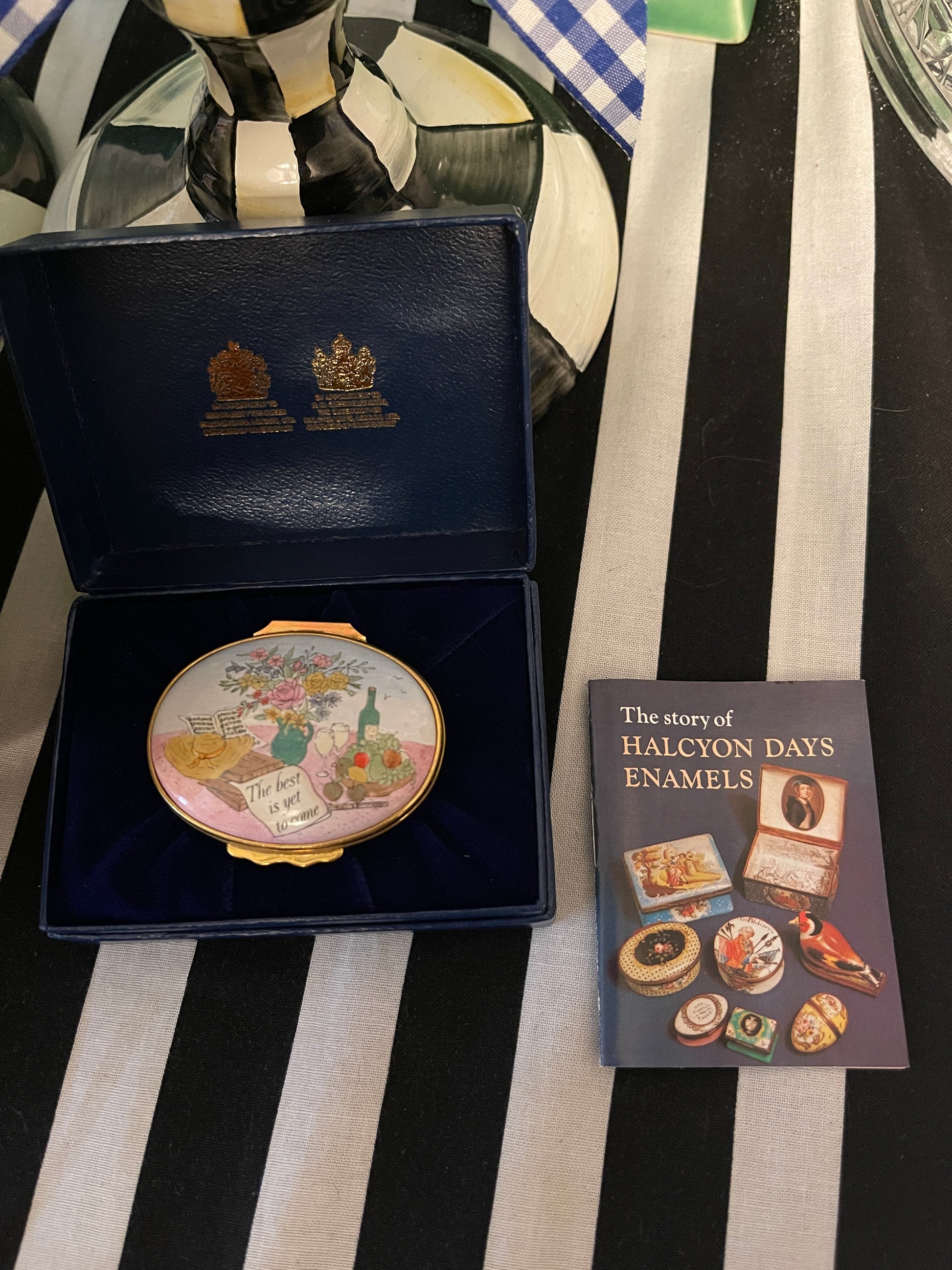 All of the Halcyon Days themed enamel boxes I have listed are from the same estate.