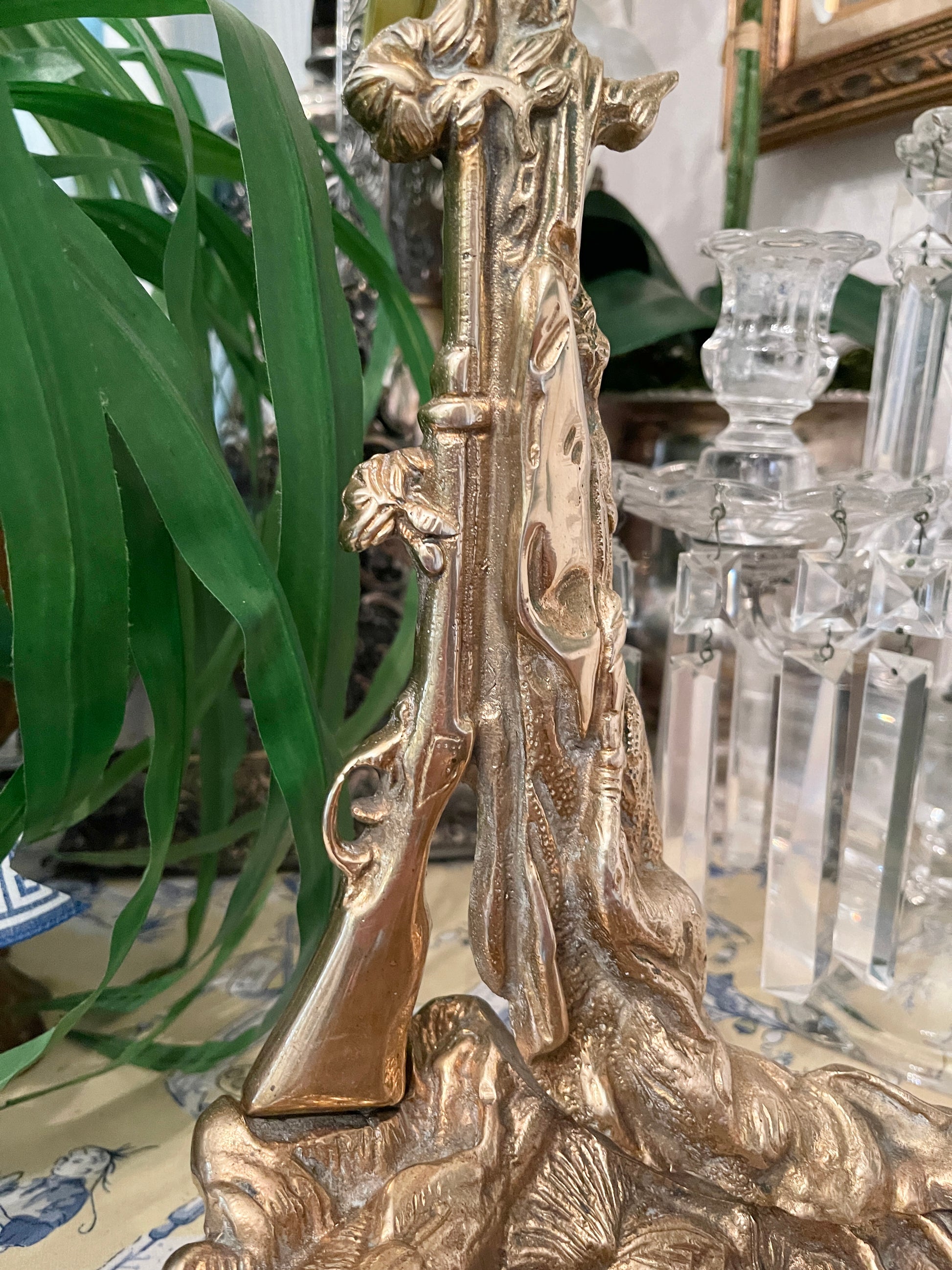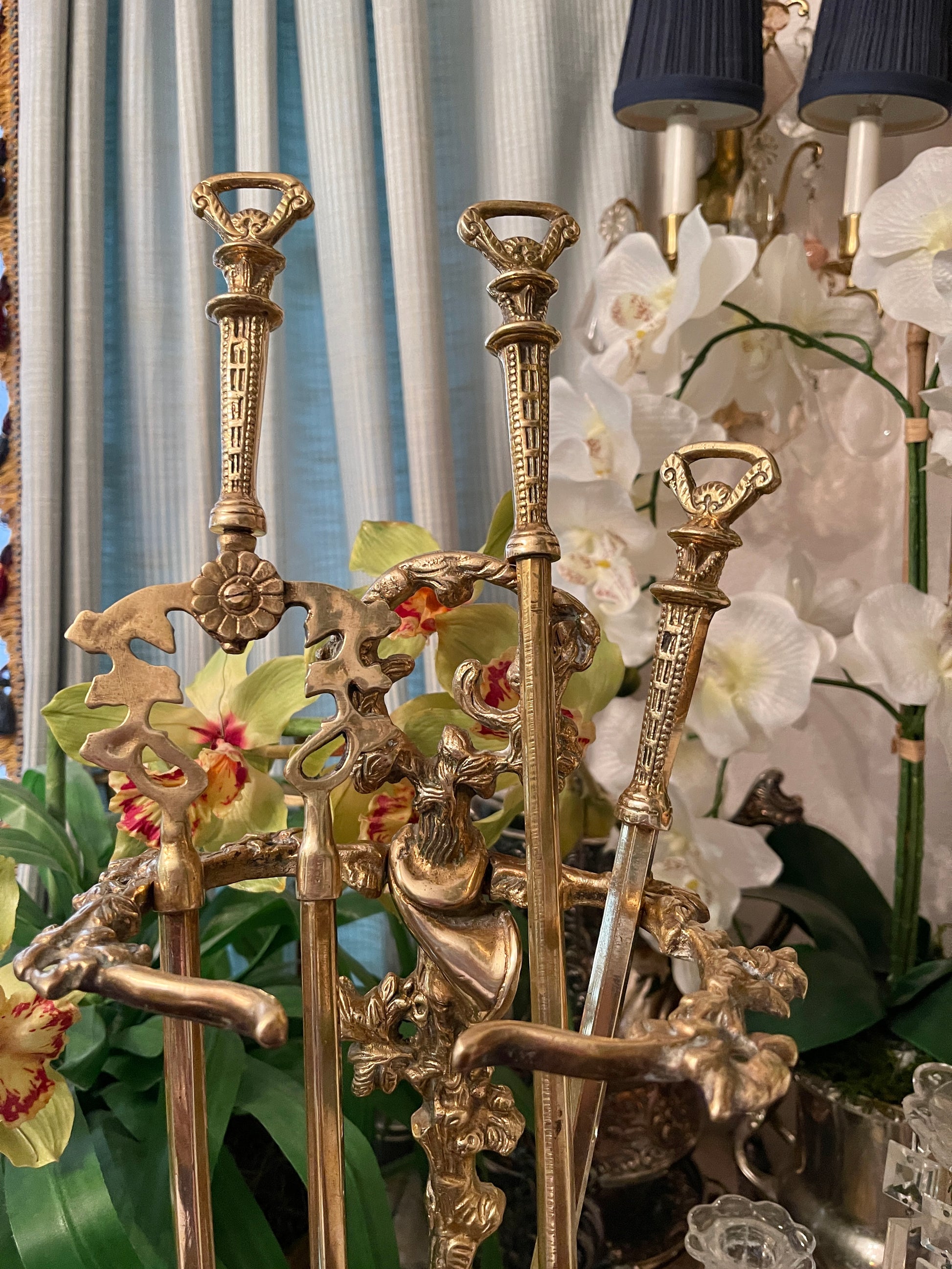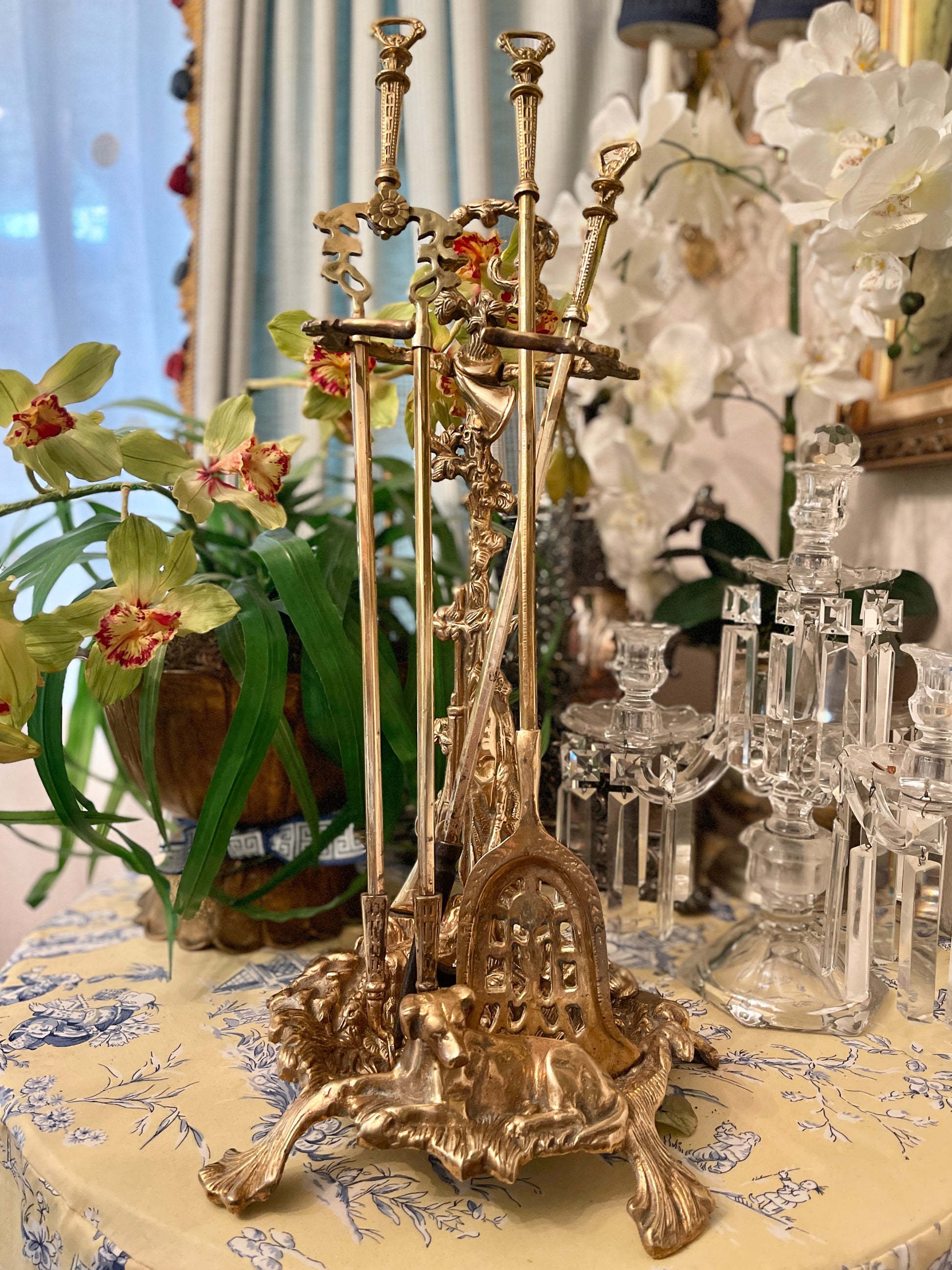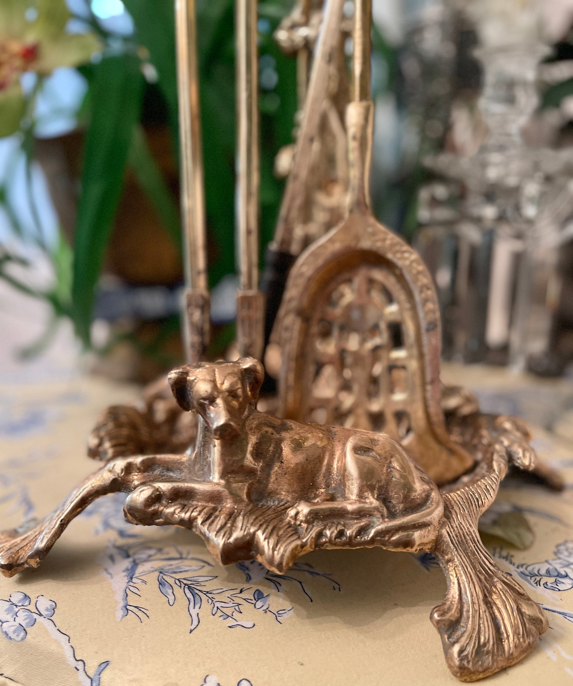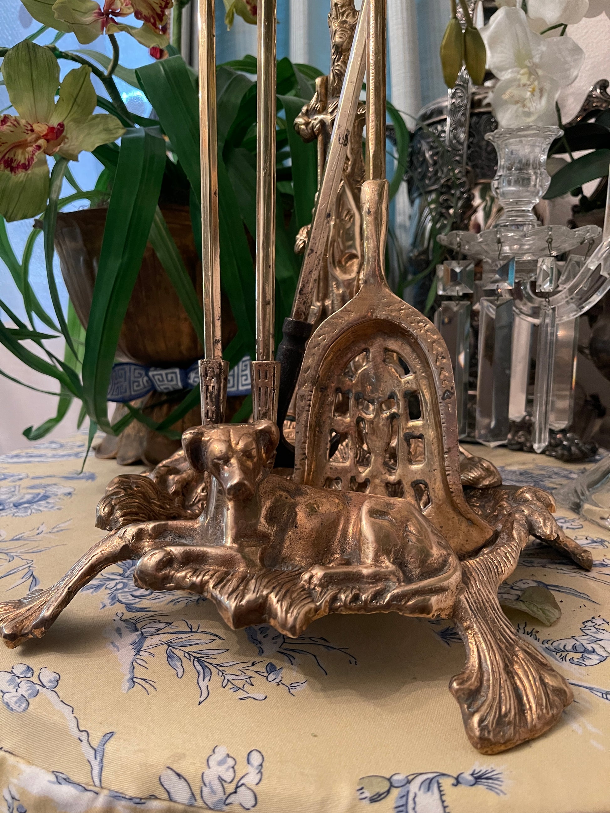 Art Nouveau Brass English Hunt Fireplace Tool Set, c. Early 20th Century