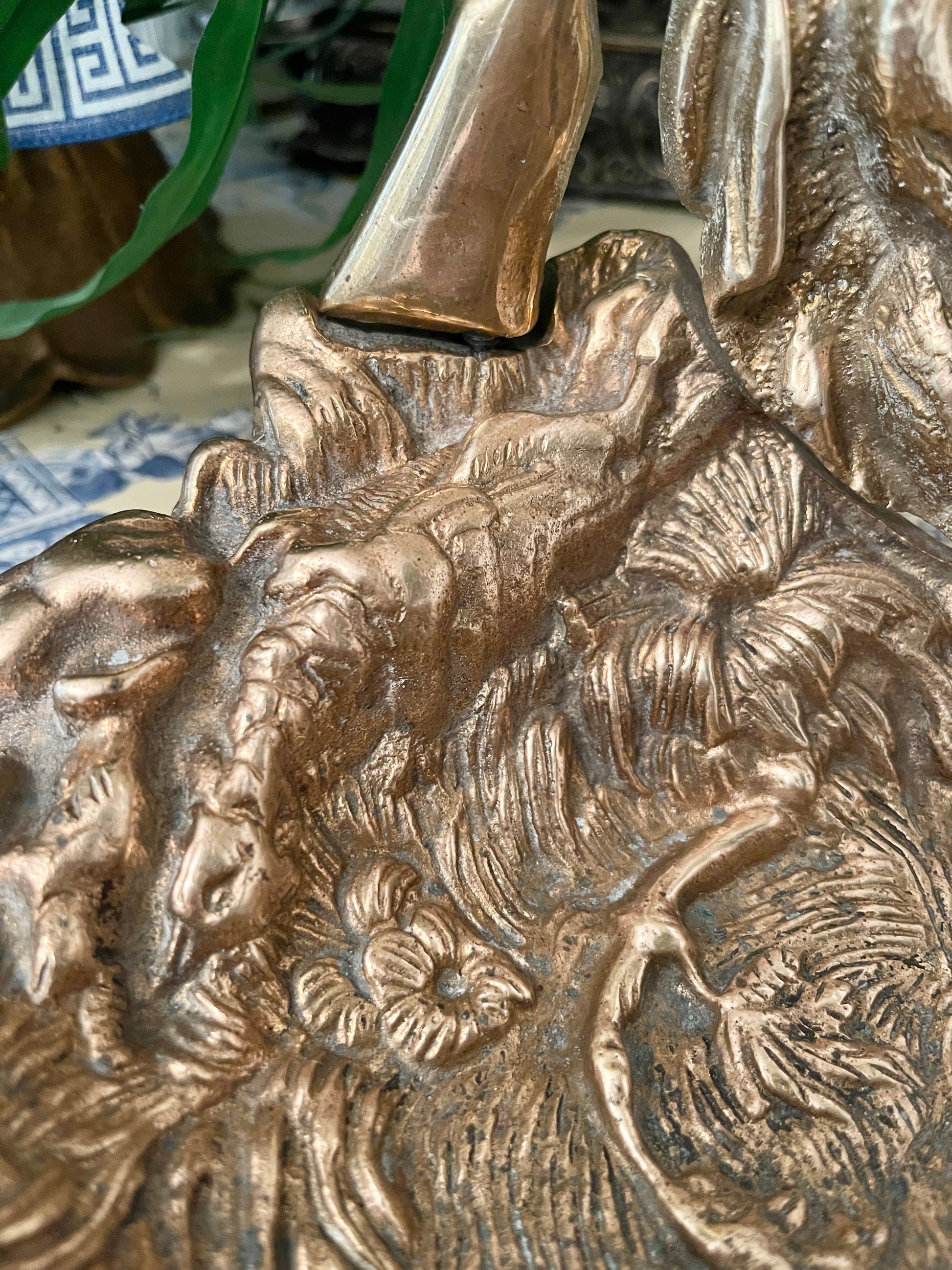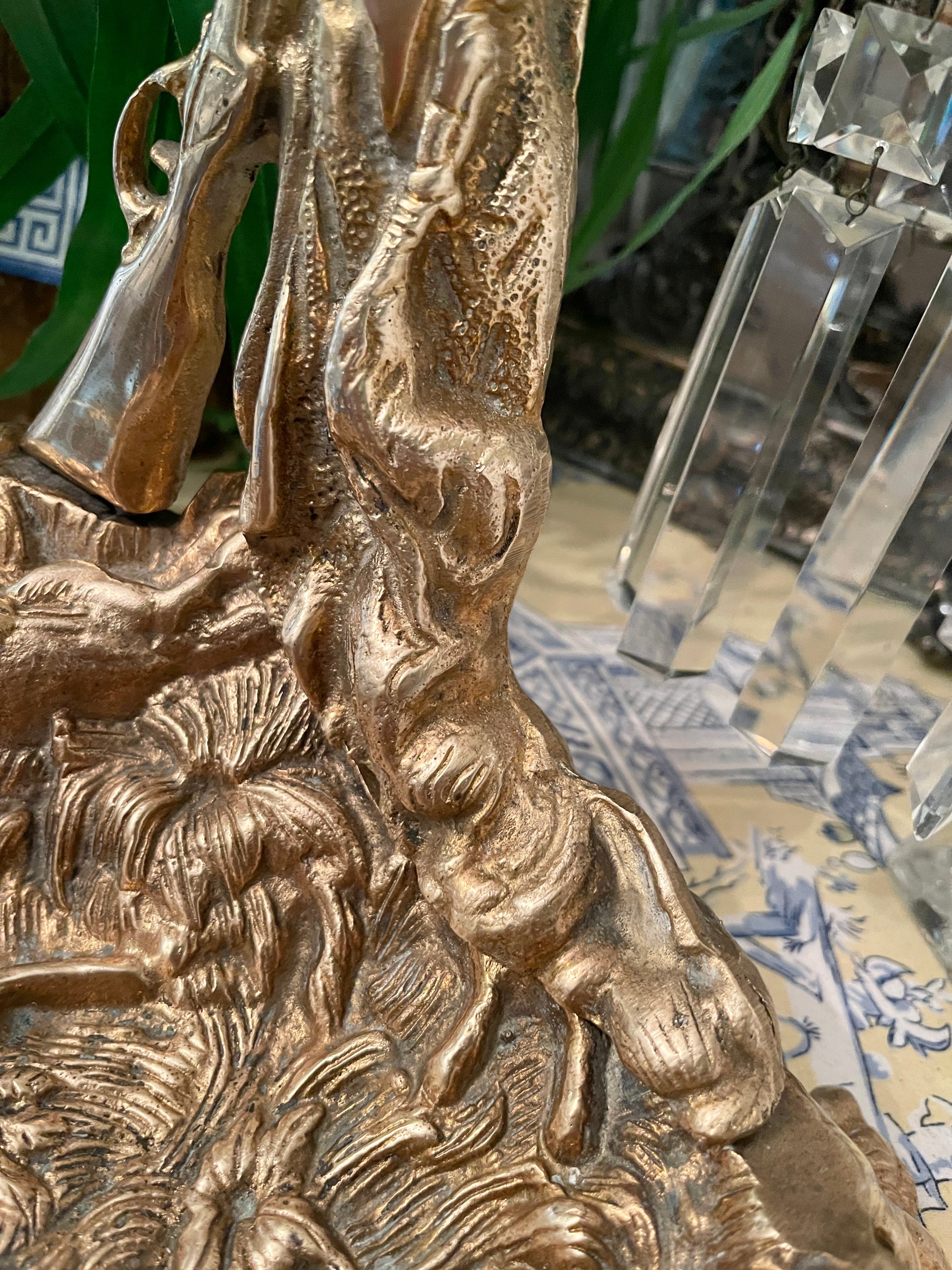 Fantastic Art Nouveau English Hunt Scene Brass Fireplace Tool Set.