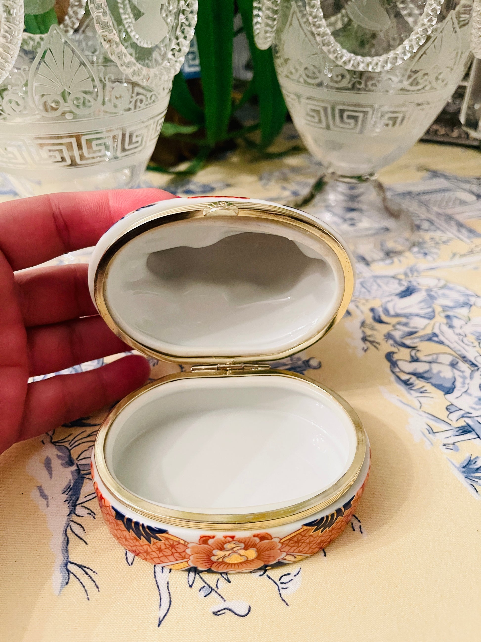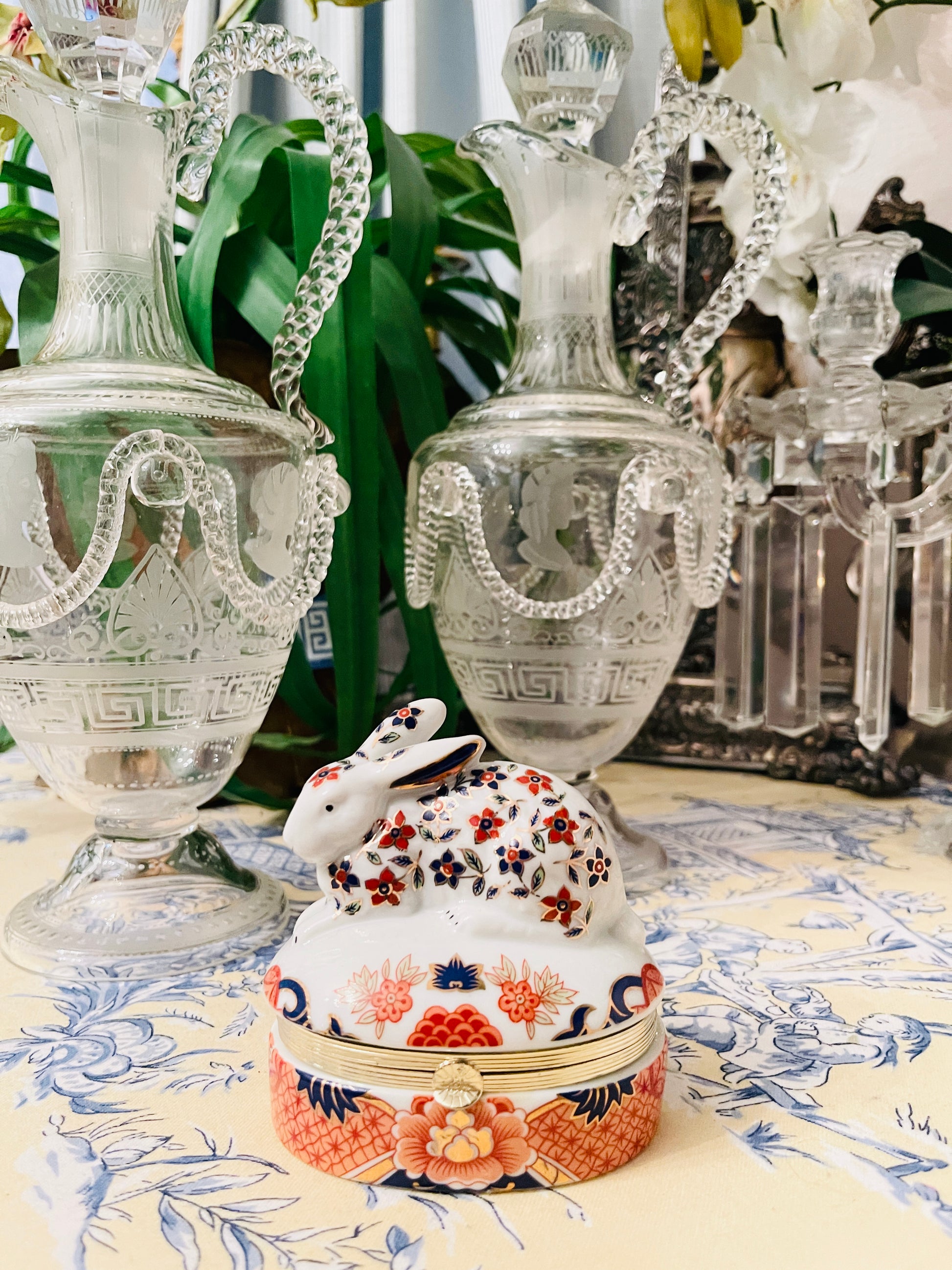 Imari Style Rabbit Porcelain Hinged Box, Vintage