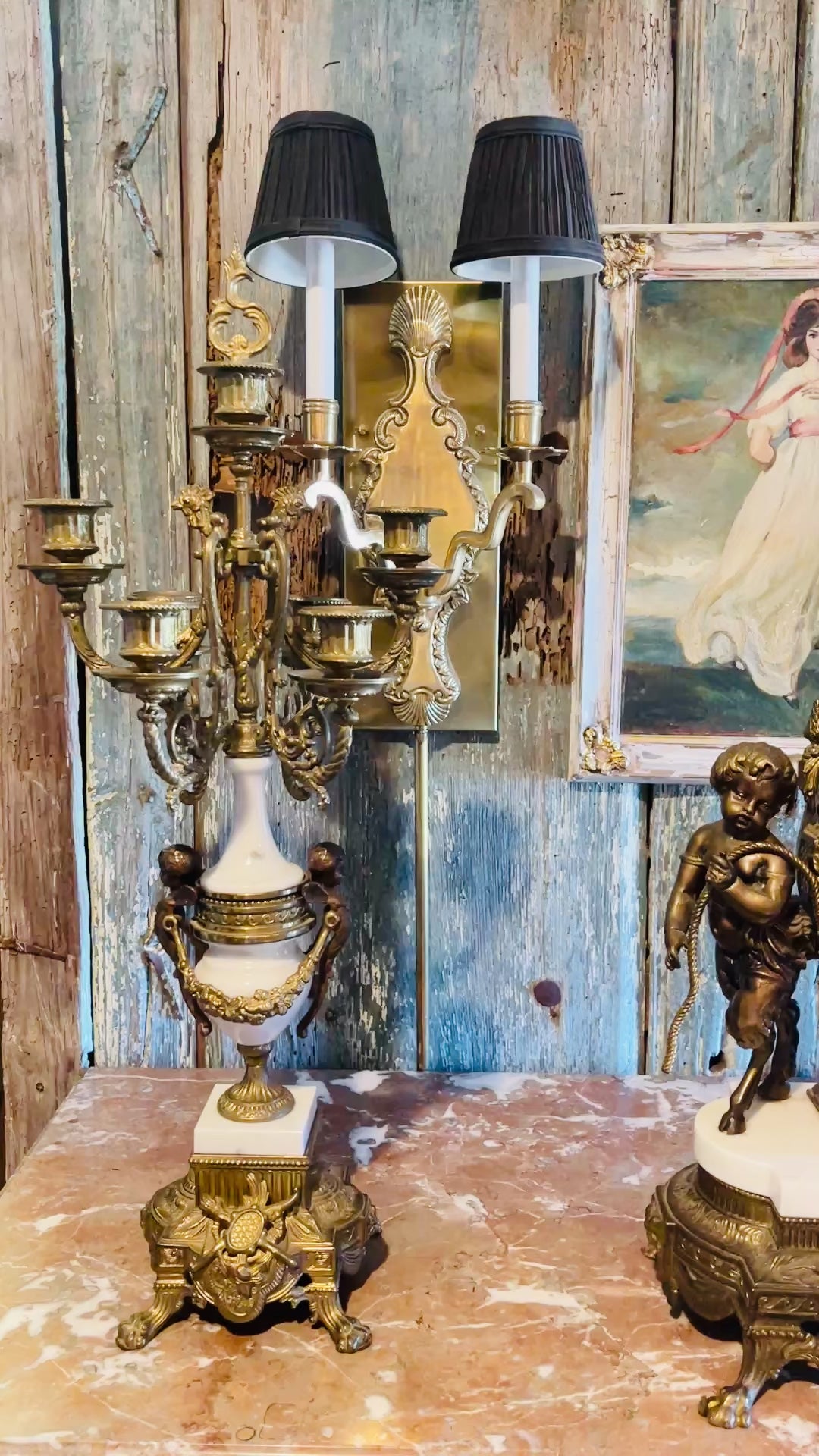 Completely FABULOUS is what came to mind the minute I saw this set… then it was, I wonder if I can get that clock down, lol. The opulence of this vintage Italian Neoclassical clock garniture set in beyond belief, a breathtaking three-piece ensemble of bronze, marble, and artistry that captures the heart of 19th-century grandeur. Each element—the central figural mantel clock flanked by twin five-light candelabra—embodies the refinement and theatrical flourish of Europe’s Gilded Age.