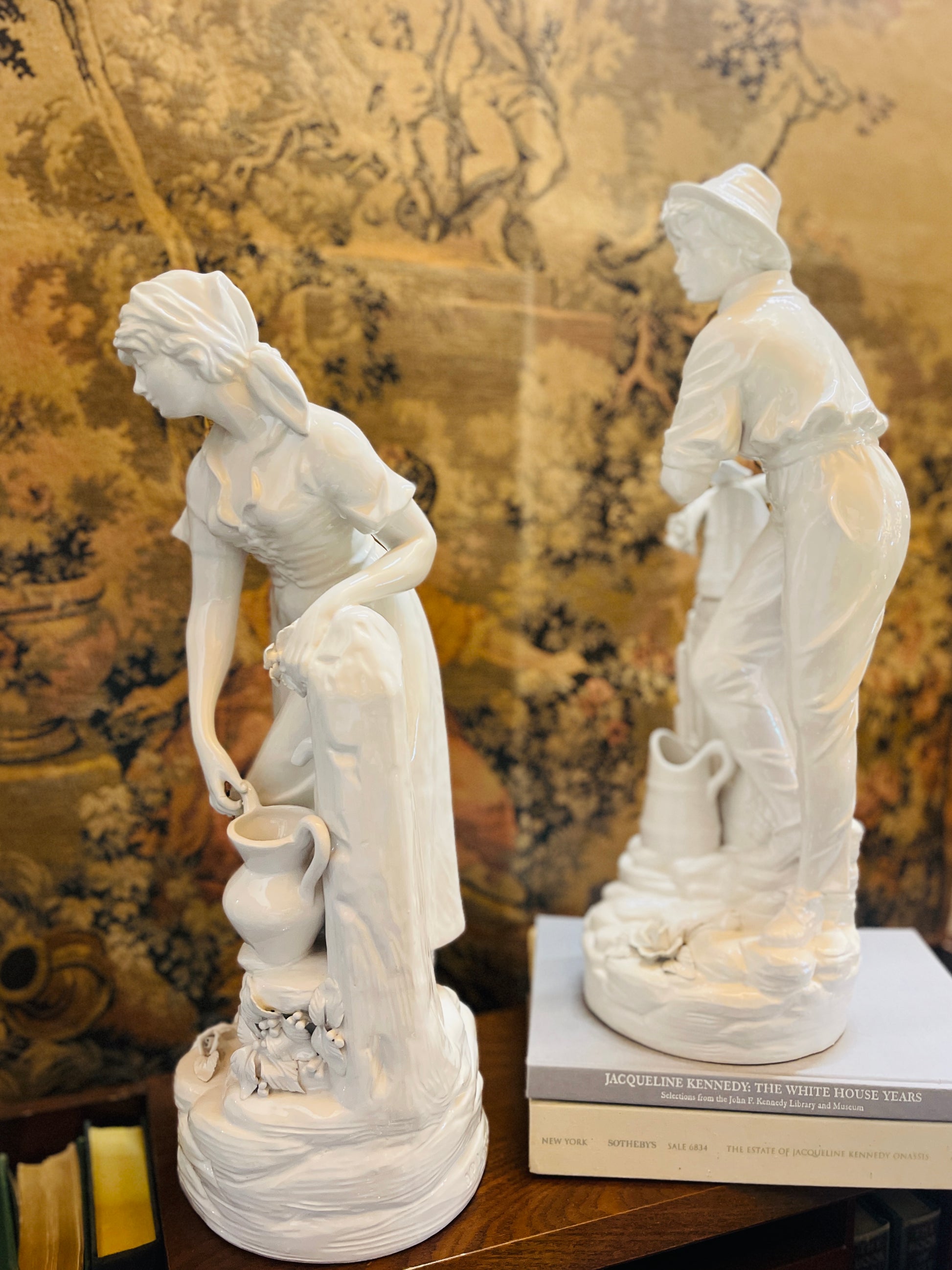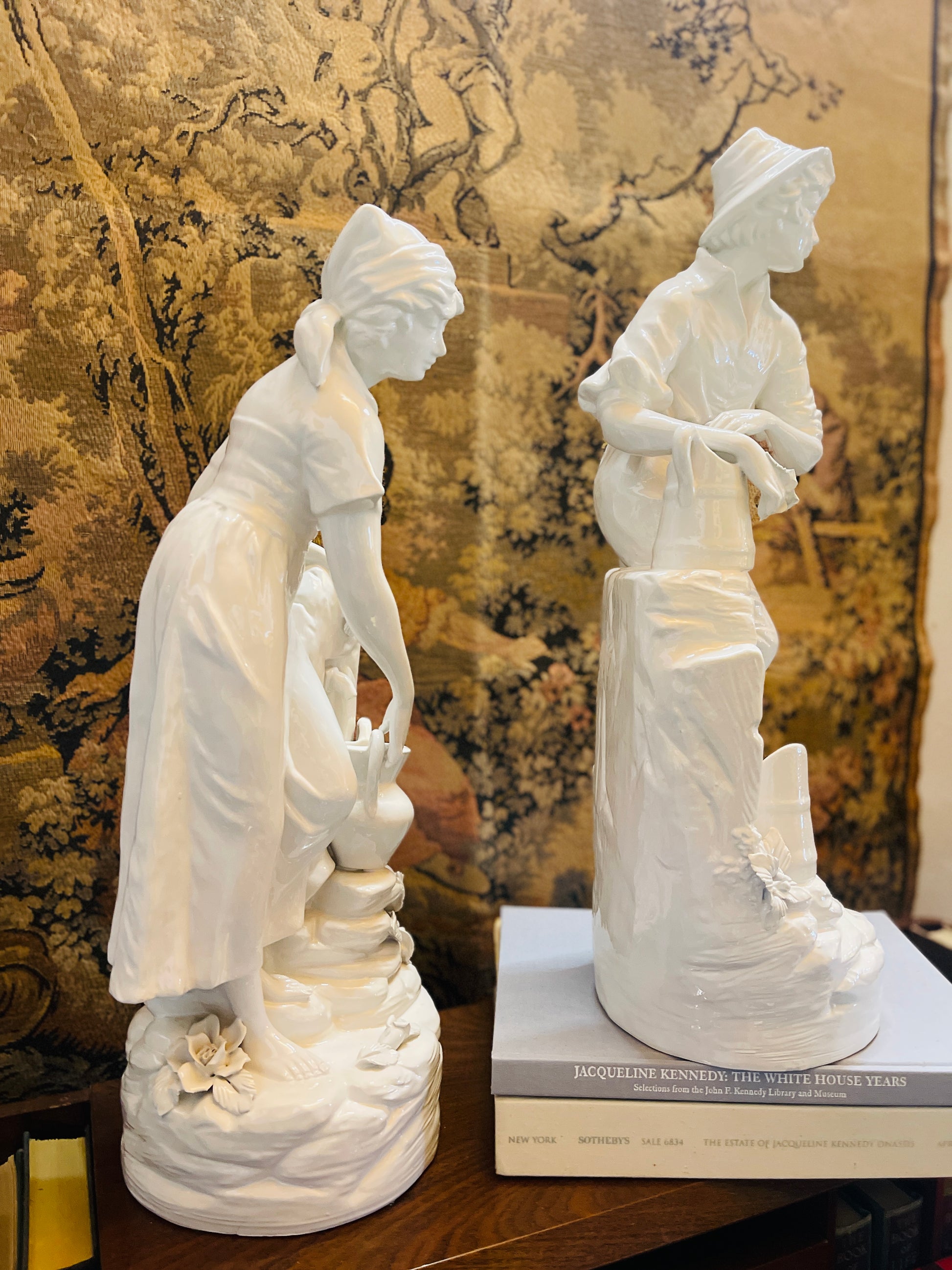 Elegant White Glazed Figurines, Mid -20th Century Pastoral Scene