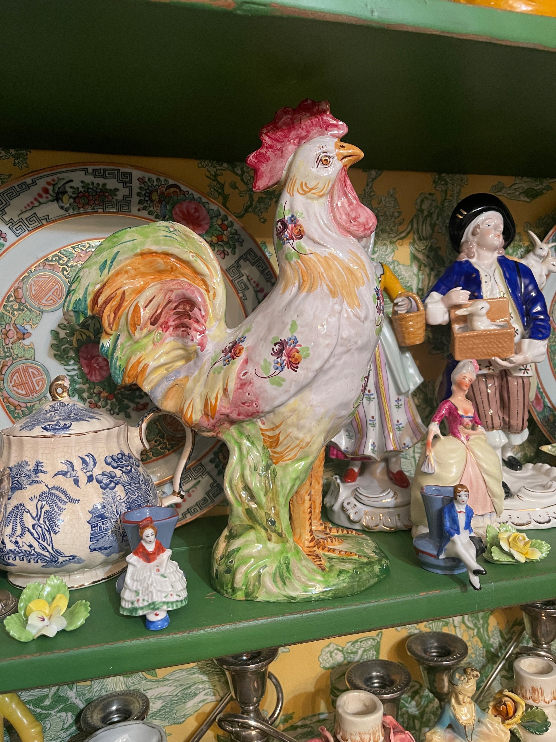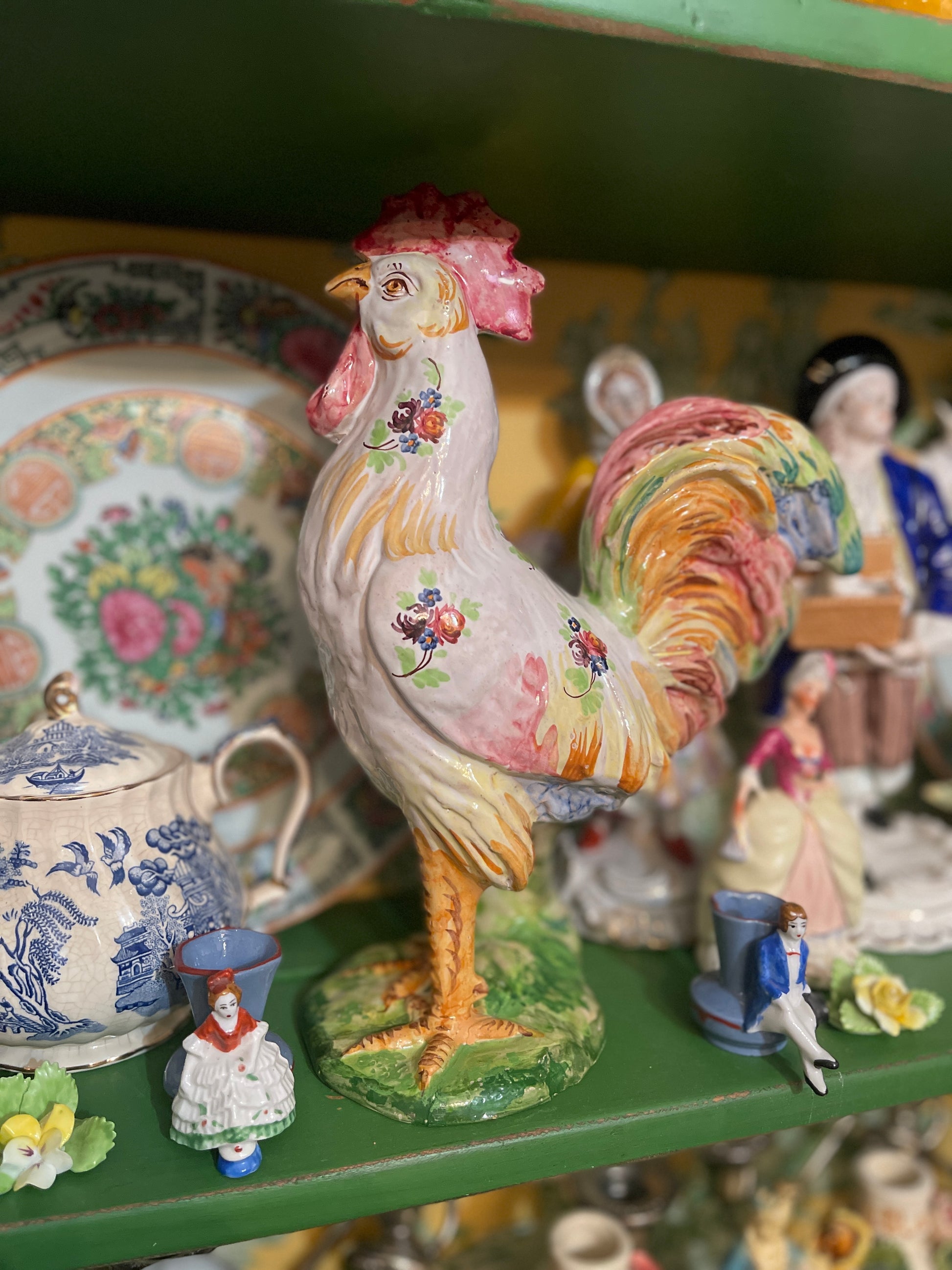Vibrantly hand painted colorful florals decorate this fantastic Italian pottery rooster. It's so beautifully detailed, I feel like the pictures say it all…