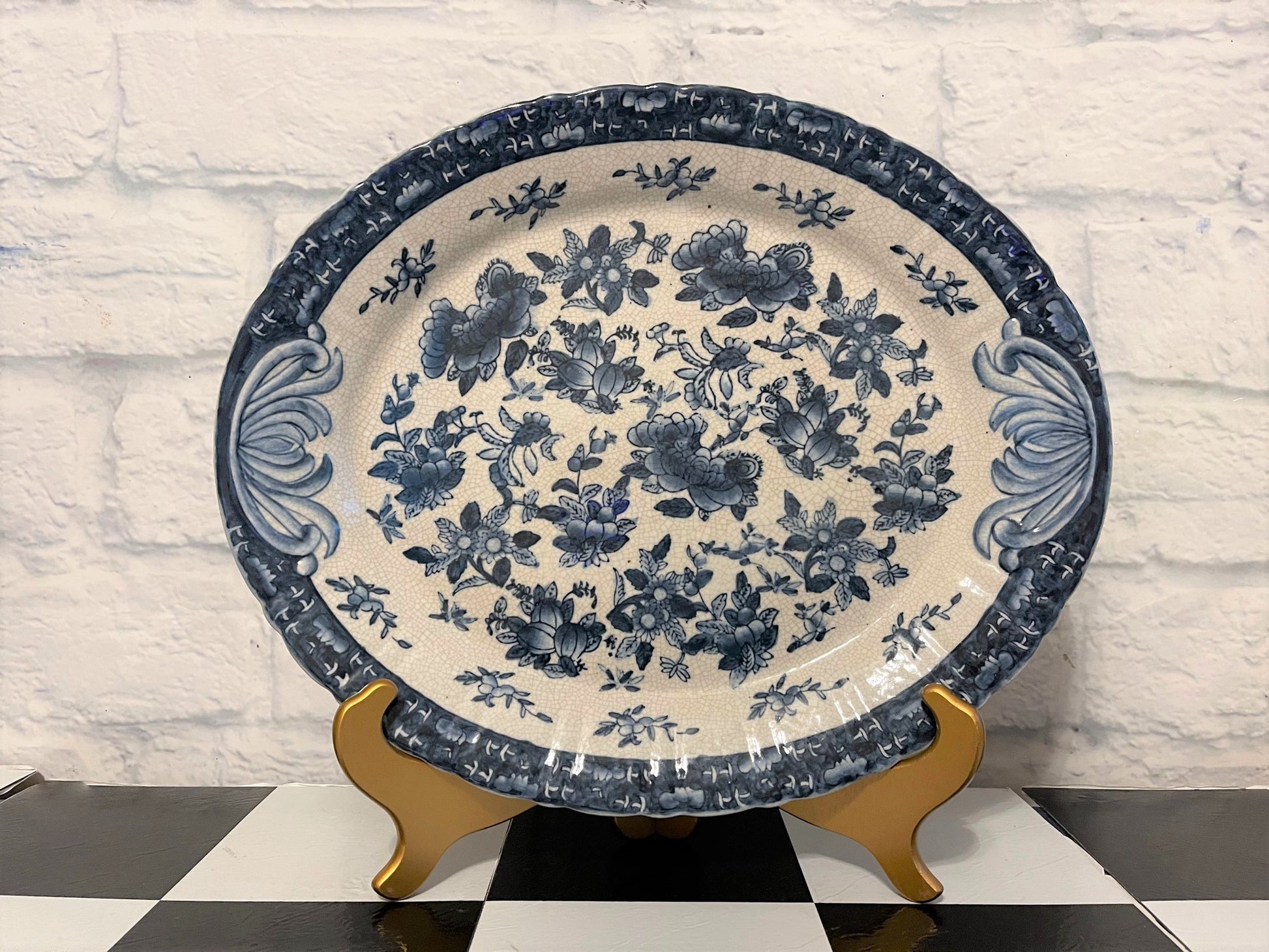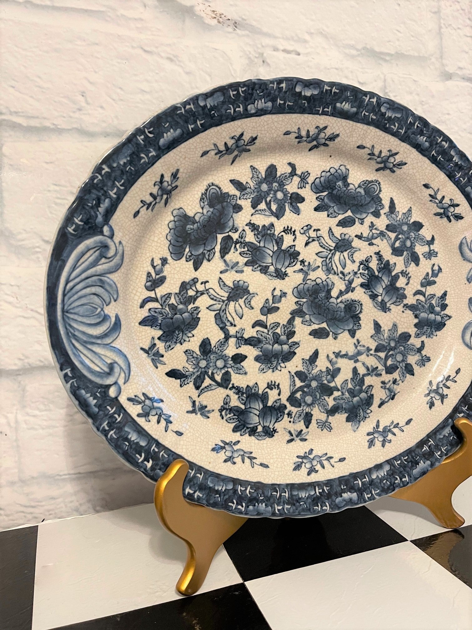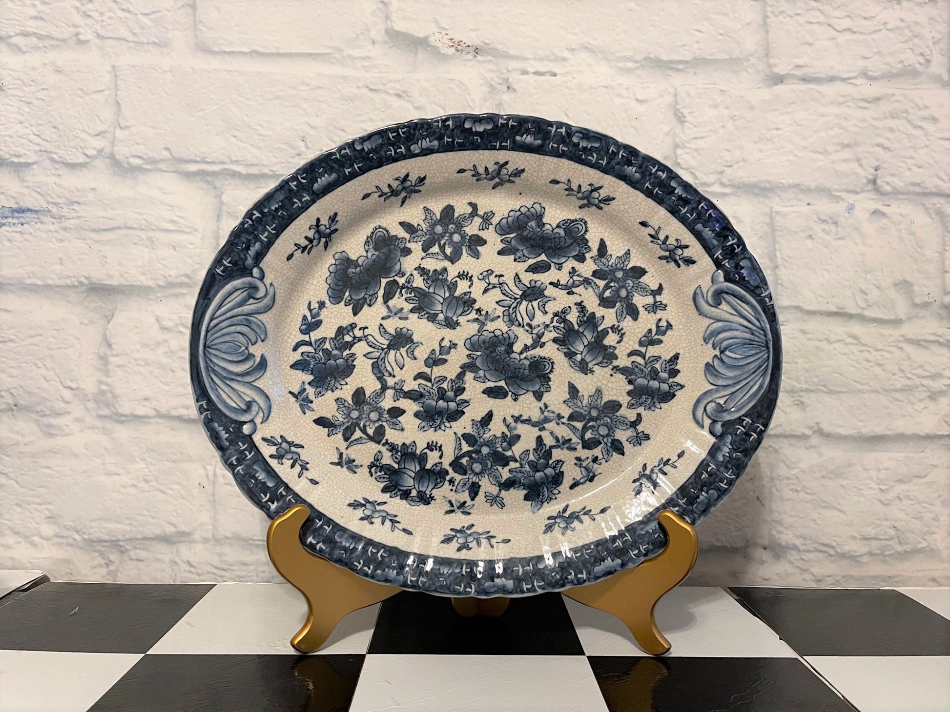 LARGE Vintage Bombay Co. Platter, Blue and White, Crackely Aged Finish