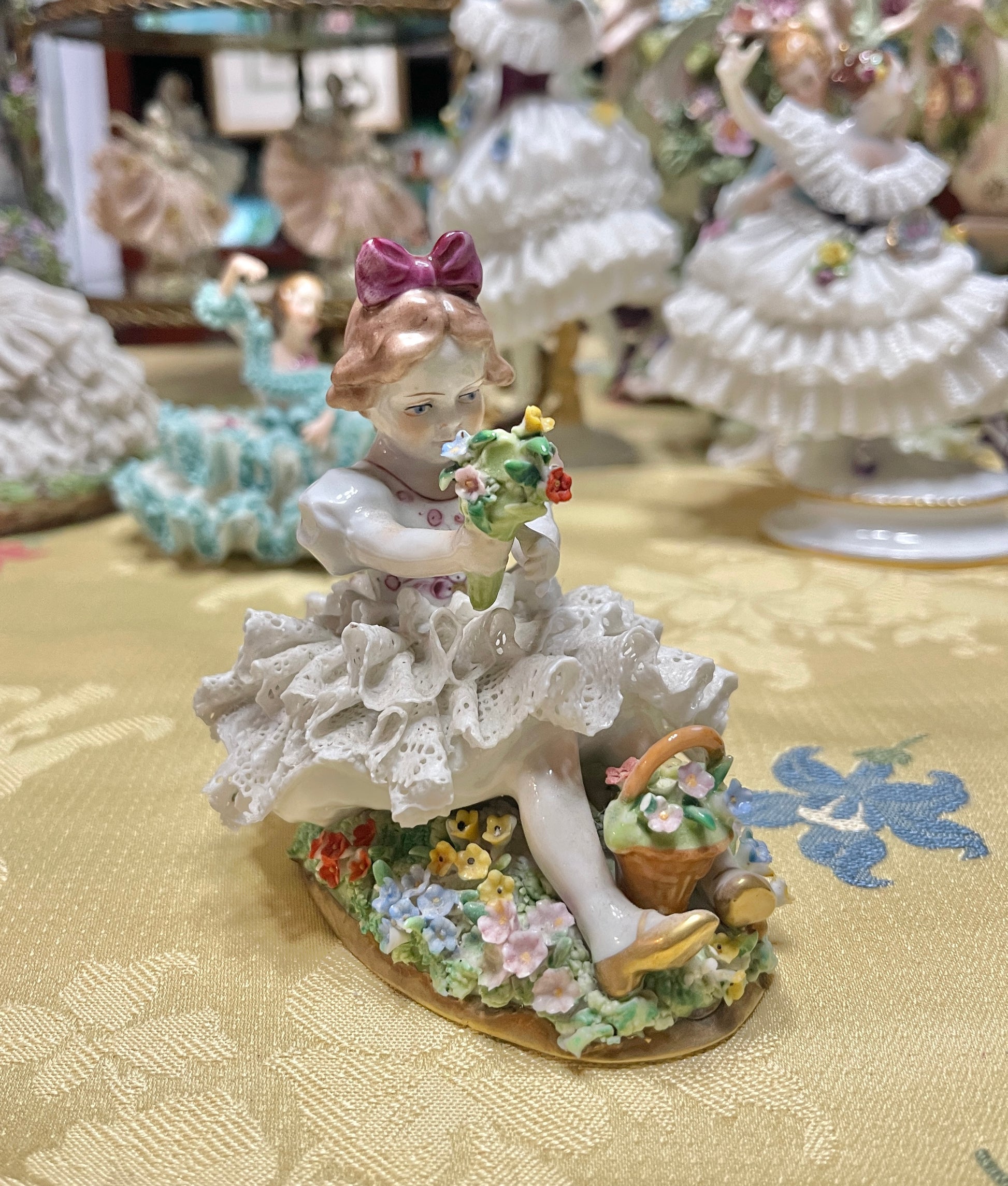 - Style: Dresden-style lace figurine