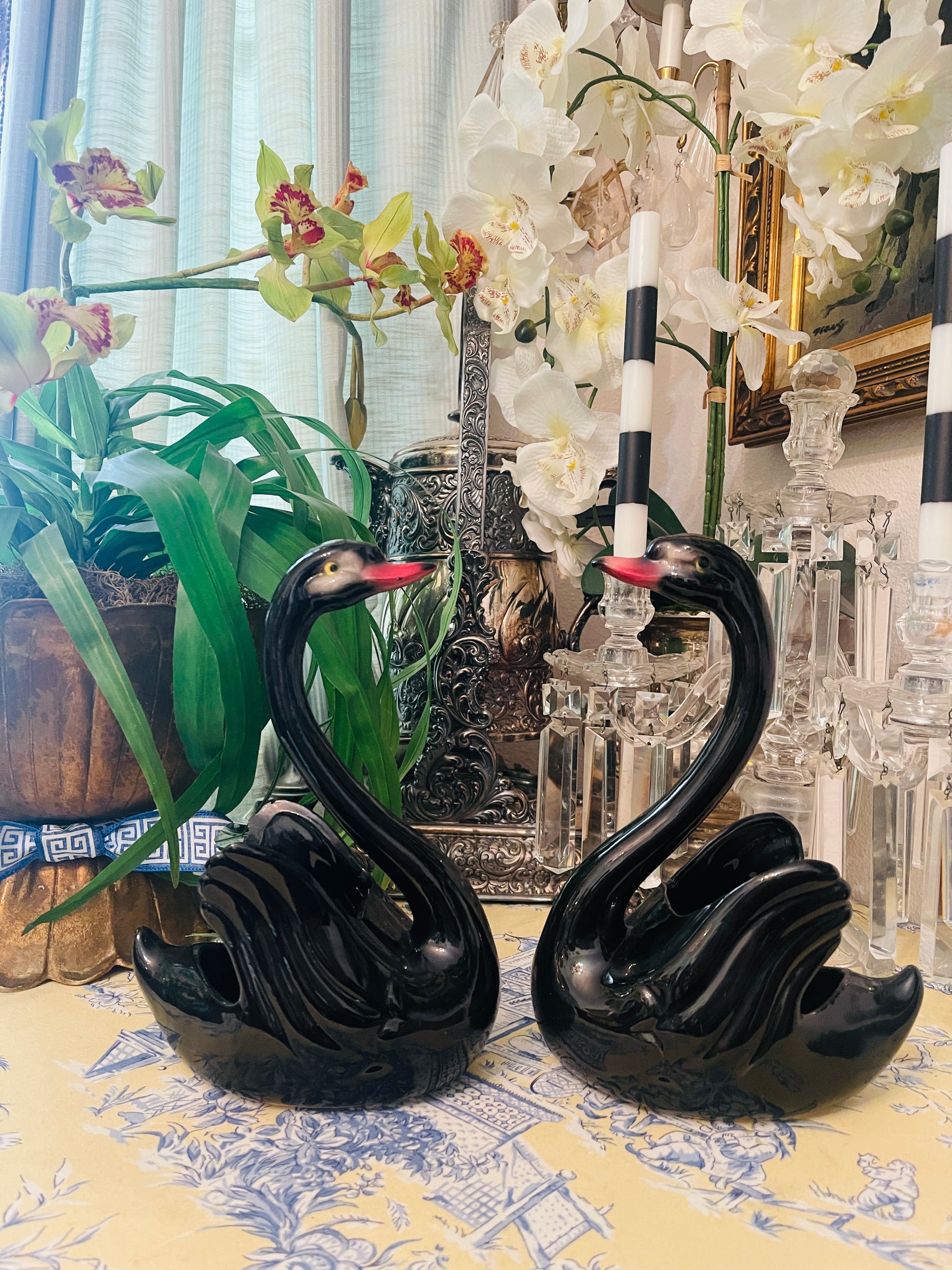 Black Swan Cache Pot Planter Pair, Mid 20th Century, Maddox Pottery
