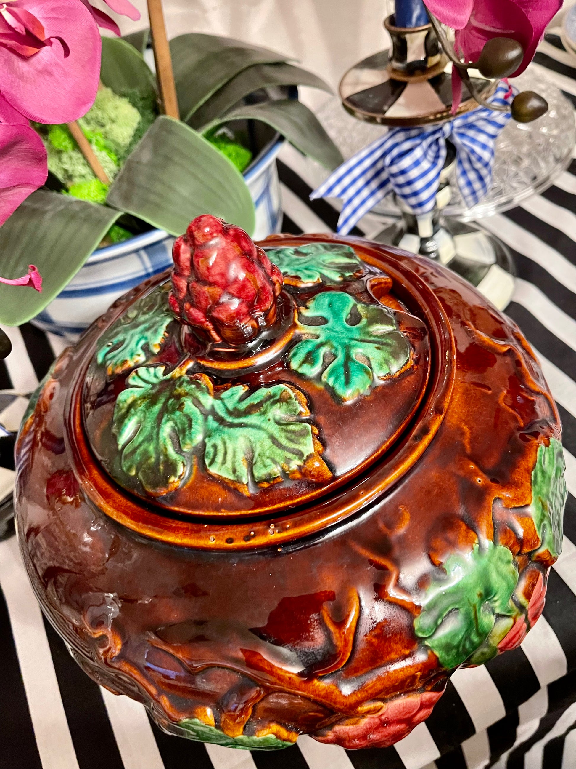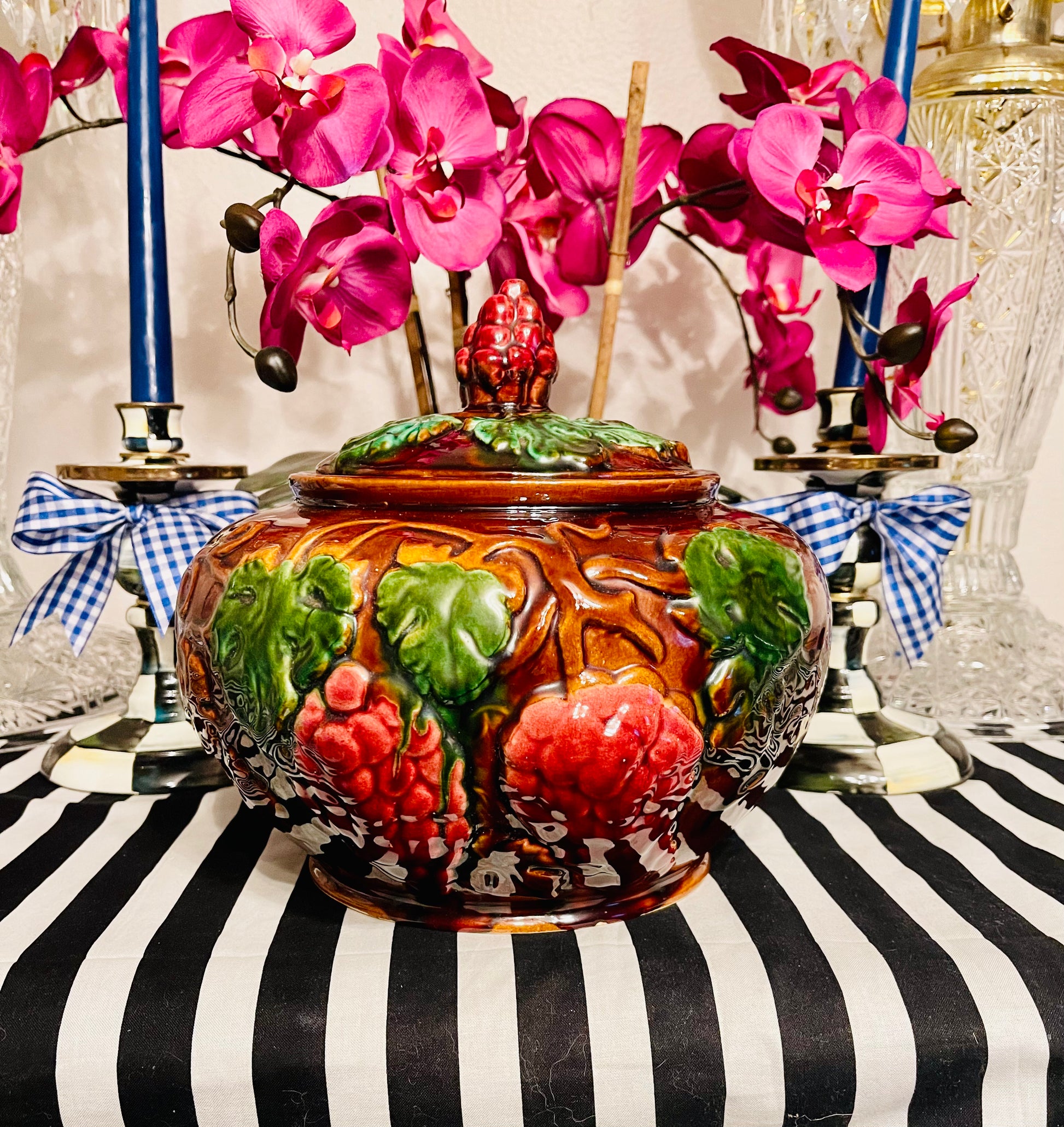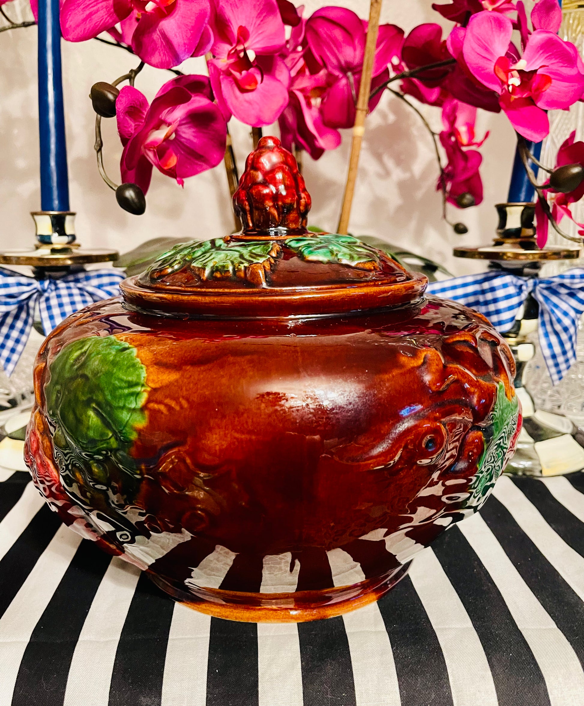 Berry and Vine Majolica Tureen, Large Majolica Tureen