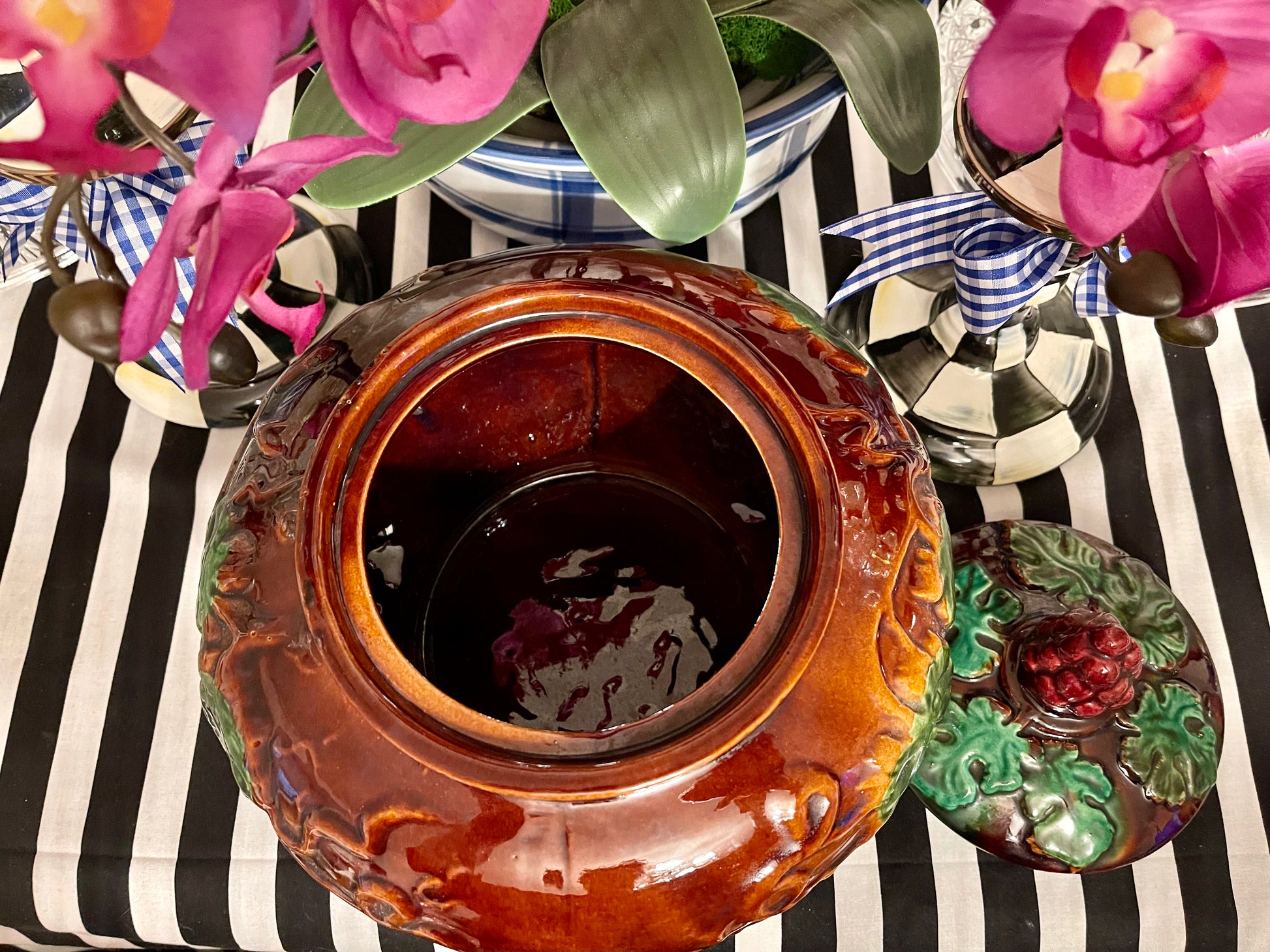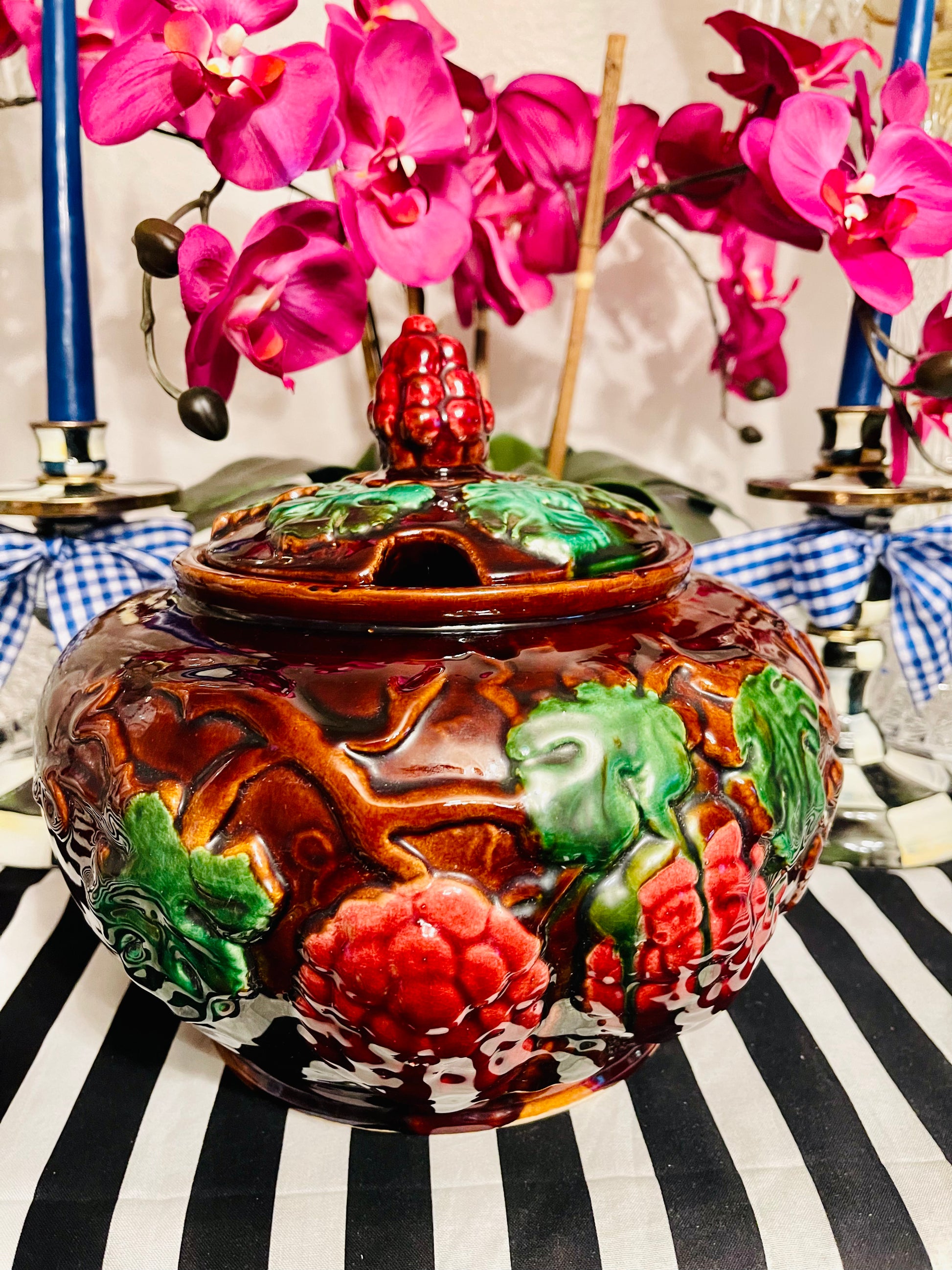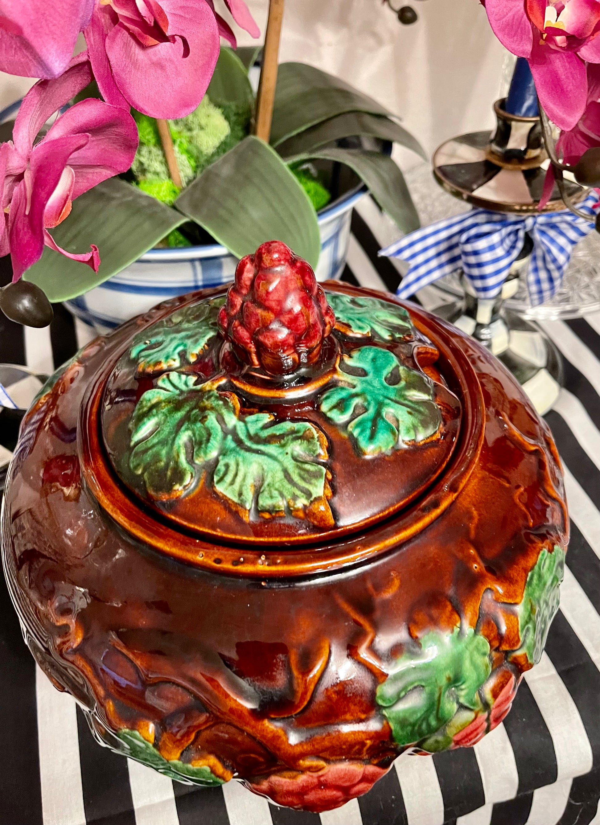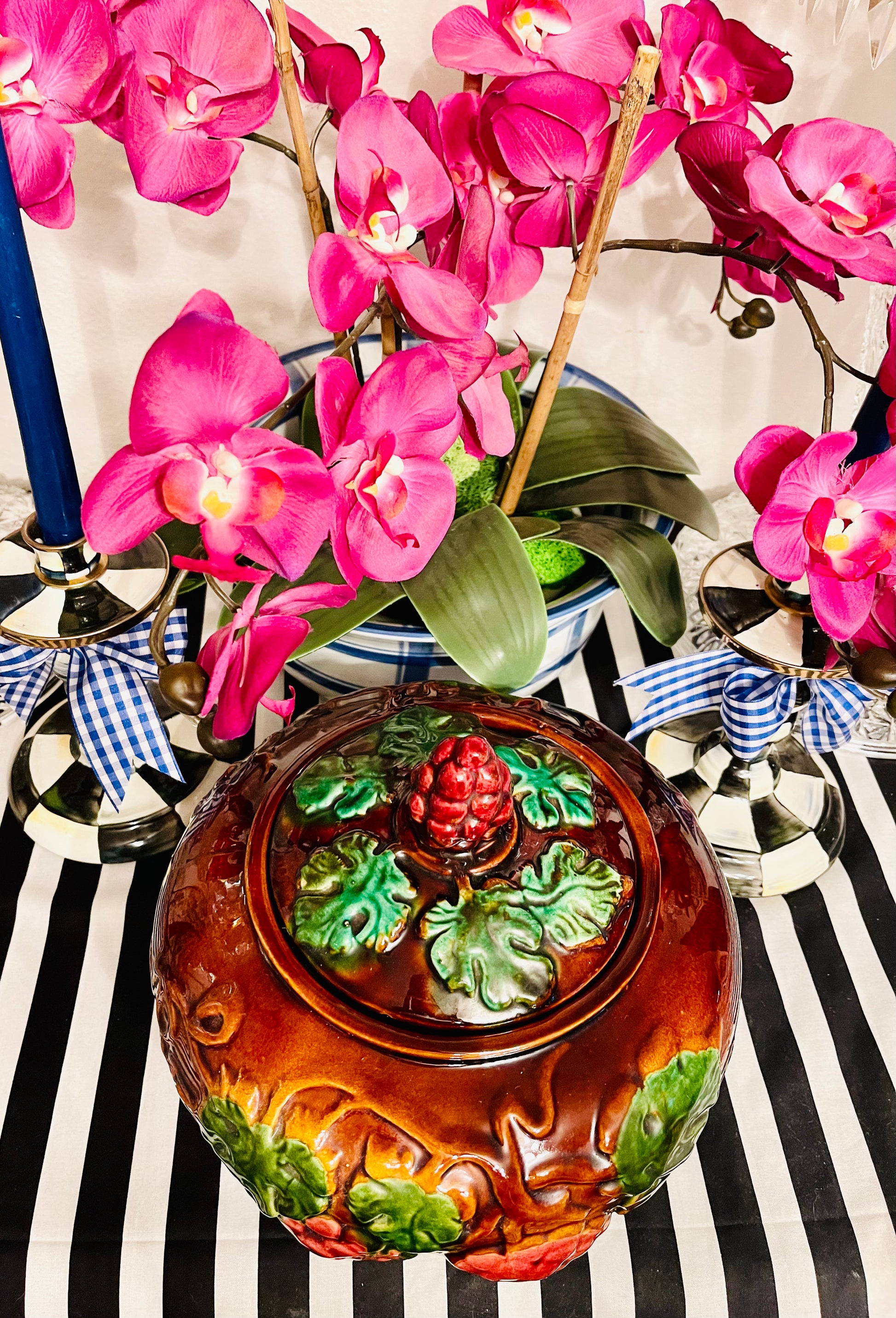Berry and Vine Majolica Tureen, Large Majolica Tureen