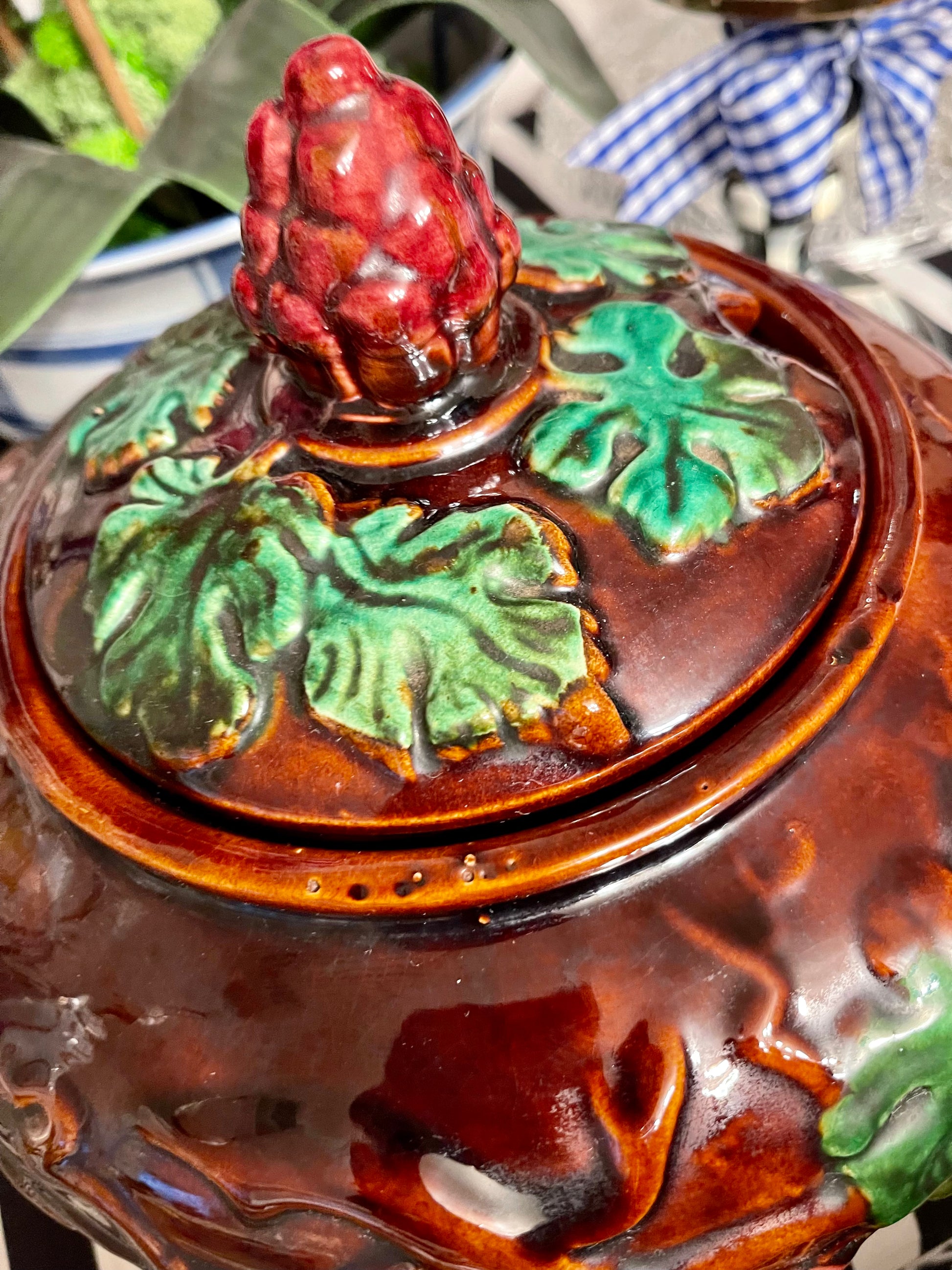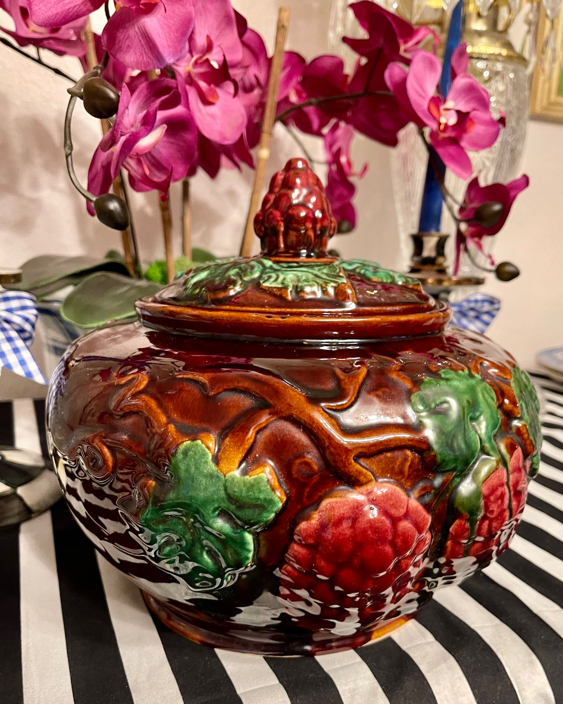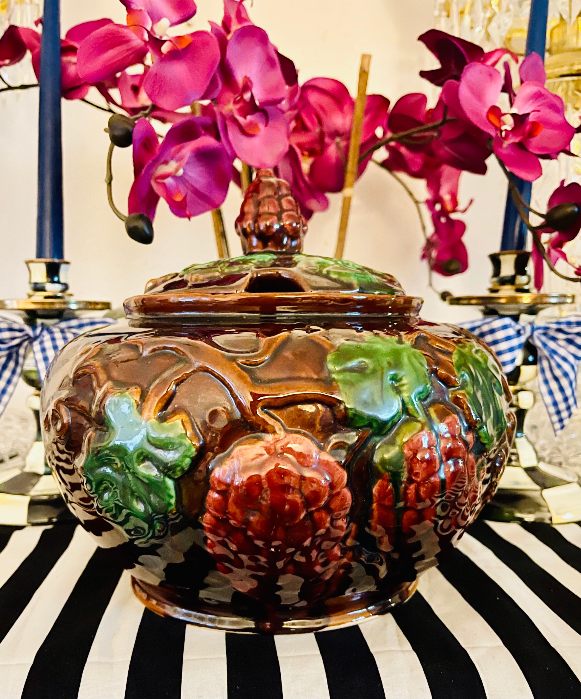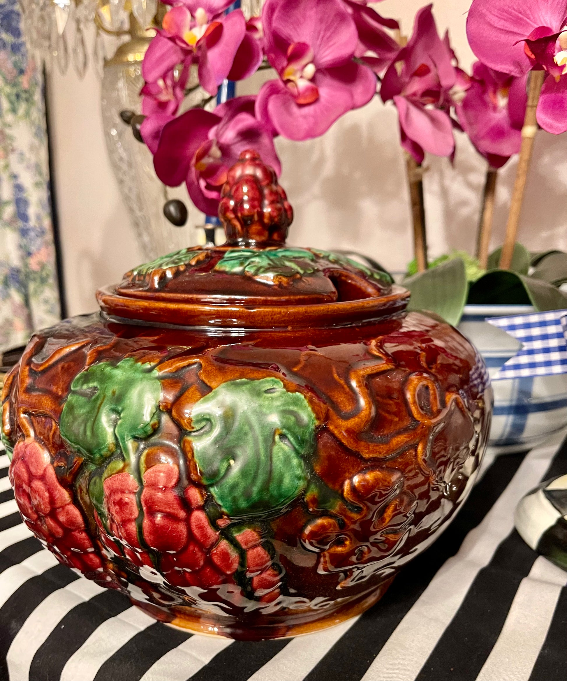This vintage majolica tureen is simply stunning! I found it on my last trip to Memphis and just adore it.