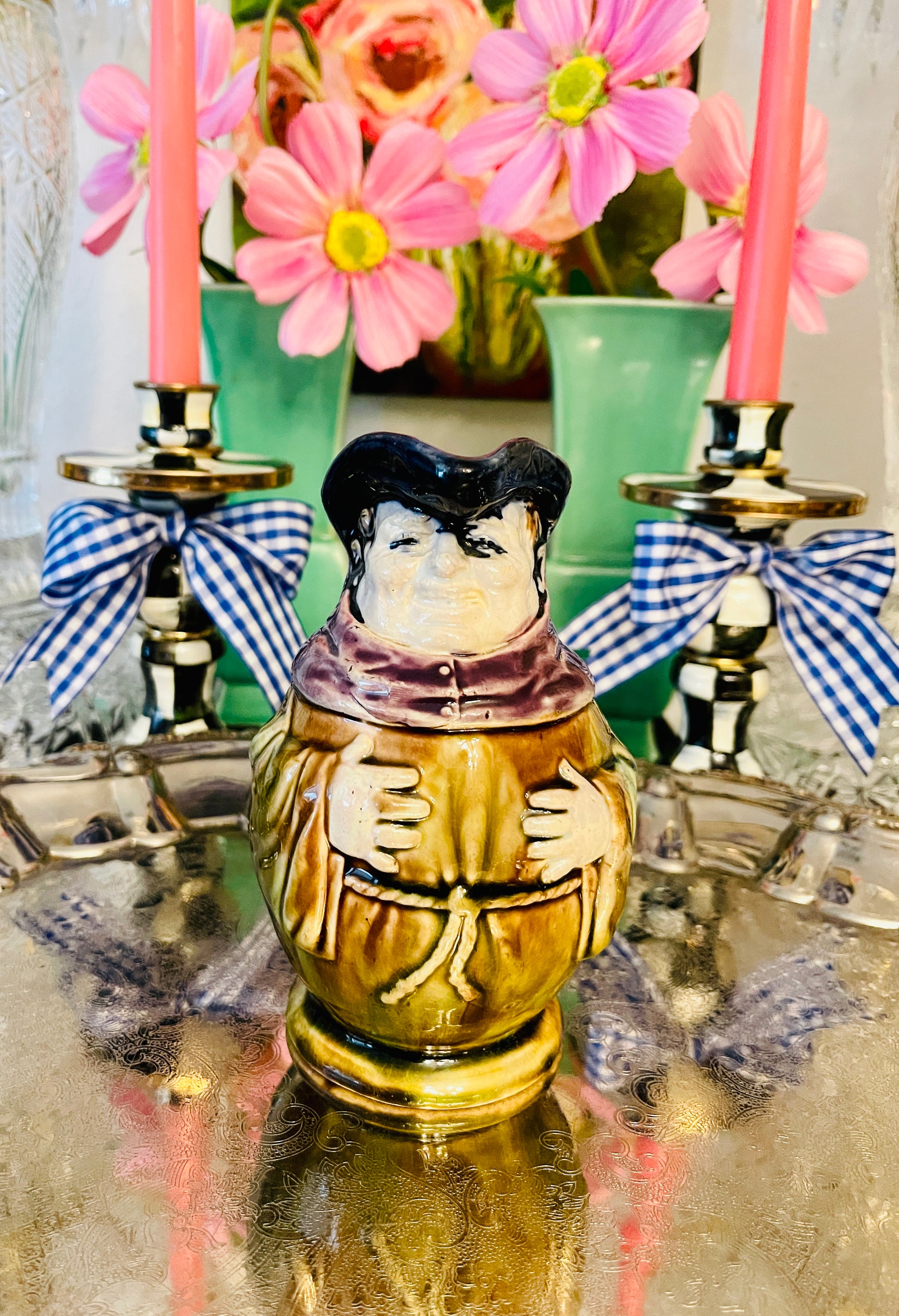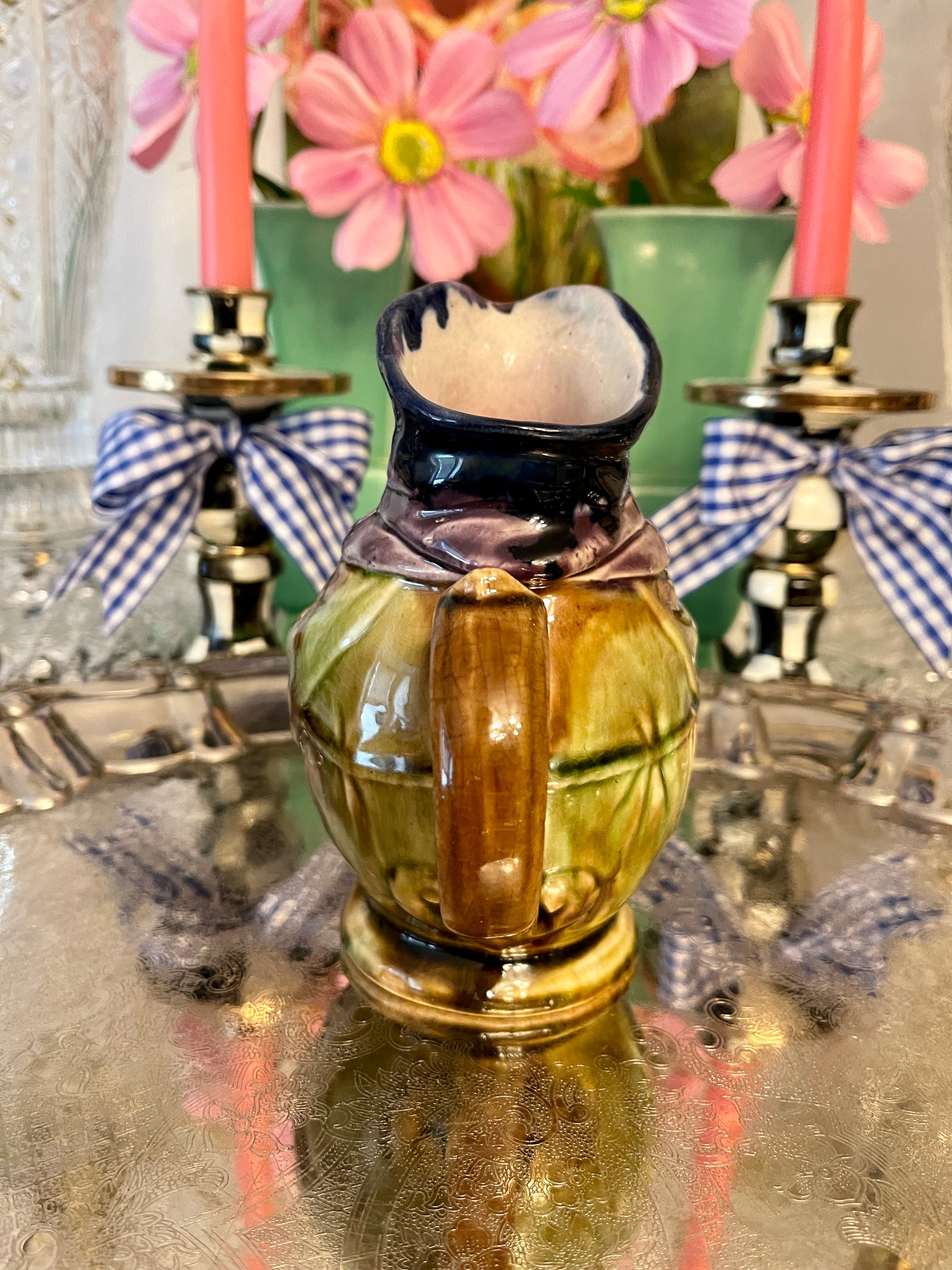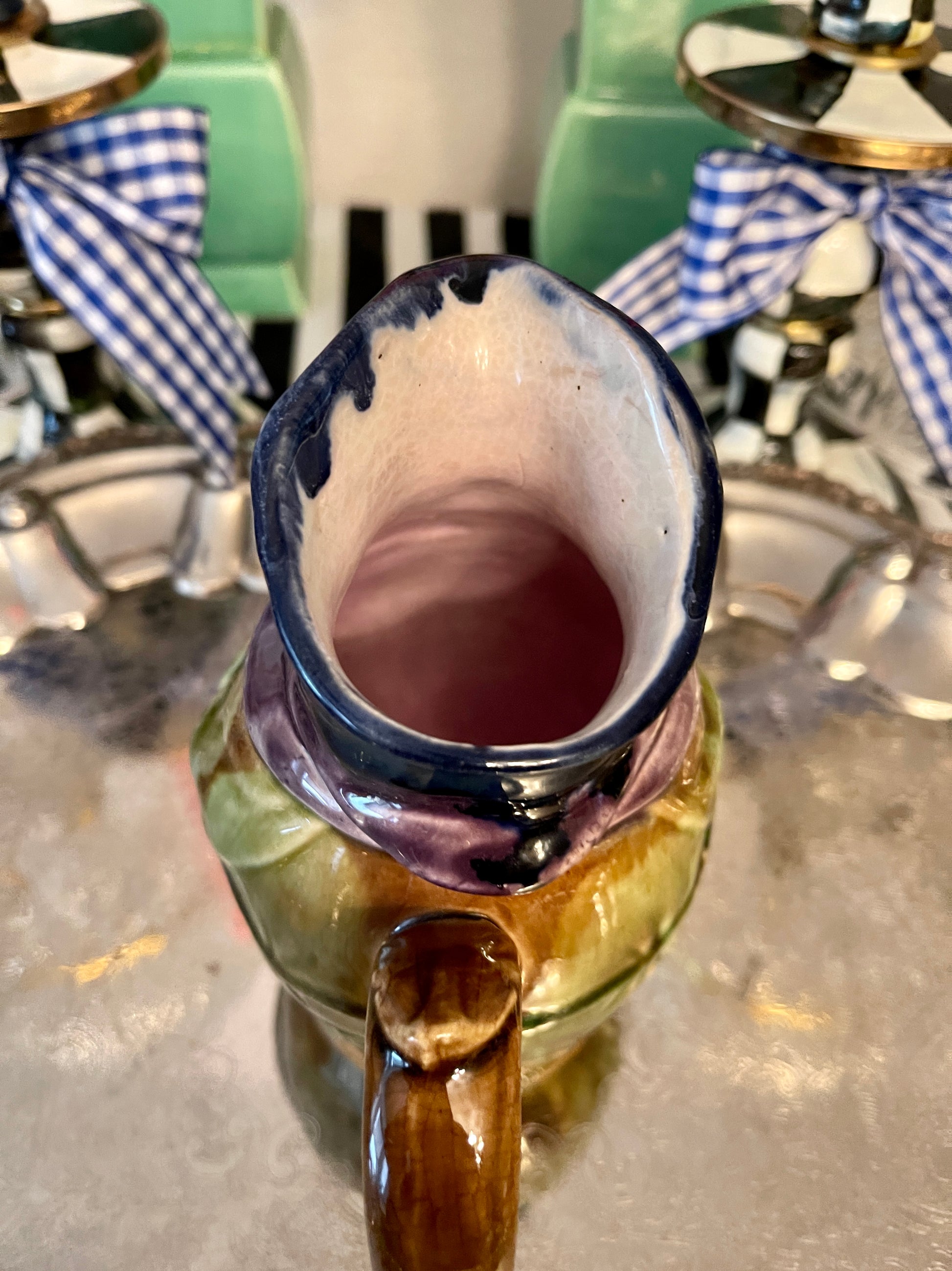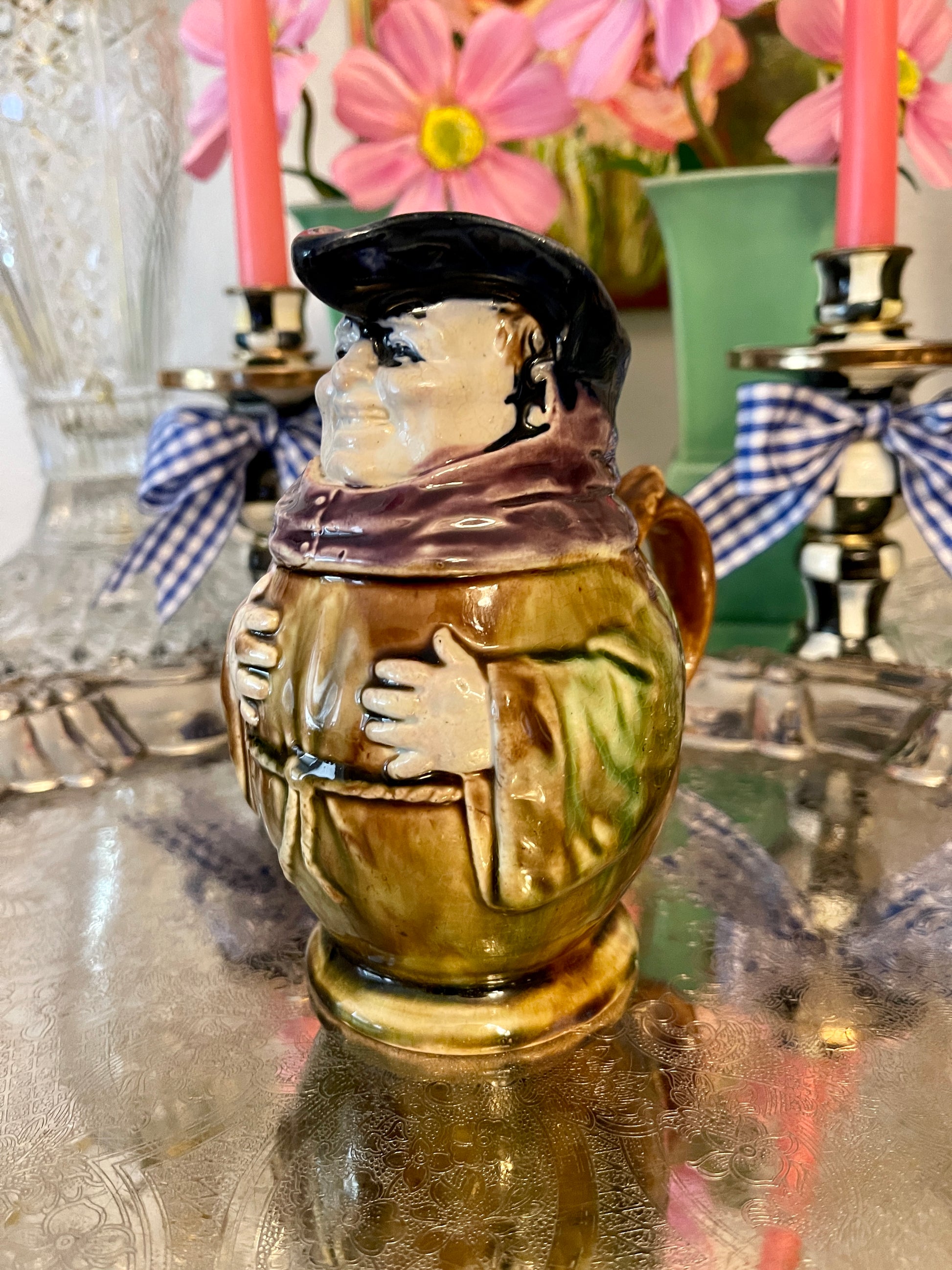 Antique Majolica Monk Pitcher with fantastic color and detail. I love how the color has ‘flowed’…