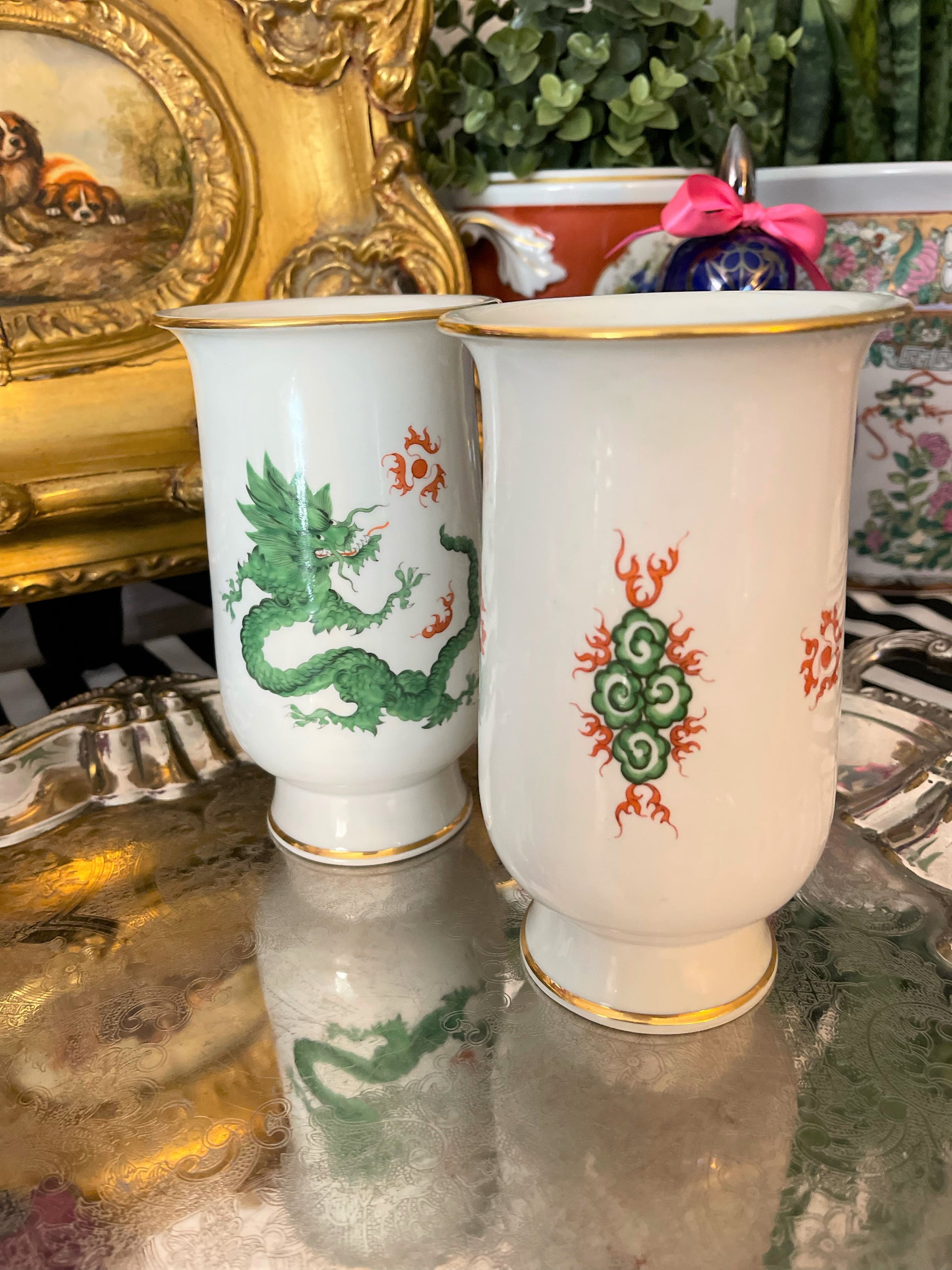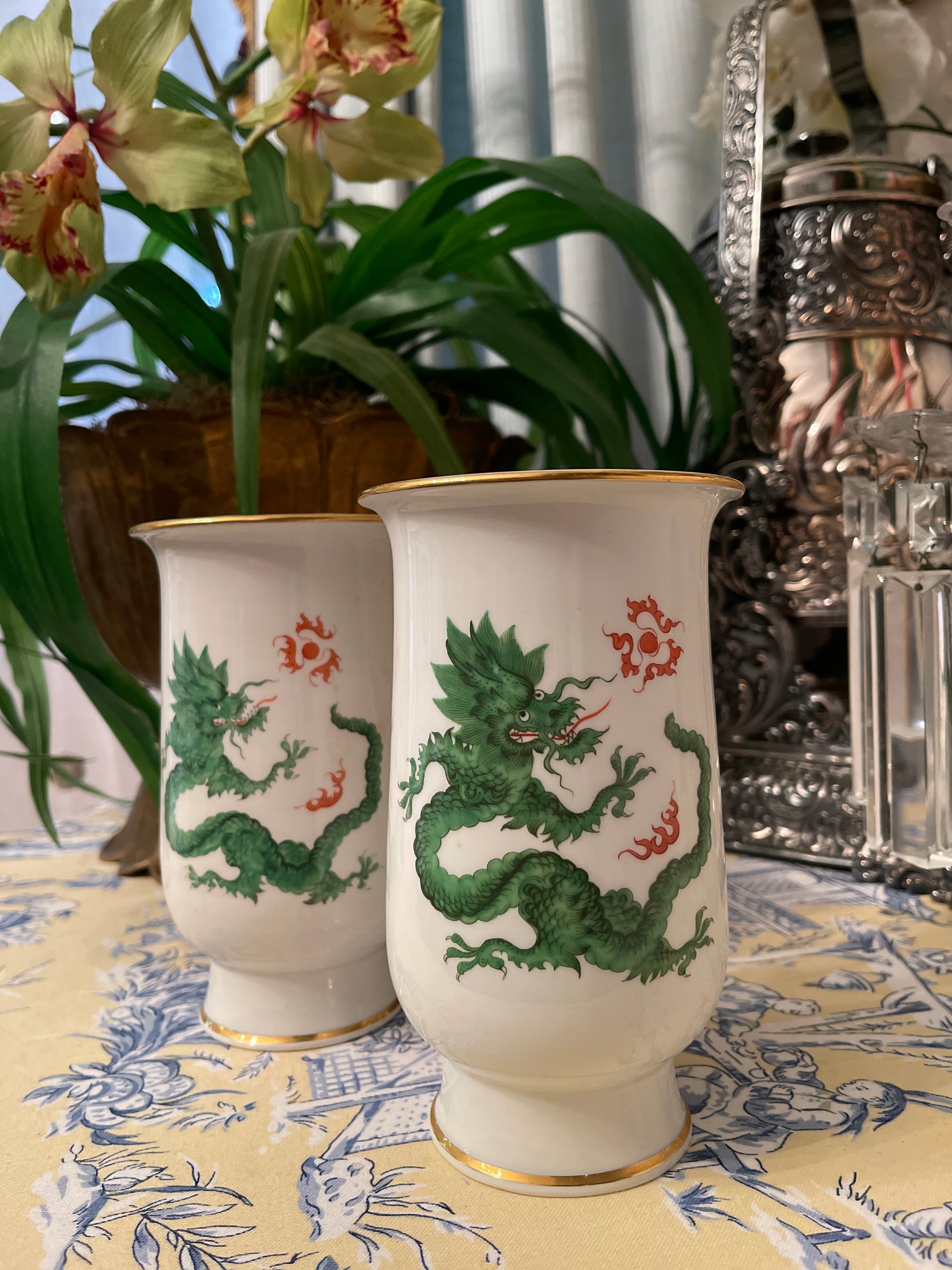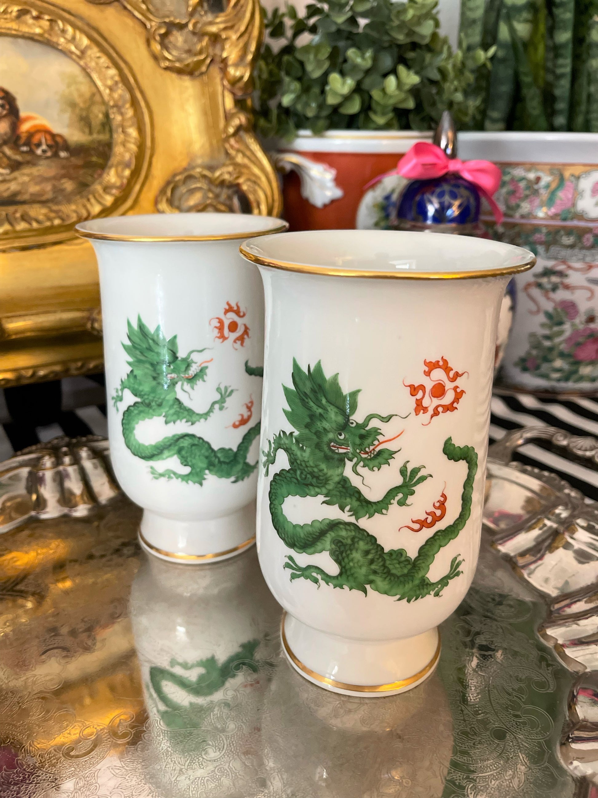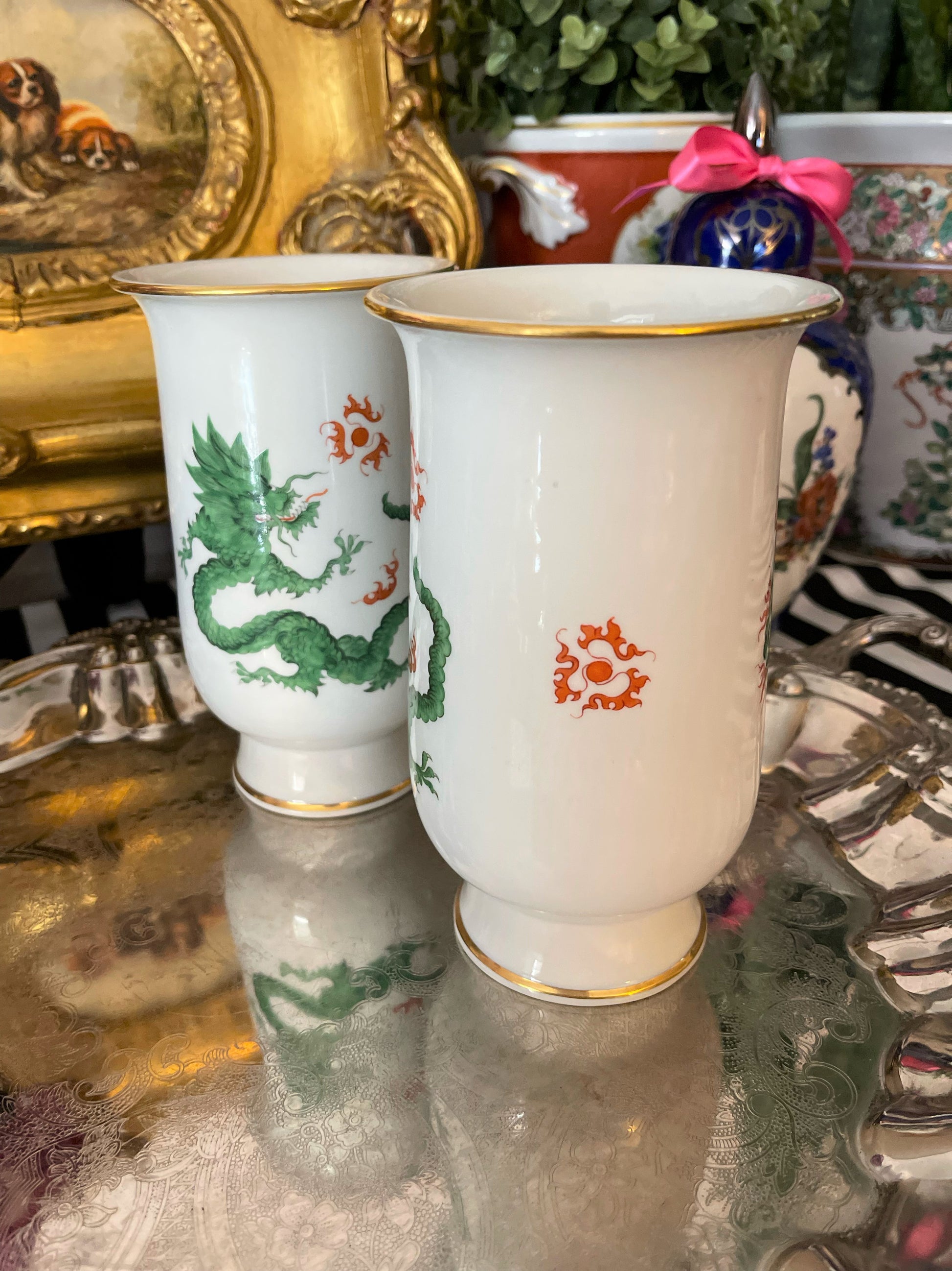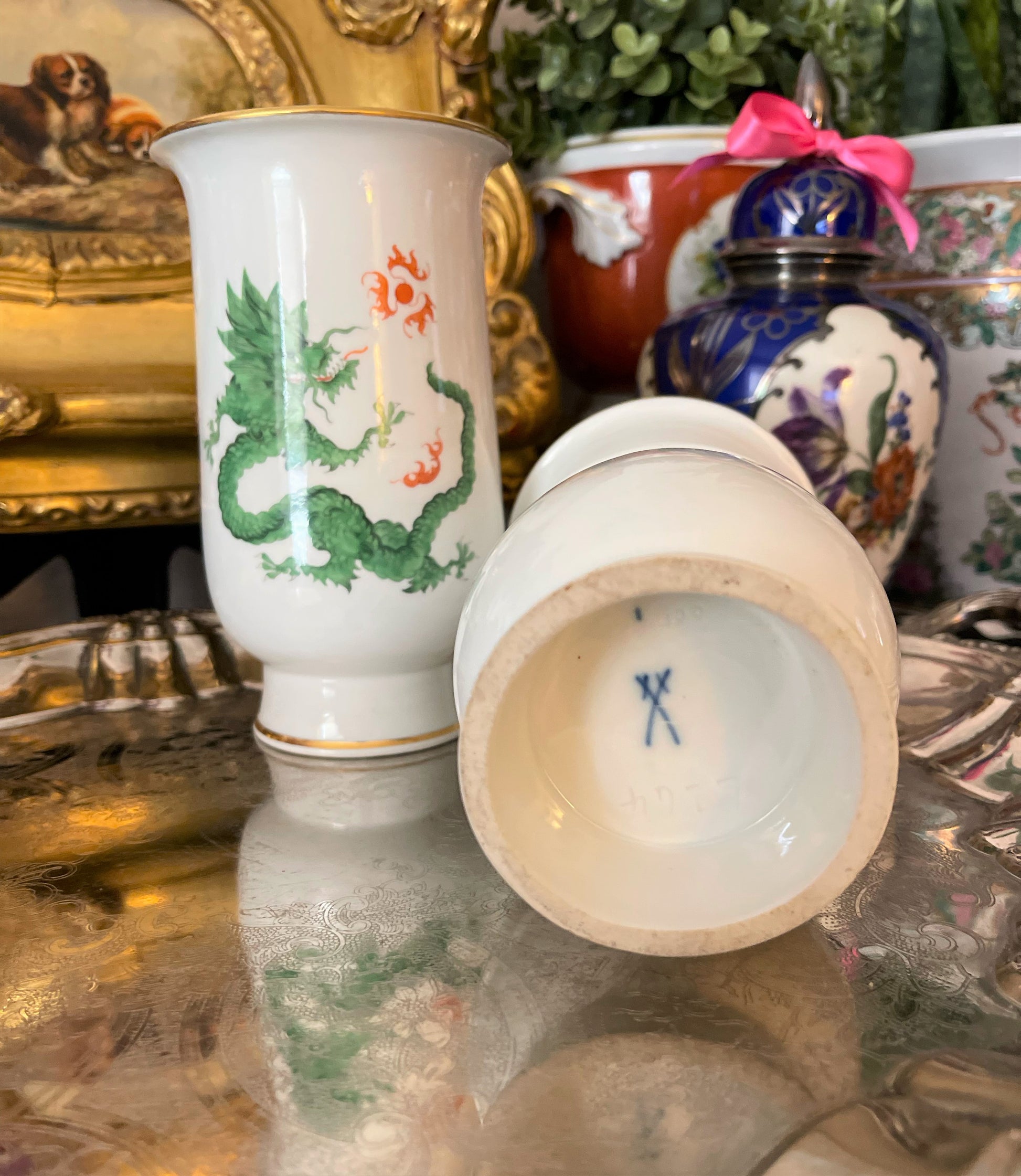 Meissen Ming Dragon Vase Pair, Meissen Green Ming Dragon, Chinoiserie Decor