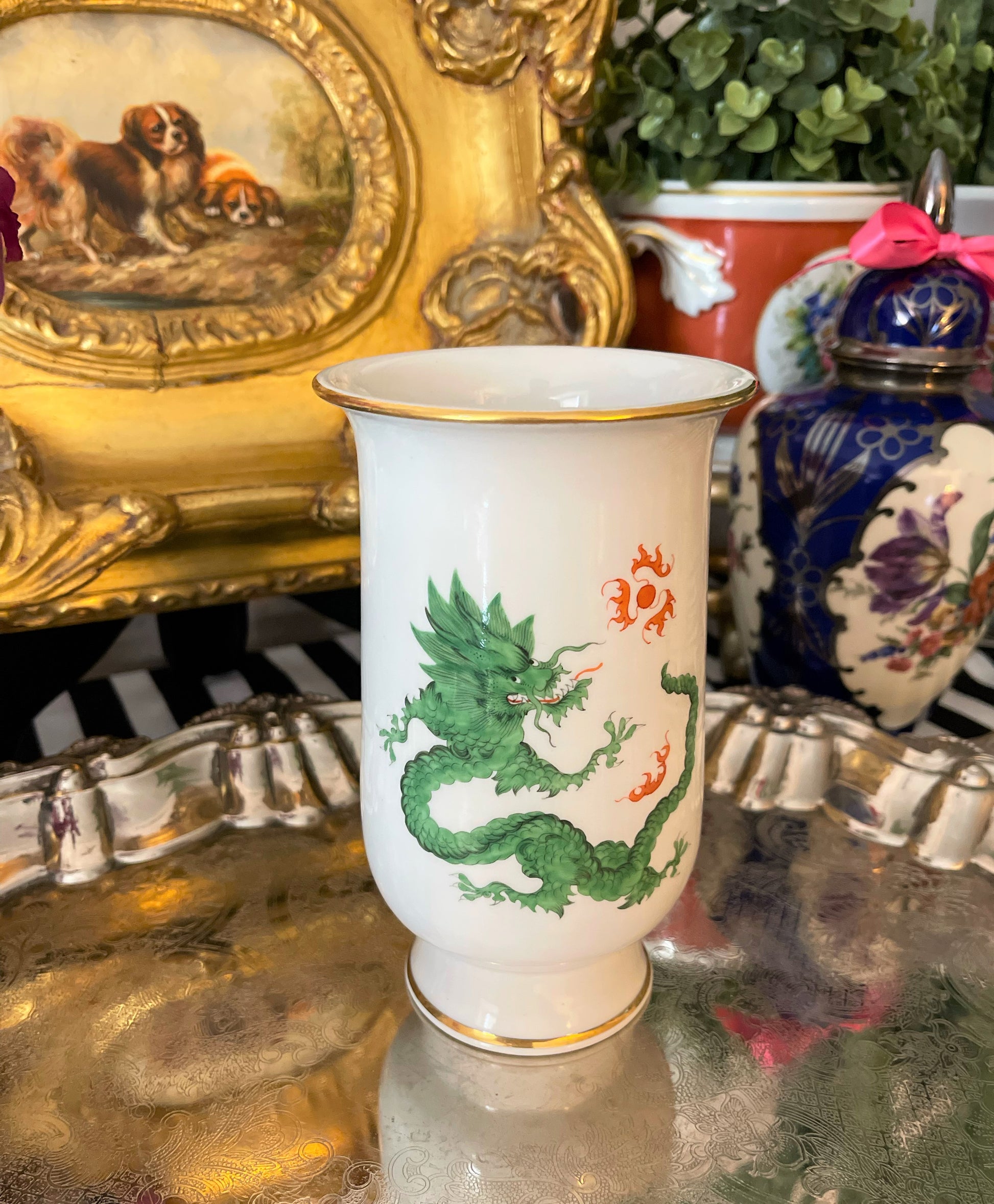 This interpretation of the Chinese Ming dragon is synonymous with Meissen, and one of its oldest and most sought after patterns, especially the green. Made in Germany, Meissen is considered one of the finest porcelain manufacturers in the world. These ming dragon pieces, elevate as well as mix with any decor style.