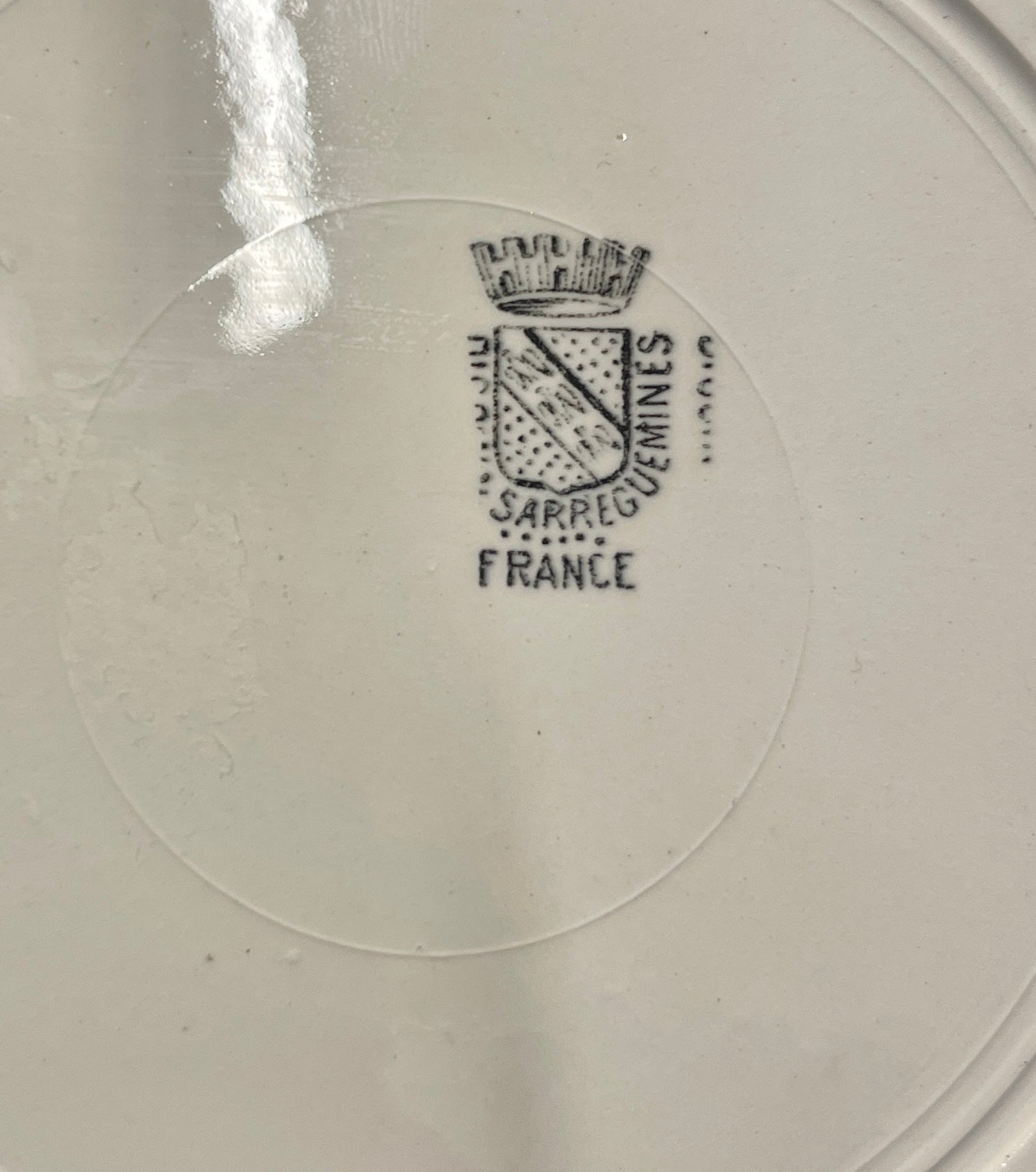 Fantastic French General Demain Digoin & Sarreguemines teal imperial eagle bordered Napolean themed plates in black on white. by Sarreguemines. Hallmark dates production to 1875-1900 France.