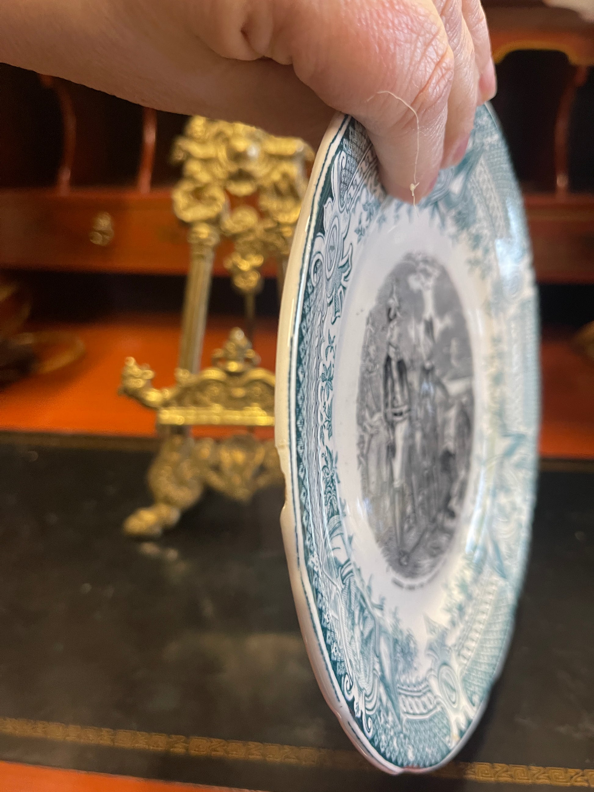 French General Demain Sarreguemines Napoleon Plate 1 - 19th Century Antique French Digoin & Sarreguemines Teal & Black Napoleon Dessert Plate