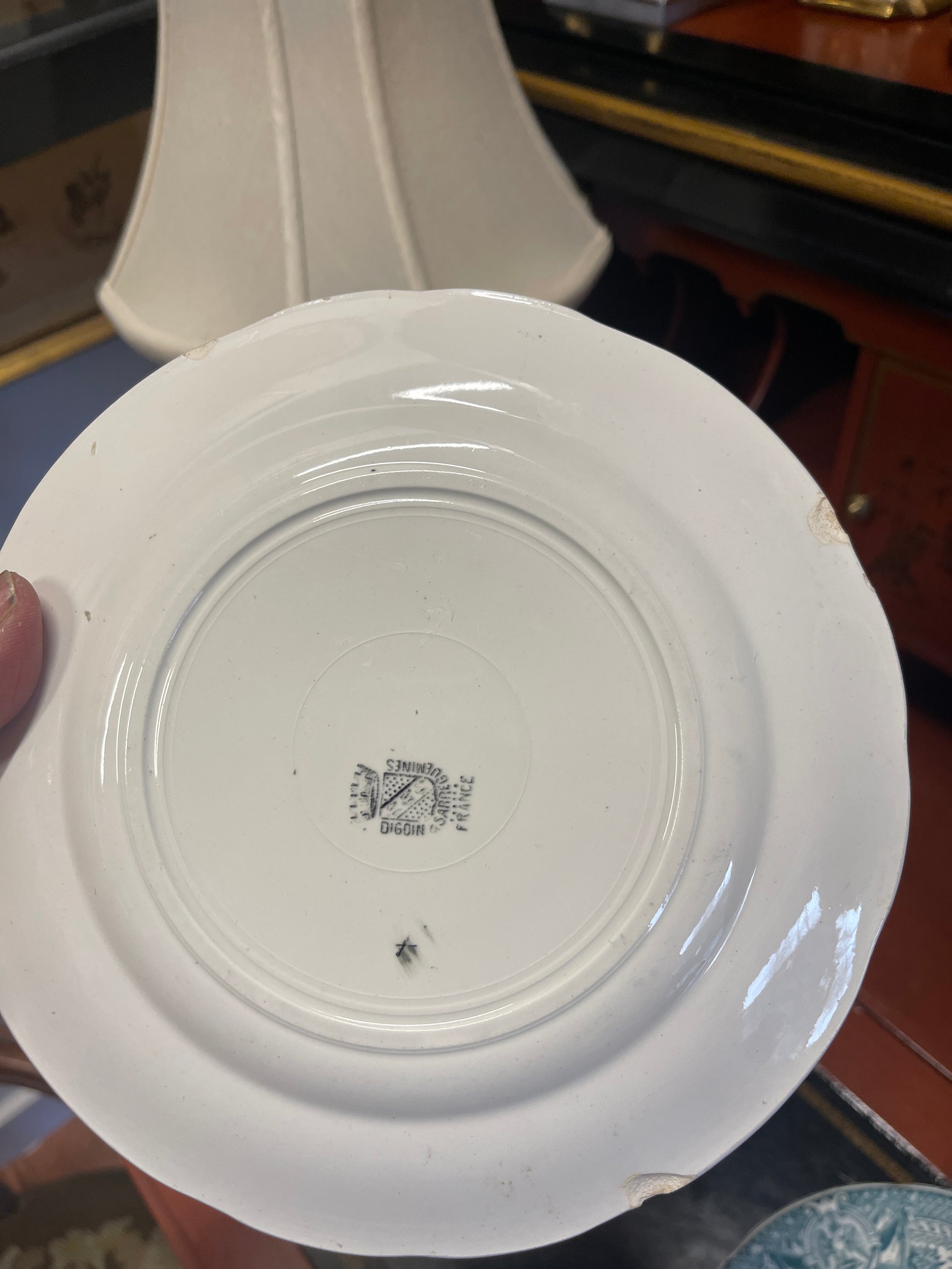 Fantastic French Digoin & Sarreguemines teal imperial eagle bordered Napolean themed plates in black on white. by Sarreguemines. Hallmark dates production to 1875-1900 France.
