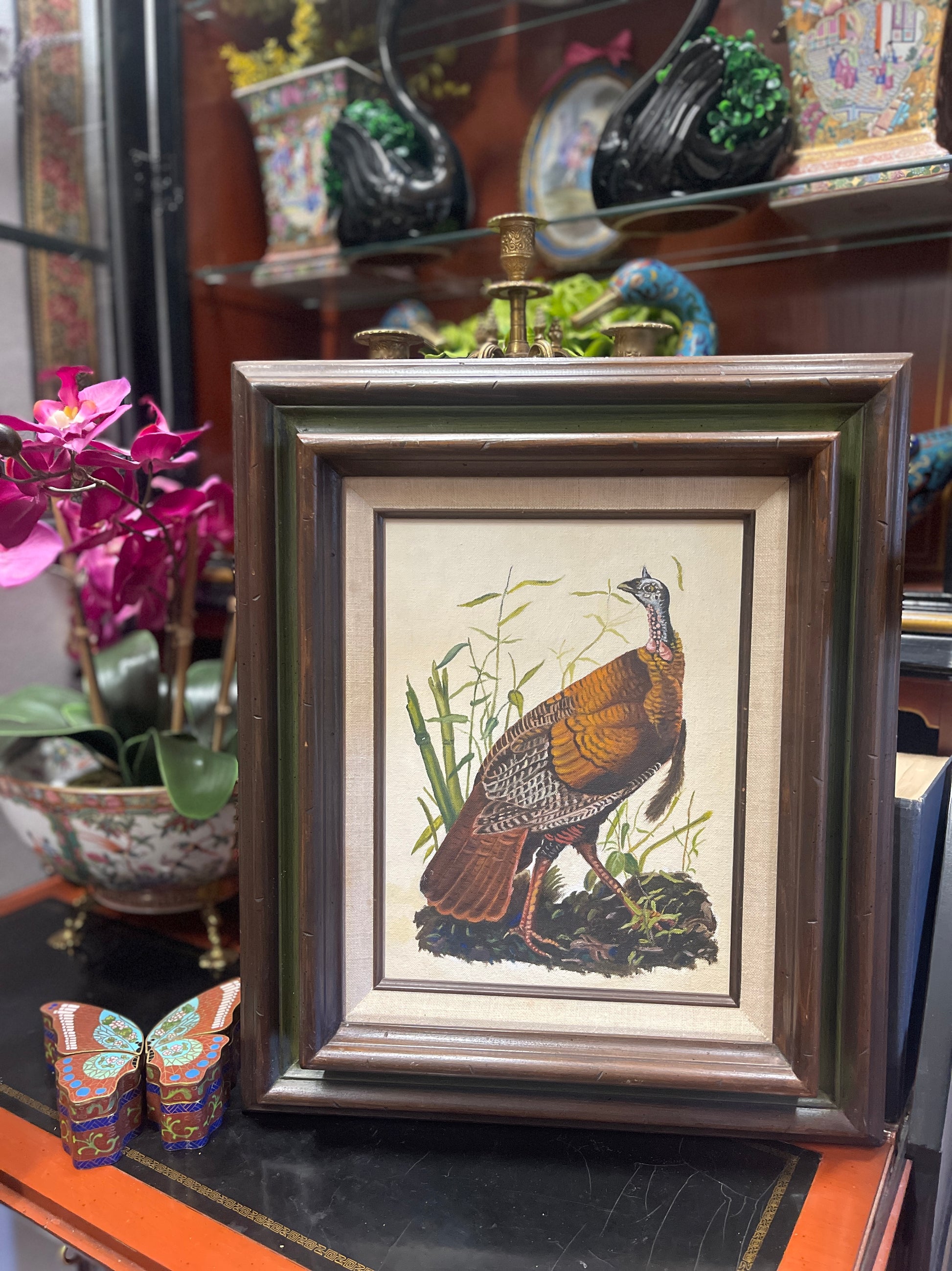 The turkey’s richly feathered body, set against a naturalistic landscape, is executed with attention to texture, form, and color. Whether you’re a collector of Audubon-inspired pieces, a lover of vintage wildlife art, or simply looking for a bold piece of Americana for your gallery wall, this painting offers timeless appeal.