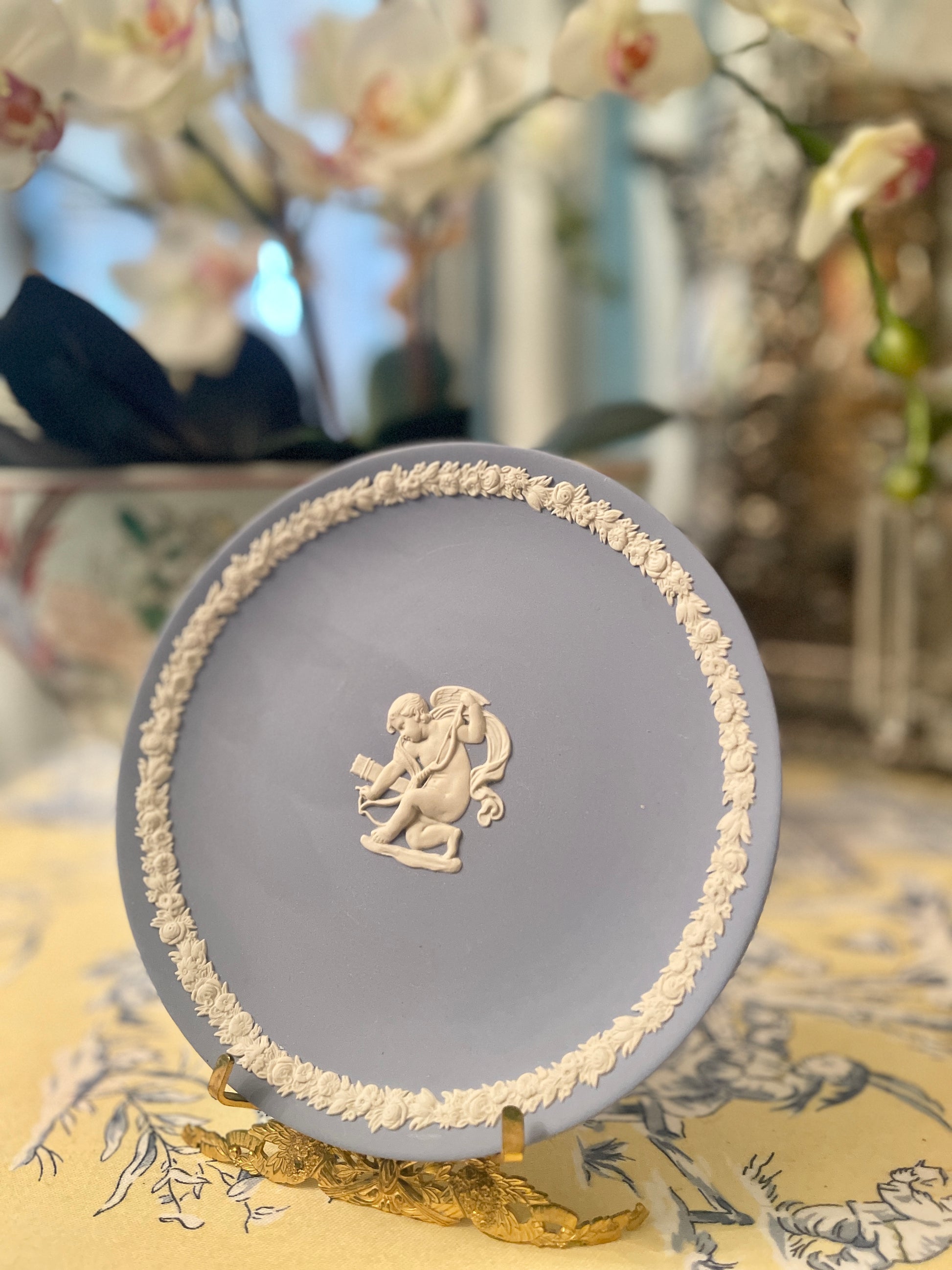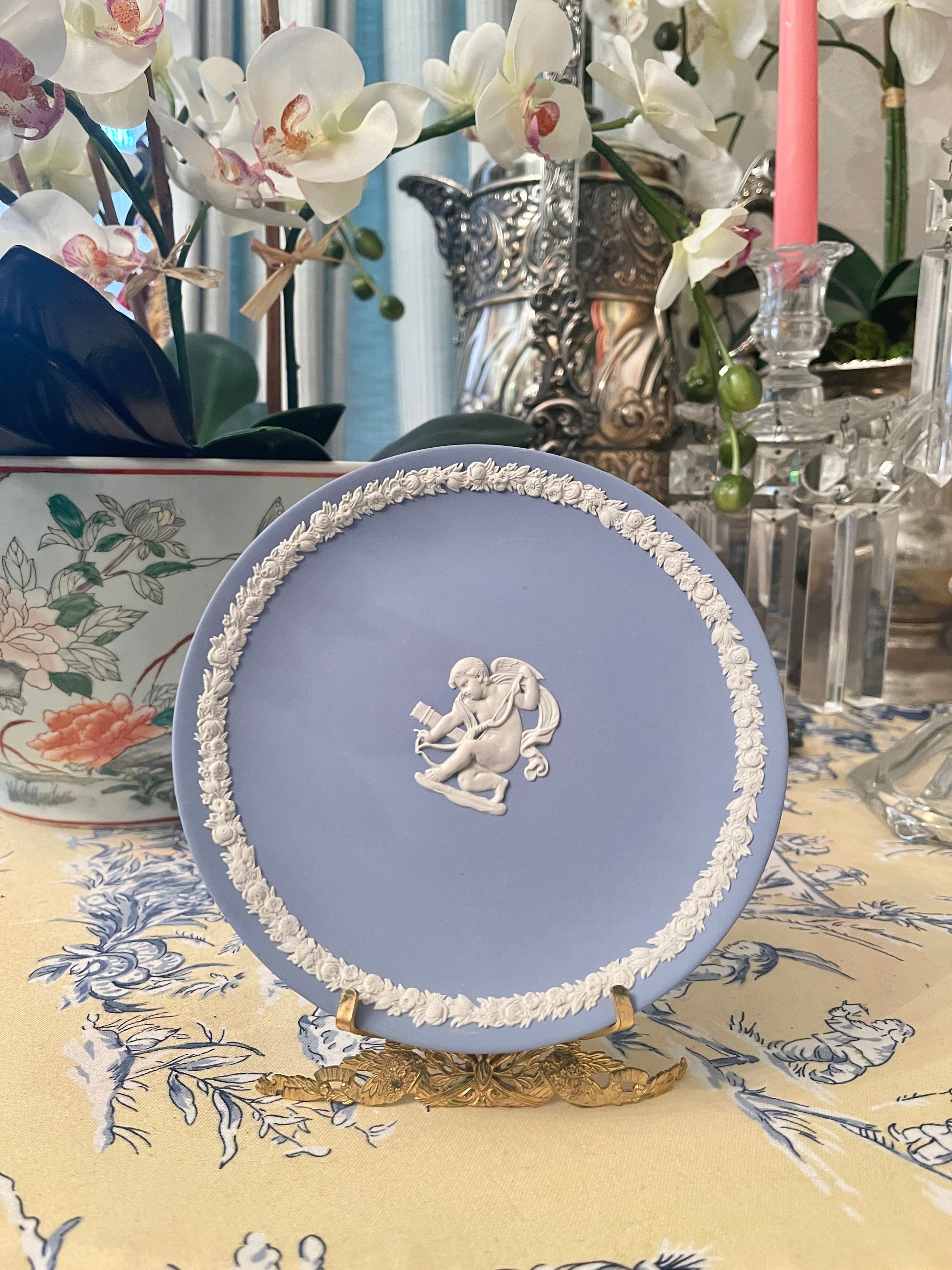 Vintage Wedgwood Cherub Plate. Blue and White Jasperware. Such a lovely piece perfect in an easel as shelf decor or as part of a plate wall gallery.