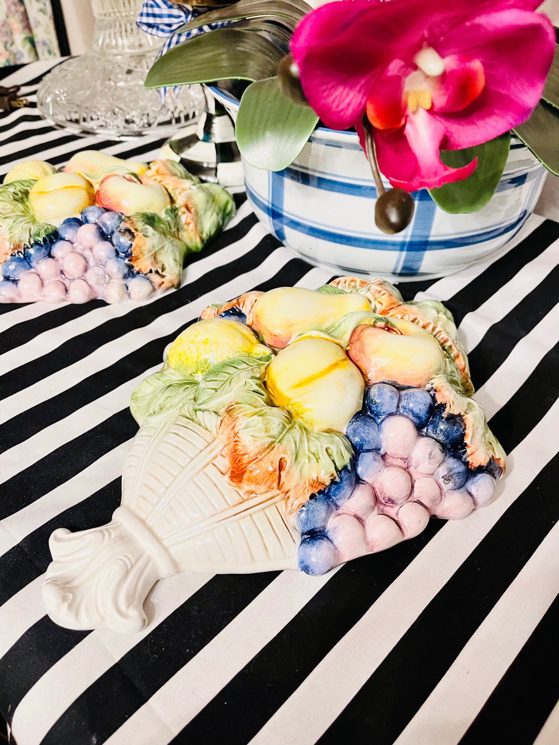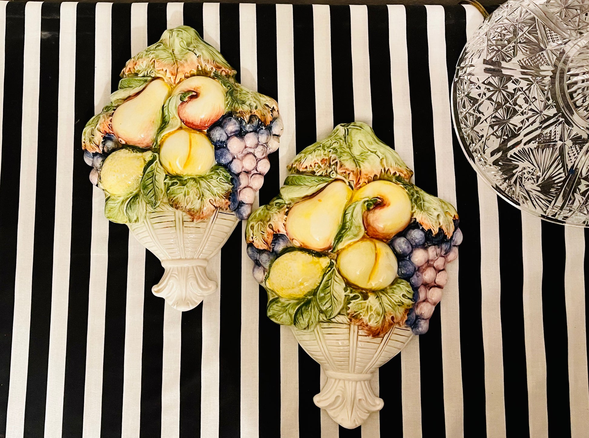 Pair of Italian Fruit Topiary Wall Hangings, Hand Painted Italian Wall Hangings