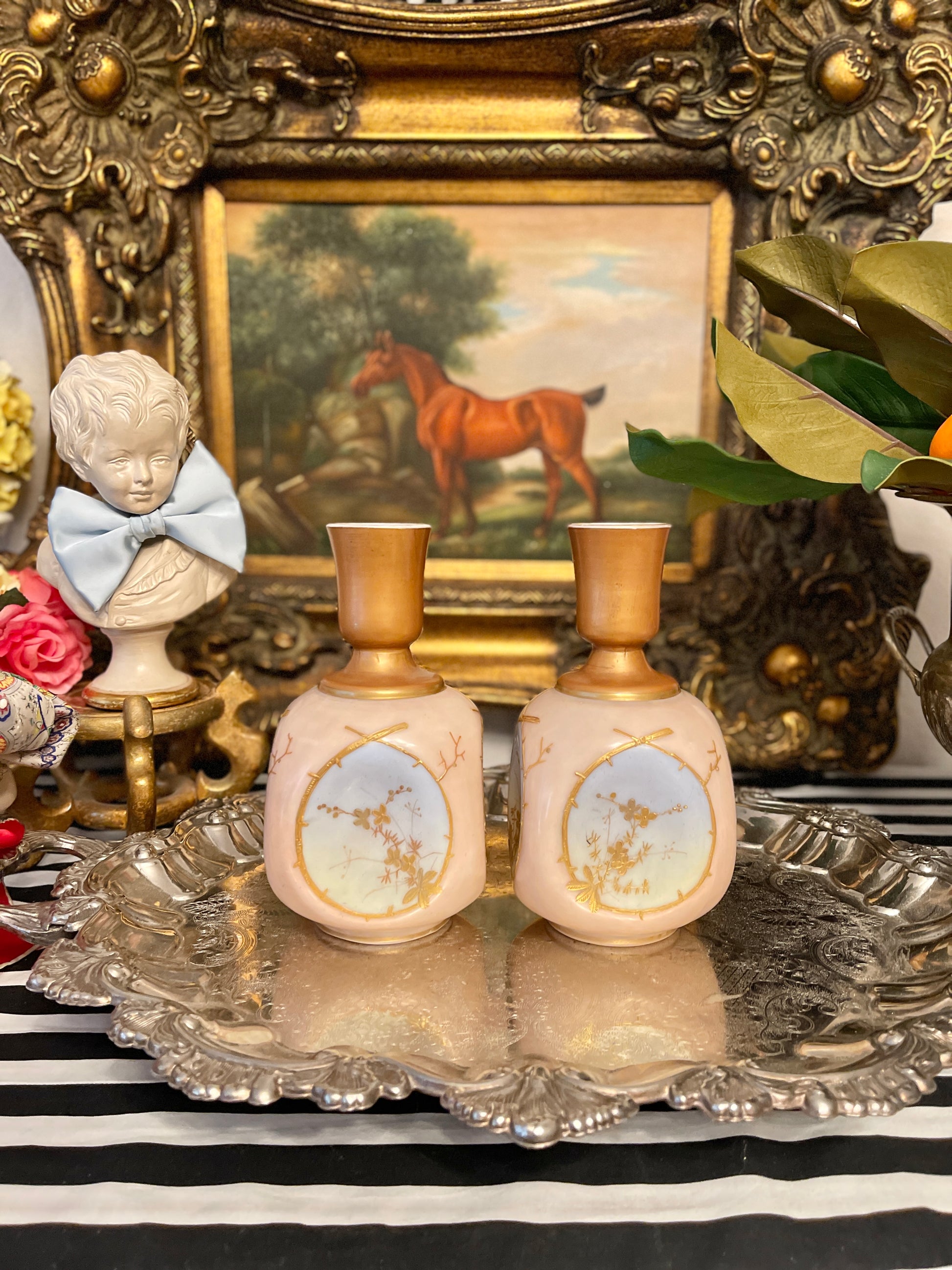 I acquired them from a posh estate in the Castle Hills area of San Antonio… the same as the two Chinese Chippendale pagoda mirrors. To say this place was pretty swank is a huge understatement🩷 It was a glorious mix of chinoiserie and French pieces…a true dream estate to source.